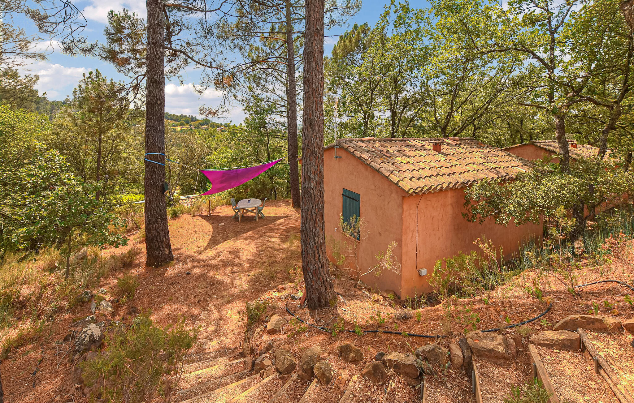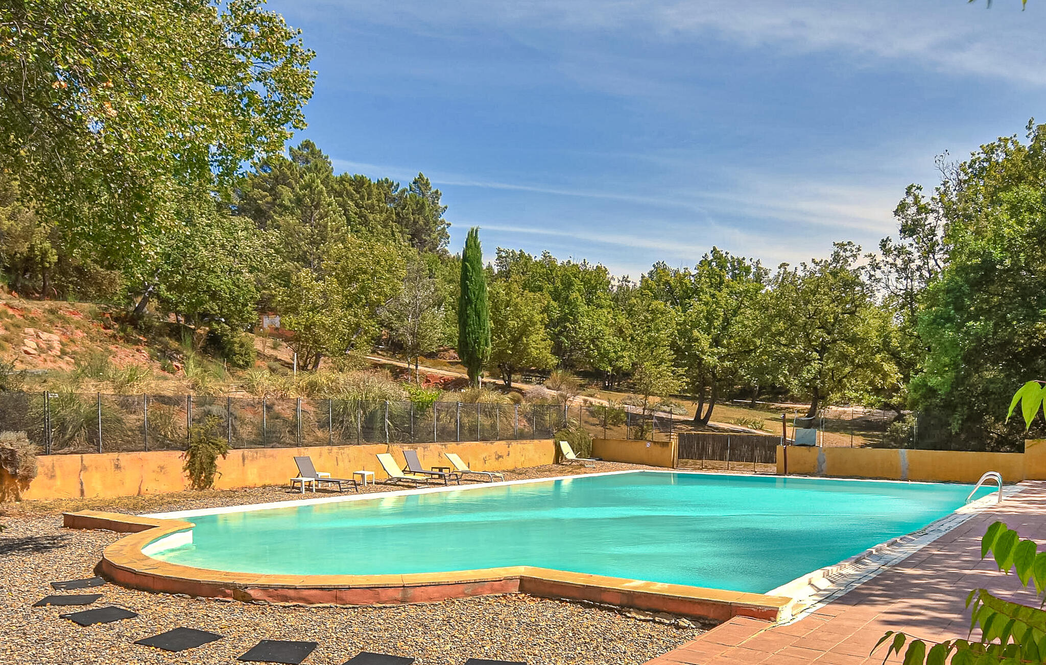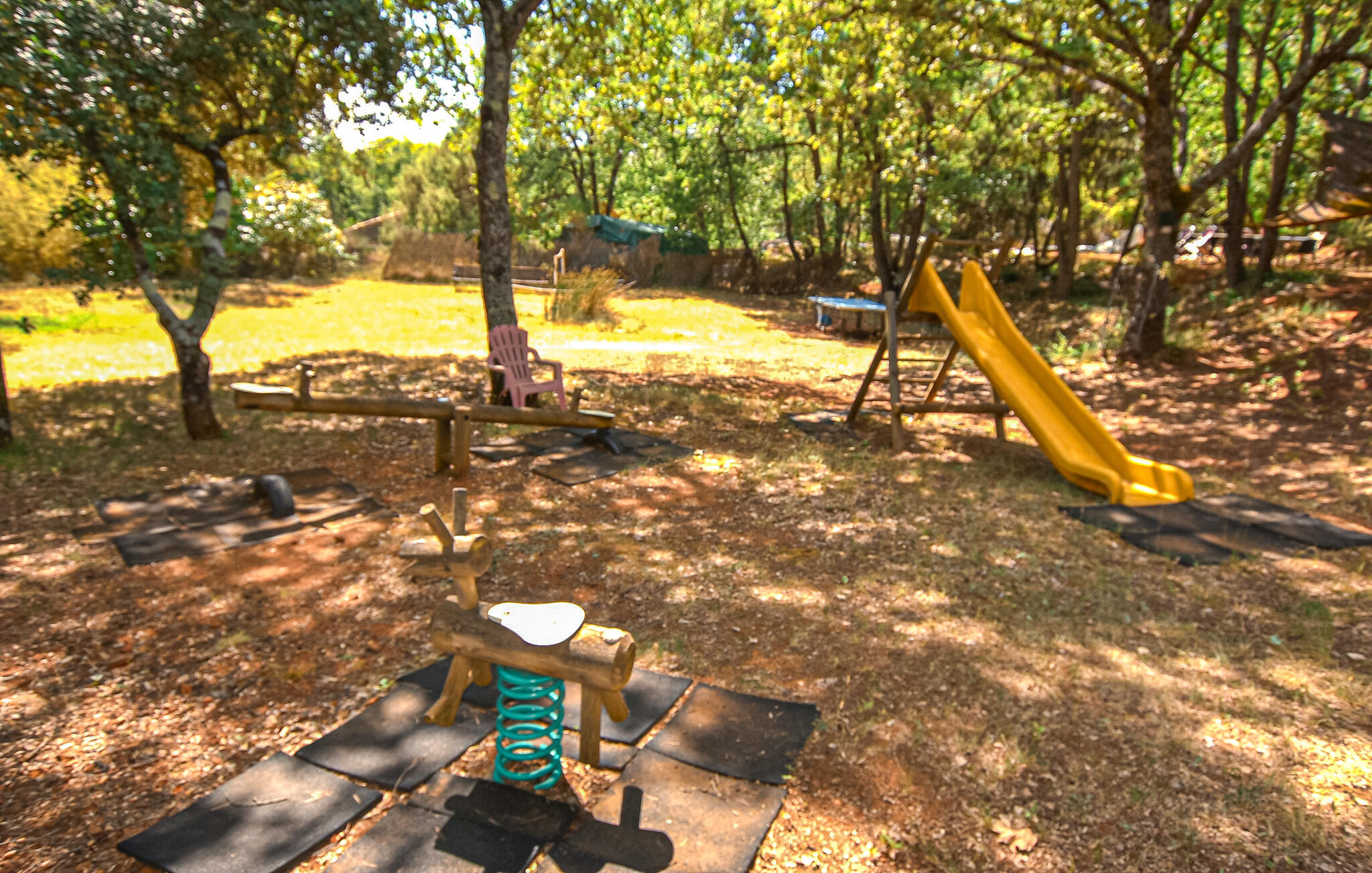 Je kunt ontspannen ontbijten op je kleine, schaduwrijke terras. Het grote, gemeenschappelijke zwembad is een oase van rust waar je kunt luisteren naar het getjilp van de krekels terwijl je geniet van een ontspannen siësta op de ligstoel. Laat je kinderen nieuwe vriendjes maken in de speeltuin, waar ze in de schaduw van de bomen kunnen spelen en de natuur kunnen verkennen.