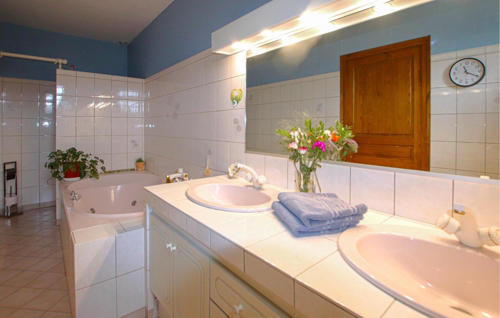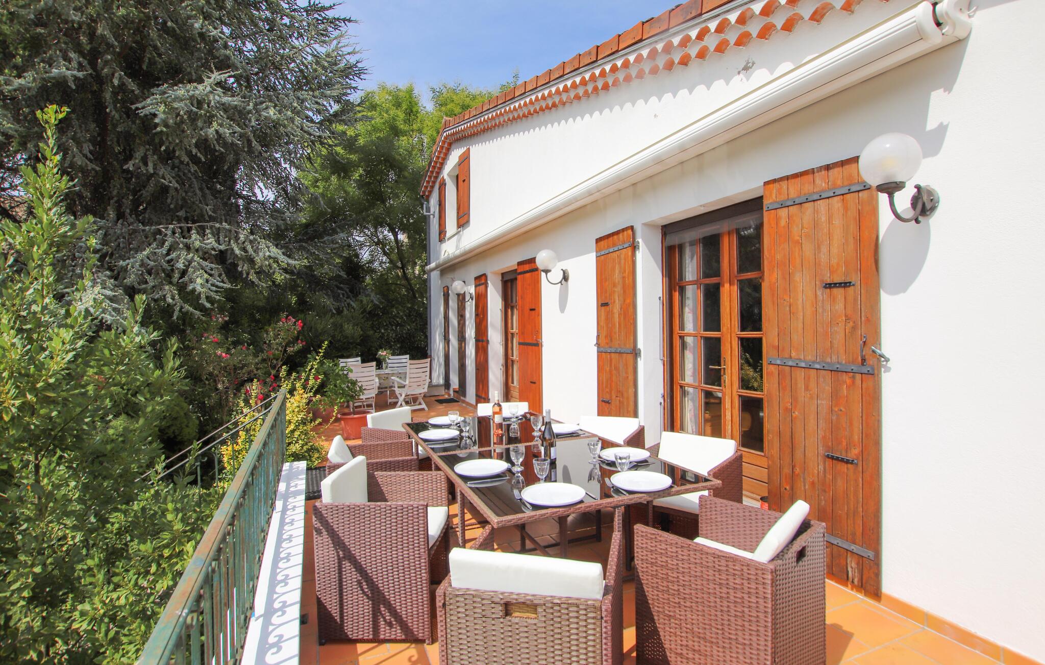 Dit vriendelijke vakantiehuis verwelkomt je met rustieke en Provençaalse charme en belooft een ontspannen samenzijn met vrienden of familie. Verheug je op vrolijke kookavonden in de ruime keuken, plan je activiteiten tijdens gezellige maaltijden en organiseer na een lange dag in de buitenlucht gezellige spelletjesavonden of stream een spannende film.
