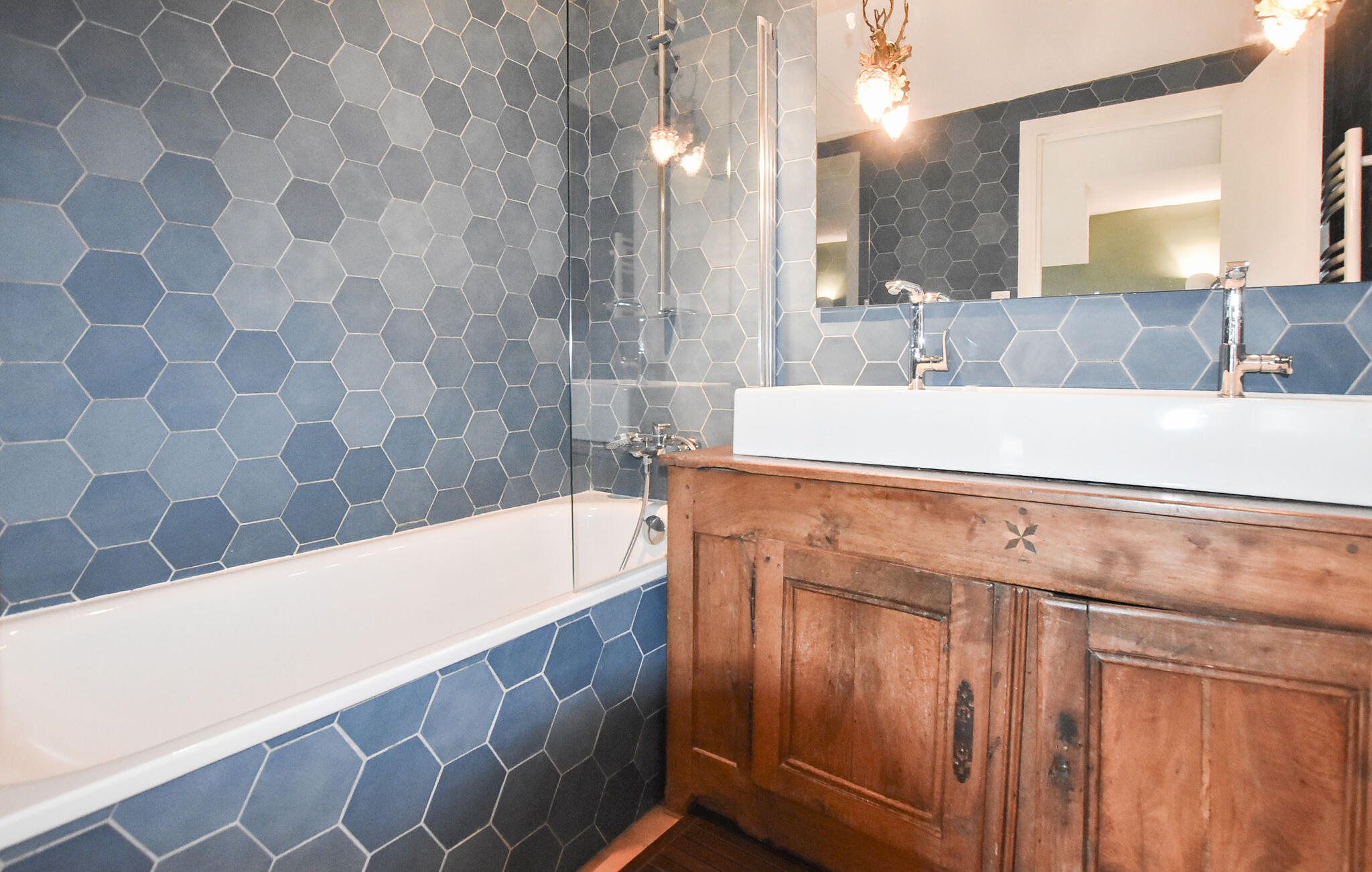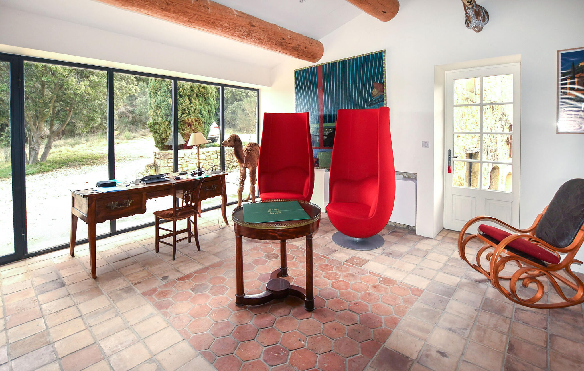 Ervaar een sfeer vol karakter en geschiedenis. Gewelfde natuurstenen plafonds, lichtgekleurde muren en zorgvuldig geselecteerd meubilair geven de kamers een bijzondere charme. Neem plaats in de stijlvolle woonkamer en geniet van de vredige sfeer rond de grote open haard. Comfortabele banken plaatsen elegante accenten en creëren een uitnodigende omgeving voor ontspannen avonden. Gebruik de ruime eethoek met lange houten tafel voor gezamenlijke maaltijden. De traditionele keuken combineert rustieke elementen met moderne functionaliteit. Je kunt ook gezellig samenzijn aan de pooltafel in de kelder.