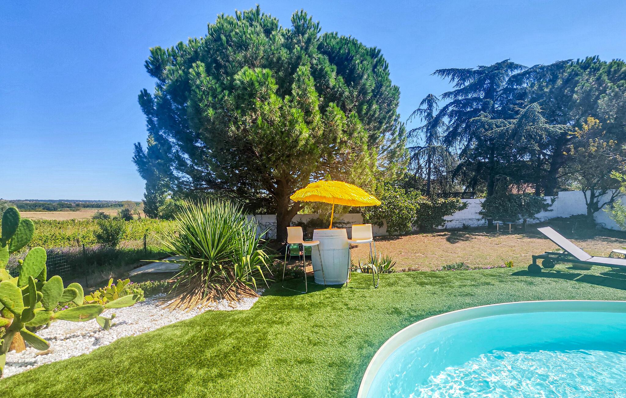 Breng een gevarieerde vakantie door in dit comfortabele vakantiehuis met zwembad en charmante buitenruimte.