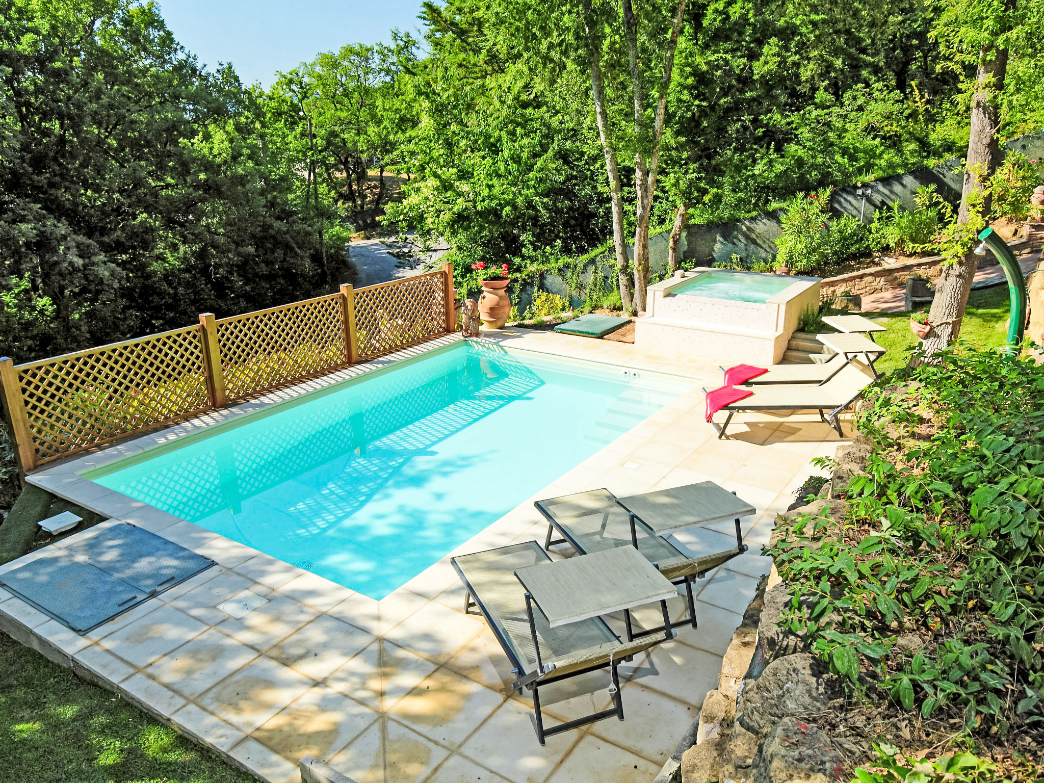 Herr I. - aankomst: 26/5/2021 Sehr schöne Anlage mit einer perfekten ruhigen Lage. Das Haus bietet Platz für jede Gelegenheit. Der Pool ist ein Traum inkl. separatem Sprudelbecken. Bei Bedarf steht sogar ein Wirlpool im oberen Bereich zur Verfügung. Die Ausstattung in der Küche mehr als ausreichend. Es blieben keine Wünsche offen. W-Lan ist ebenfalls vorhanden. Keine versteckten Kosten, welche noch zusätzlich anfallen könnten. Die Anlage wird 1 x pro Woche durch den Vermieter gepflegt, er hält sich sehr diskret.