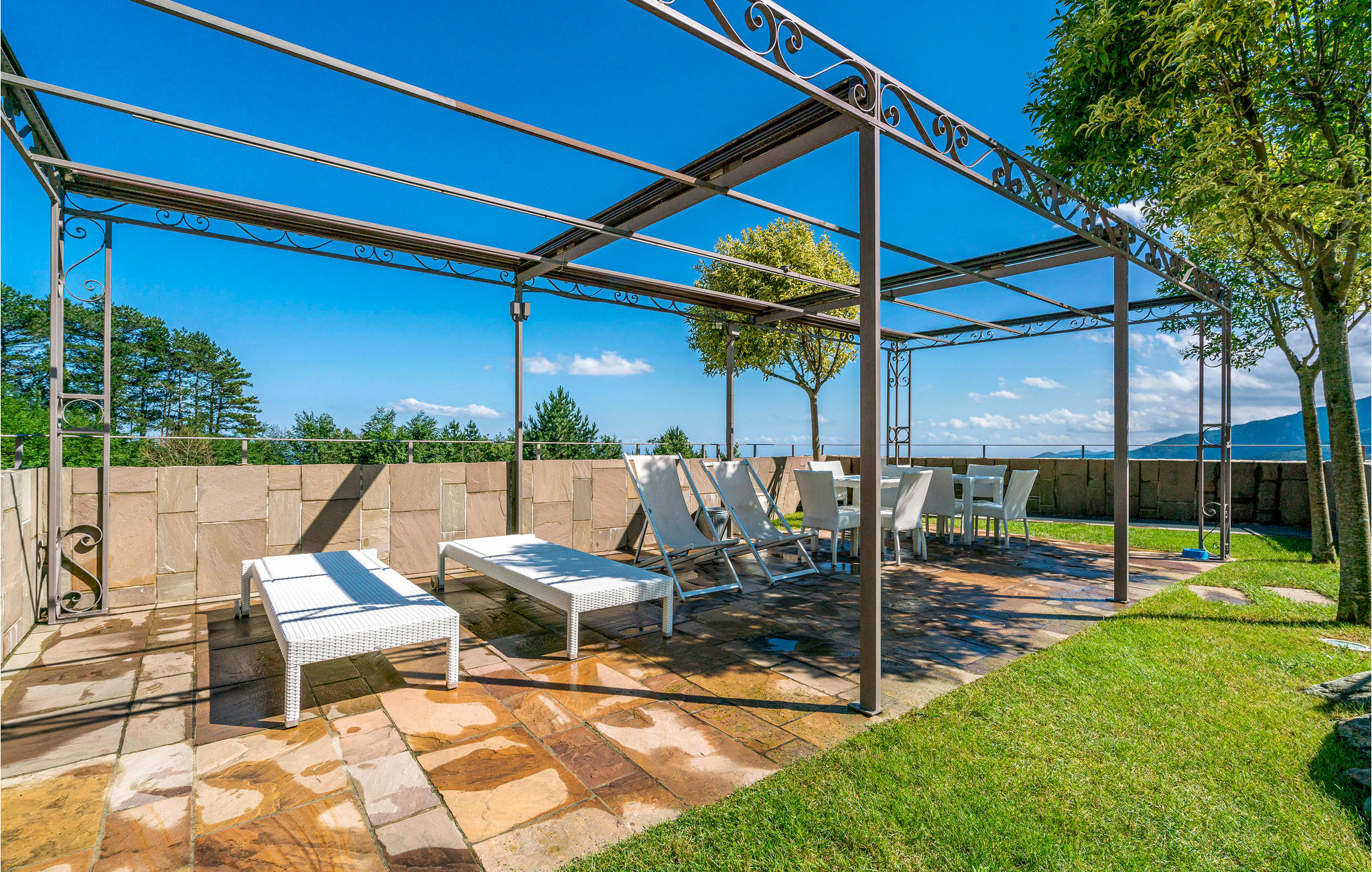 Op het terras kunt u heerlijk ontspannen, genieten van uw eerste koffie of zonnebaden, een boek lezen of gewoon uitrusten, het prachtige uitzicht zal u inspireren. Later kunt u de dag afsluiten met een drankje buiten.