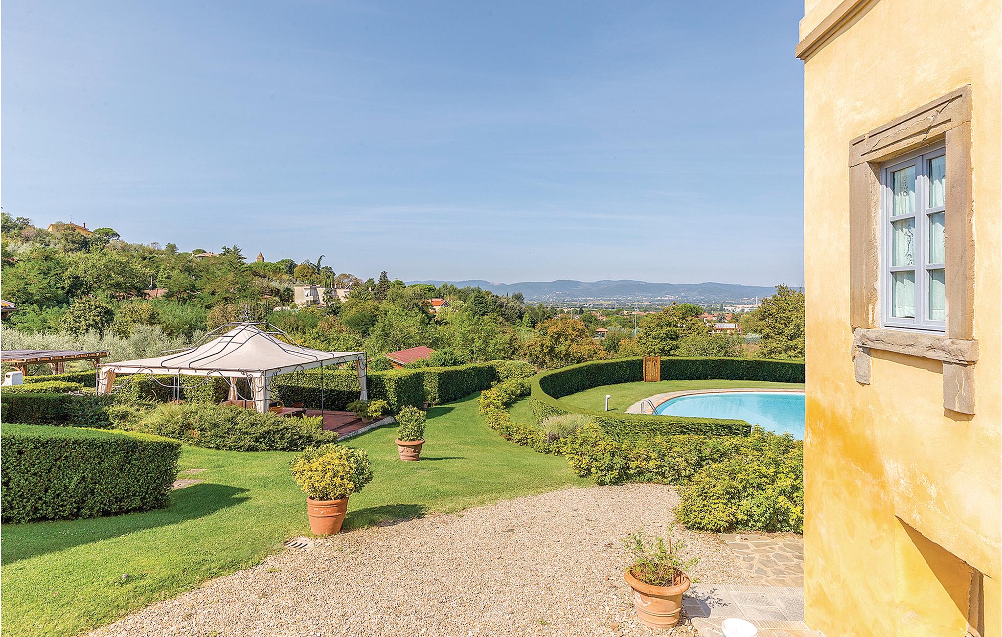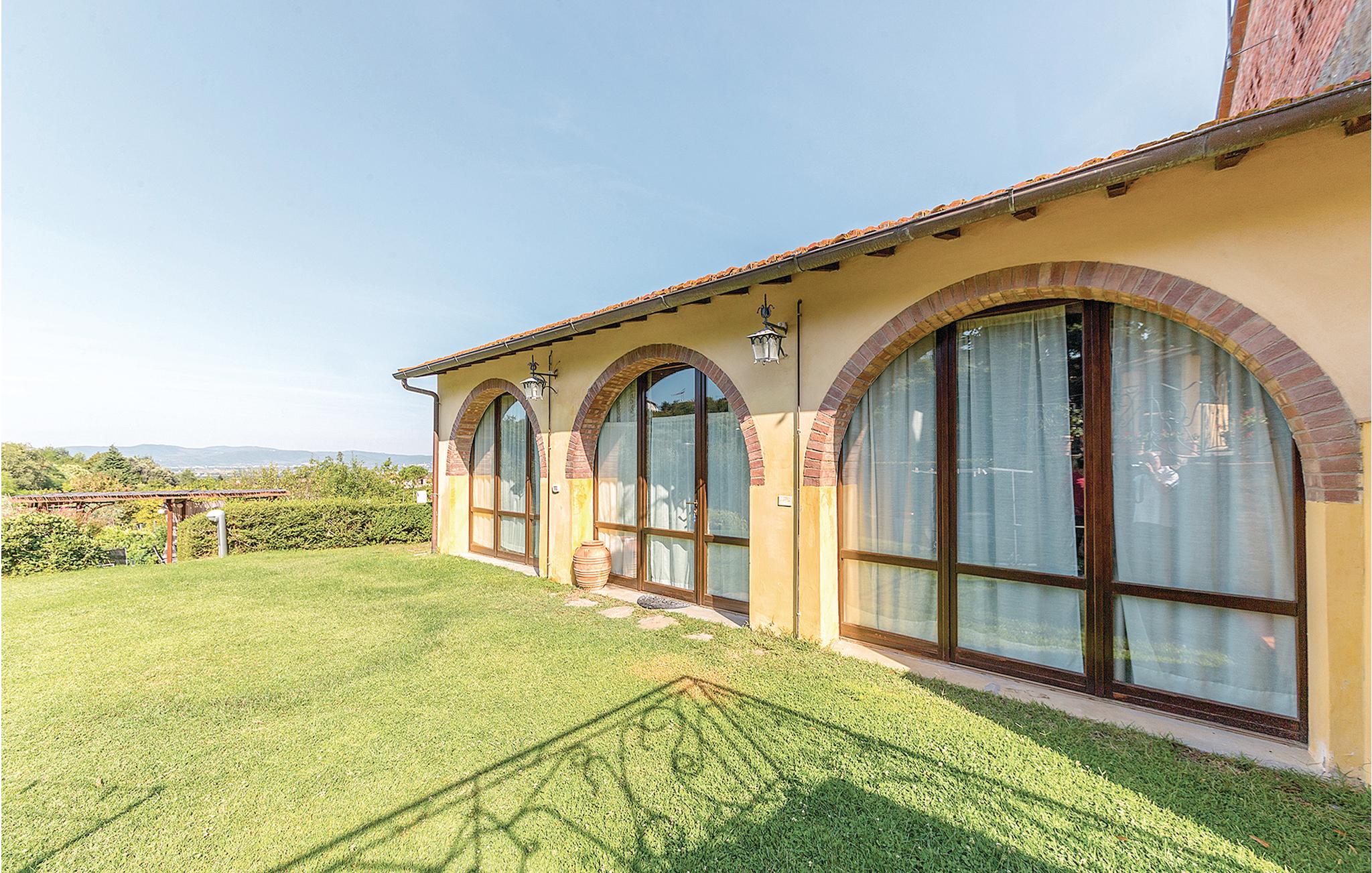Ongeveer 7 km van Arezzo: Twee originele vakantiewoningen (zie ook ITA116) met groot zwembad en weids uitzicht over de Chiana-vallei. De twee smaakvol ingerichte vakantiewoningen zijn gecreëerd in het landelijke bijgebouw van een eerbiedwaardige Toscaanse villa. Elk appartement heeft een eigen tuin met zithoek en barbecue op het grote parkachtige terrein. Vooral het grote, gebogen zwembad is een droom! Vanaf de zonneterrassen kunt u genieten van een weids uitzicht over de vallei. Van hieruit bereikt u in een mum van tijd de oude Etruskische steden Arezzo en Cortona (18 km), met hun beroemde musea en kerken in de pittoreske oude stad, die uitnodigt tot een wandeling en een aperitivo op het piazza. Voor een dagje Florence (70 km) en Rome (200 km) zijn de handige treinverbindingen vanuit Arezzo ook een aanrader. Het Trasimenomeer met zijn zandstranden en romantische eilandjes bereikt u in minder dan een half uur (30 km).