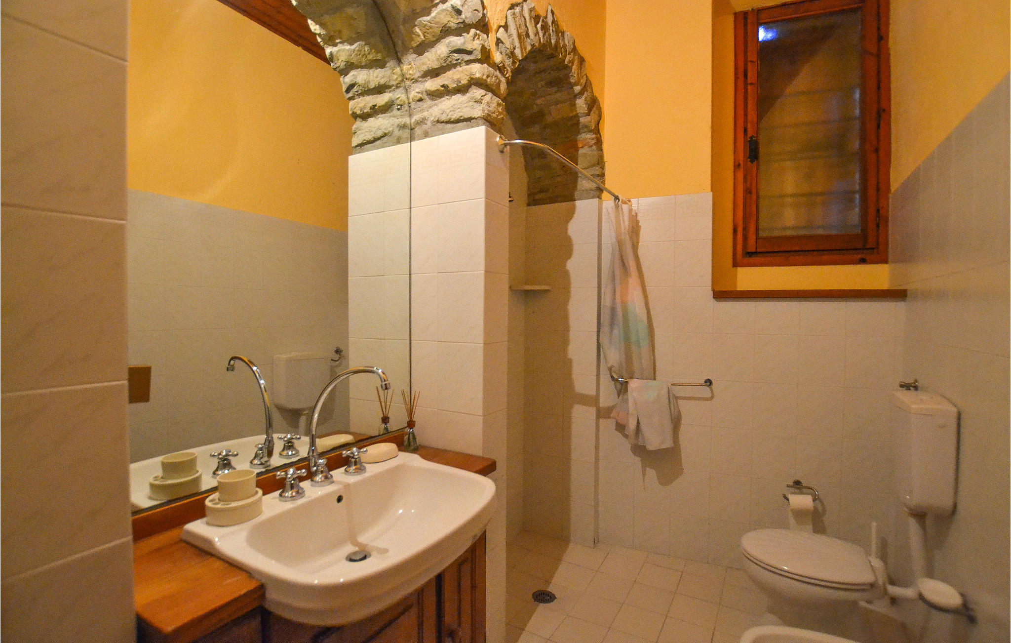 Het restaurantgedeelte met een groot overdekt terras ligt op ongeveer 100 meter van het huis. Hier vind je biologische producten (wijn, olie) van de kleine boerderij. Iets verderop ligt het grote zwembad, waar je kunt zonnebaden en het ontspannende landschap tussen de olijfgaarden kunt bewonderen. Het zwembad, dat beschikbaar is voor alle gasten, heeft een zwemgedeelte voor kinderen en een whirlpoolgedeelte. Het huis is ideaal gelegen om Arezzo (40 km) en zijn prachtige omgeving te bezoeken, evenals andere interessante naburige steden zoals Florence (40 km), Siena (57 km), de Chianti heuvels (30 km) en andere gebieden met heerlijke wijnen (Via dei Colli Aretini, Setteponti). Een deel van de toegangsweg is smal (ca. 1,2 km lang).