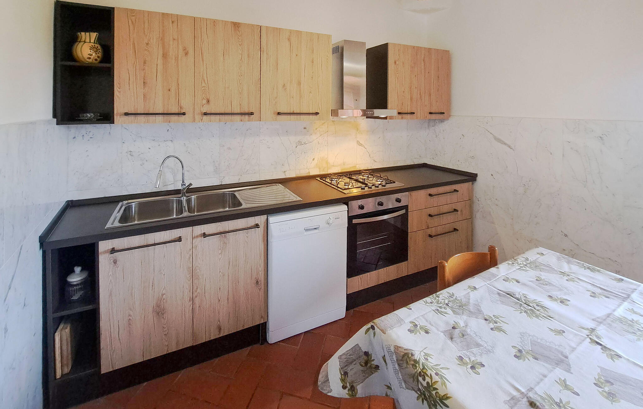 Keuken heeft warm/koud waterGas/el. fornuisKoelkastMagnetronWasmachineVaatwasser2 TV`sSchotelantenneOpen haardToilet: warm en koud water