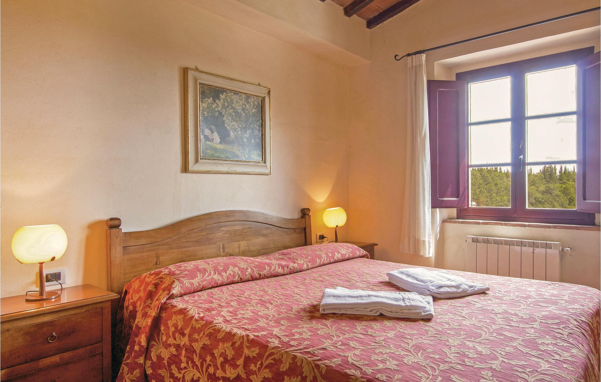 Oud landhuis in de heuvels van de Chianti, omgeven door eikenbossen, wijn- en olijfgaarden, zorgvuldig gerenoveerd en omgebouwd tot 6 vakantiewoningen. De architectonische kenmerken die dit deel van Toscane wereldberoemd hebben gemaakt, zijn bewaard gebleven en benadrukt, zodat de stenen muren, ramen en de bogen van de loggia`s op natuurlijke fresco`s lijken. Prachtig uitzicht op het landschap. Rustige ligging. De woning, volledig omheind en verfraaid met bloeiende planten, heeft een mooi gazon met tuinbenodigdheden en een zwembad. Comfortabele inrichting met rustieke meubels. Tips voor daguitstapjes: San Donato in Poggio (allerlei winkels) 1,5 km, San Gimignano 18 km, Florence 20 km, Siena 32 km. Vliegenhorren in elke kamer.