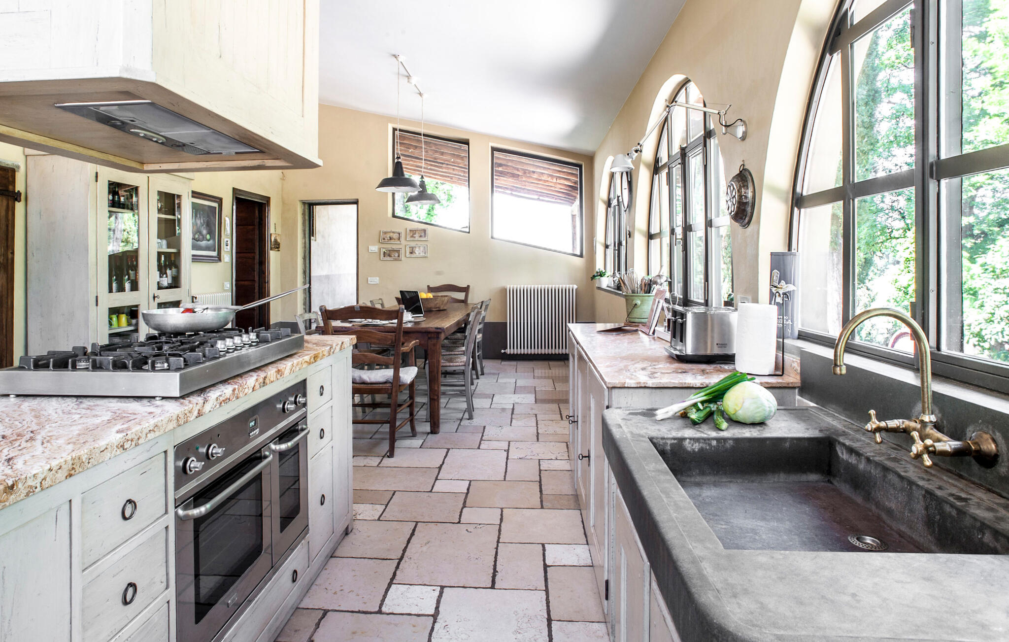 Keuken heeft warm/koud waterGas/el. fornuisKoelkastAfzuigkapVriezerMoka (espresso)MagnetronWasmachineDrogerVaatwasser2 TV`sSchotelantenneOpen haardToilet: warm en koud water