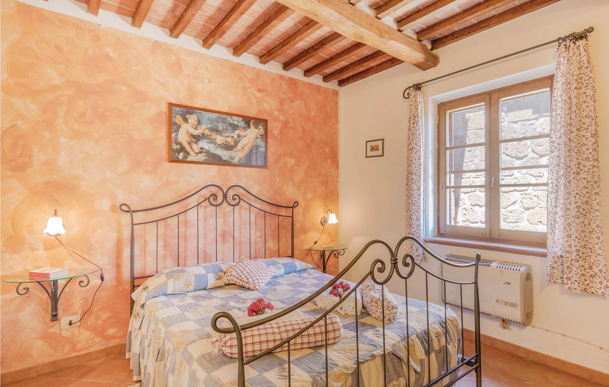 Boerderij in het hart van een actief agrarisch bedrijf (50 ha) met wijngaarden (DOC-wijnen zoals Rosso di Sovana en Bianco di Pitigliano), olijfbomen, bos en weiden in een Etruskisch park op 2 km van Borgo Sovana. Gemeenschappelijk zwembad met zonneterras. Op aanvraag: kleine, lokale gastronomie met de producten van het bedrijf. Het is mogelijk om bedrijfseigen producten te kopen (wijn, olijfolie, kaas, honing en groenten). Op aanvraag: paardrijden op de paarden van de manege. 5 km Pitigliano, 7 km Sorano, 15 km van de thermale baden van Saturnia, 30 km van het meer van Bolsena, 45 km van de kust van Argentario (veerboot naar de eilanden Giglio en Giannutri). Aankomst mogelijk tussen 17.00 - 20.00 uur.
