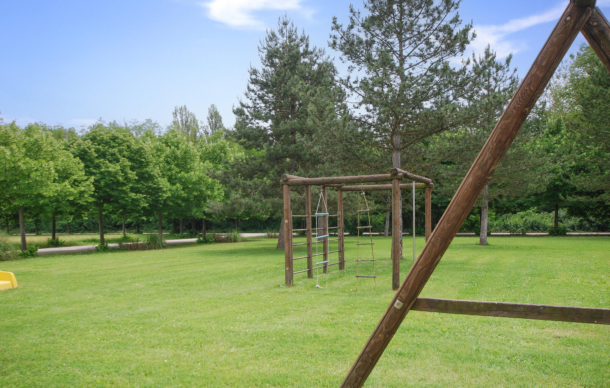 Neem `s ochtends een ontspannen duik in het grote, gemeenschappelijke zwembad. Het ruime, omheinde terrein biedt geweldige speelmogelijkheden voor je kinderen. Speel volleybal of basketbal, of socialiseer aan de tafeltennistafel.
