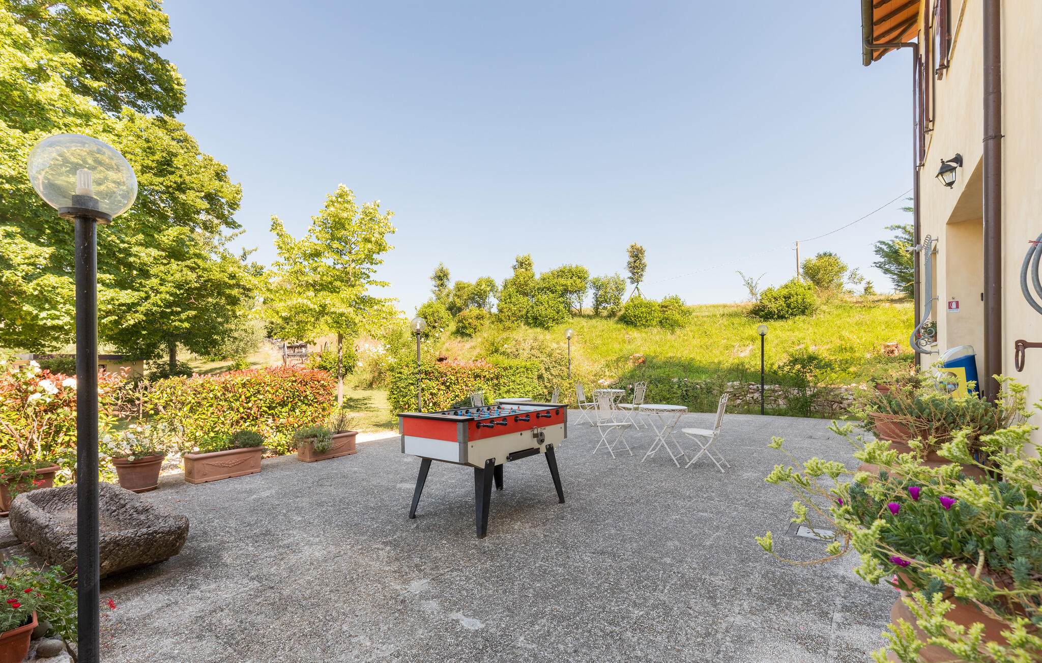 Het zwembad, dat je deelt met anderen, biedt rustgevende verfrissing op elk moment van de dag, `s ochtends in alle rust of na een bewogen dag. Daarna nodigen de ligstoelen je uit om gewoon niets te doen met een koel drankje. Wie van gezelligheid houdt, kan een spelletje petanque spelen. Een schommel in de tuin zorgt voor zorgeloos plezier voor de kleintjes.