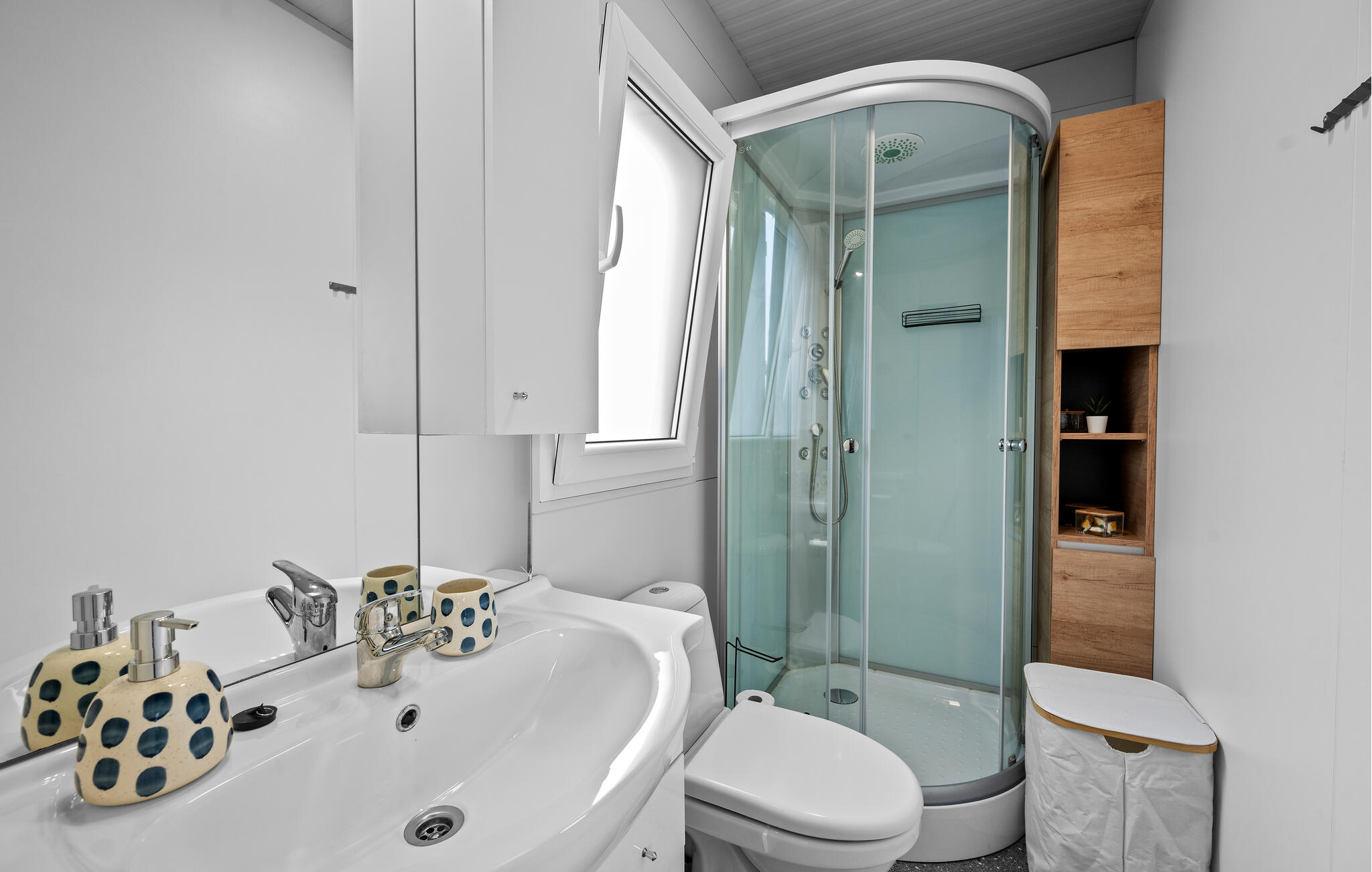 Keuken heeft warm/koud waterElektrisch fornuis met ovenKoelkastVriesvakKoffiezetapparaatMagnetronWasmachineVaatwasser1 TVKabelaansluitingToilet: warm en koud water