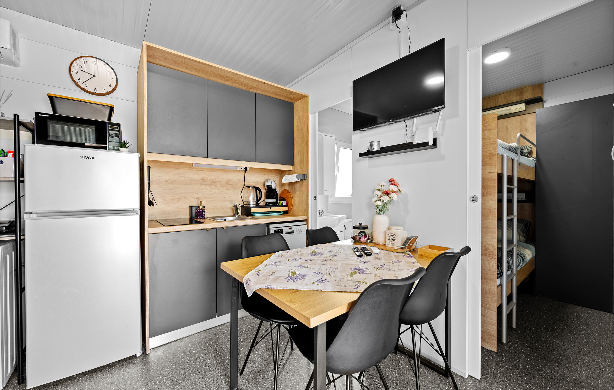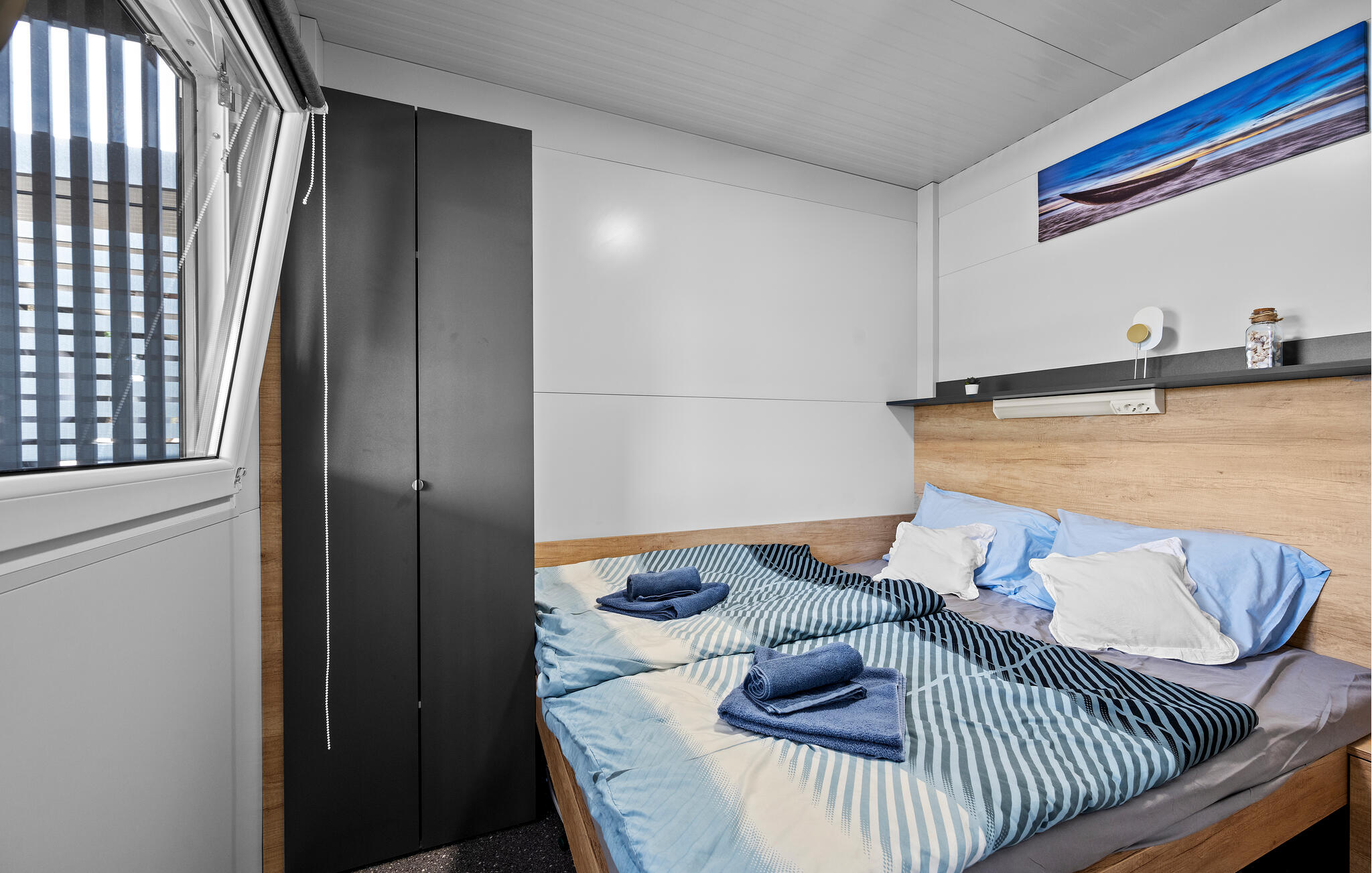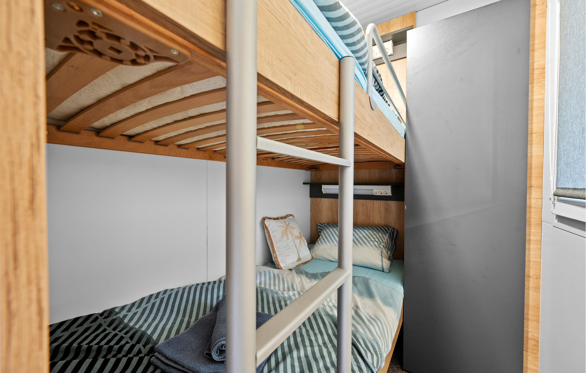Slaapkamer(1x 2-persoonsbed(den)), Slaapkamer(2x Stapelbed), Woonkamer met open keuken(1x Opklapbed(den) of matras(sen)), Badkamer(Toilet: warm en koud water, Douche), Terras of vergelijkbaar(Overdekt terras)Licentienummer