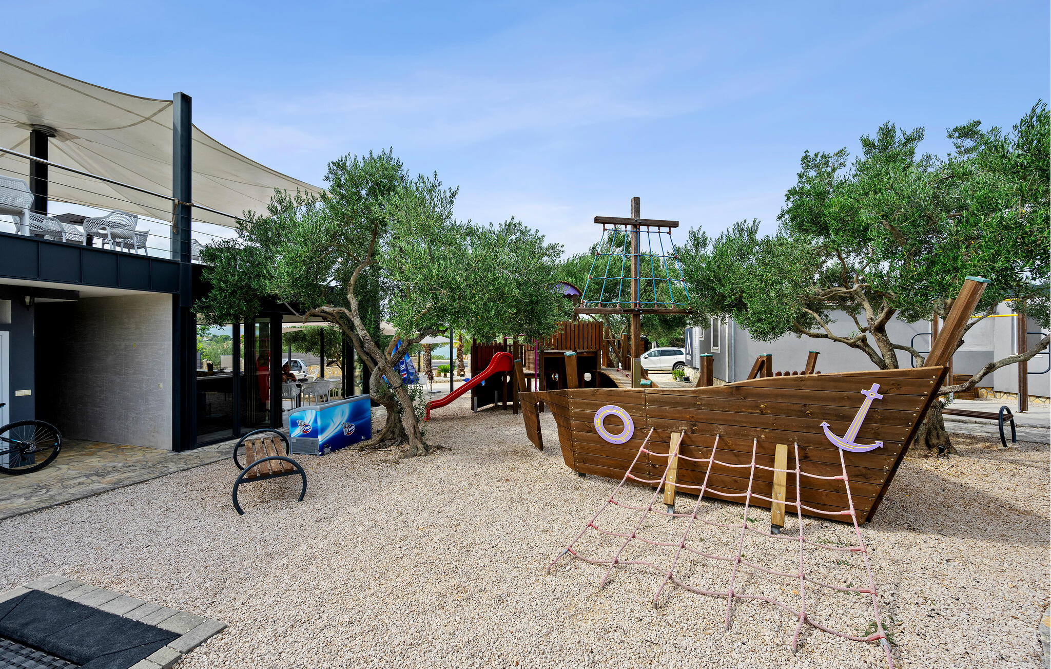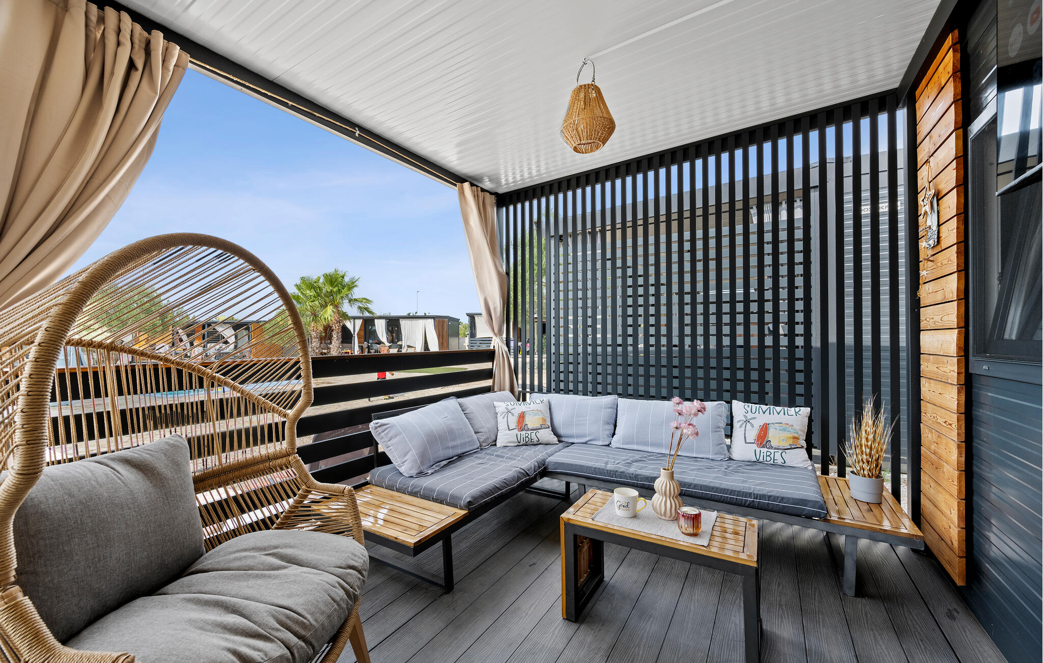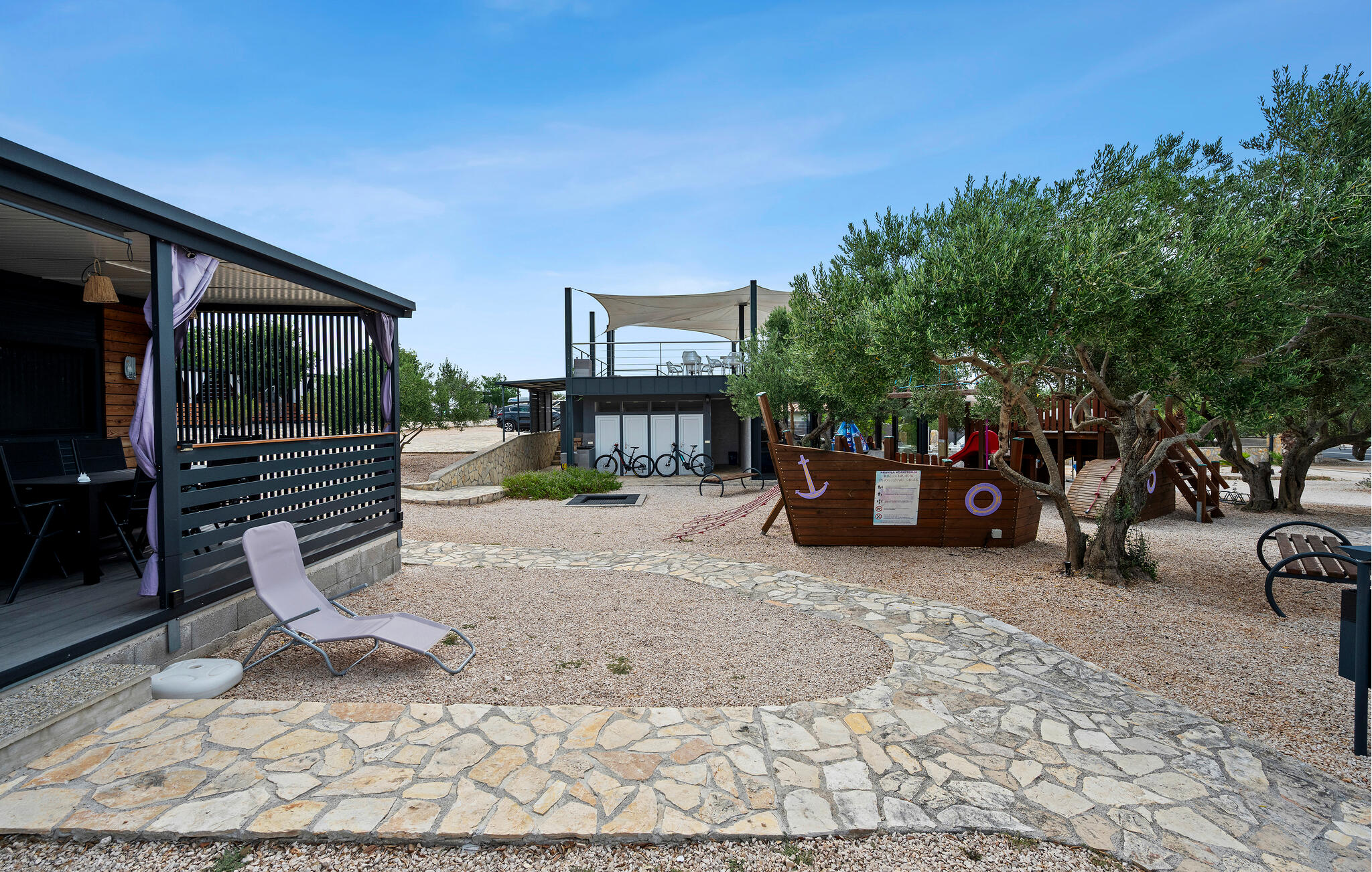 Je kunt je naar hartenlust opfrissen in het gemeenschappelijke zwembad na een partijtje tafeltennis. Laat je kinderen nieuwe vrienden maken in de speeltuin, socialiseer met andere gasten tijdens een barbecue of denk na over je ervaringen onder het genot van een glas wijn op je mooie veranda.