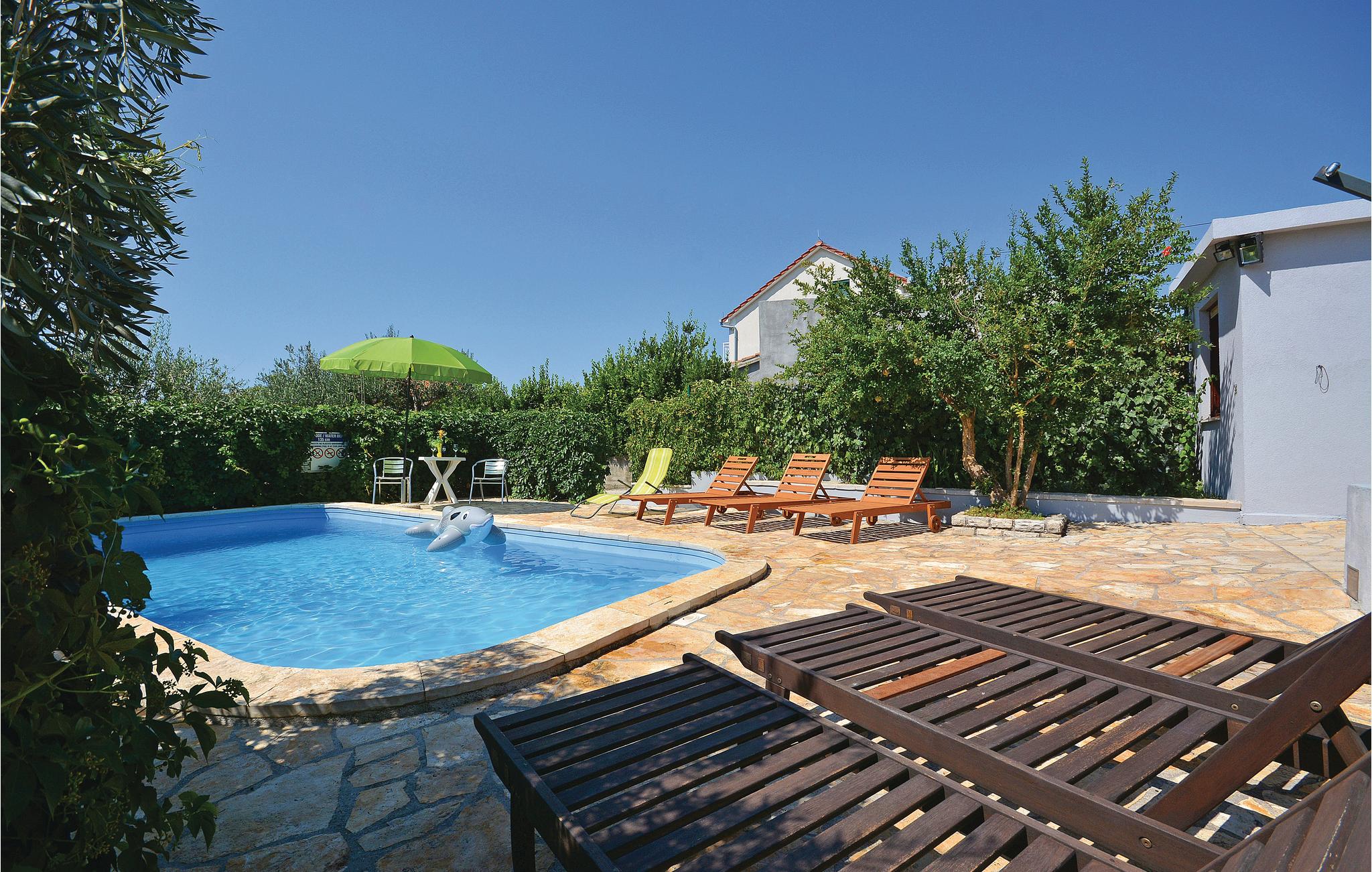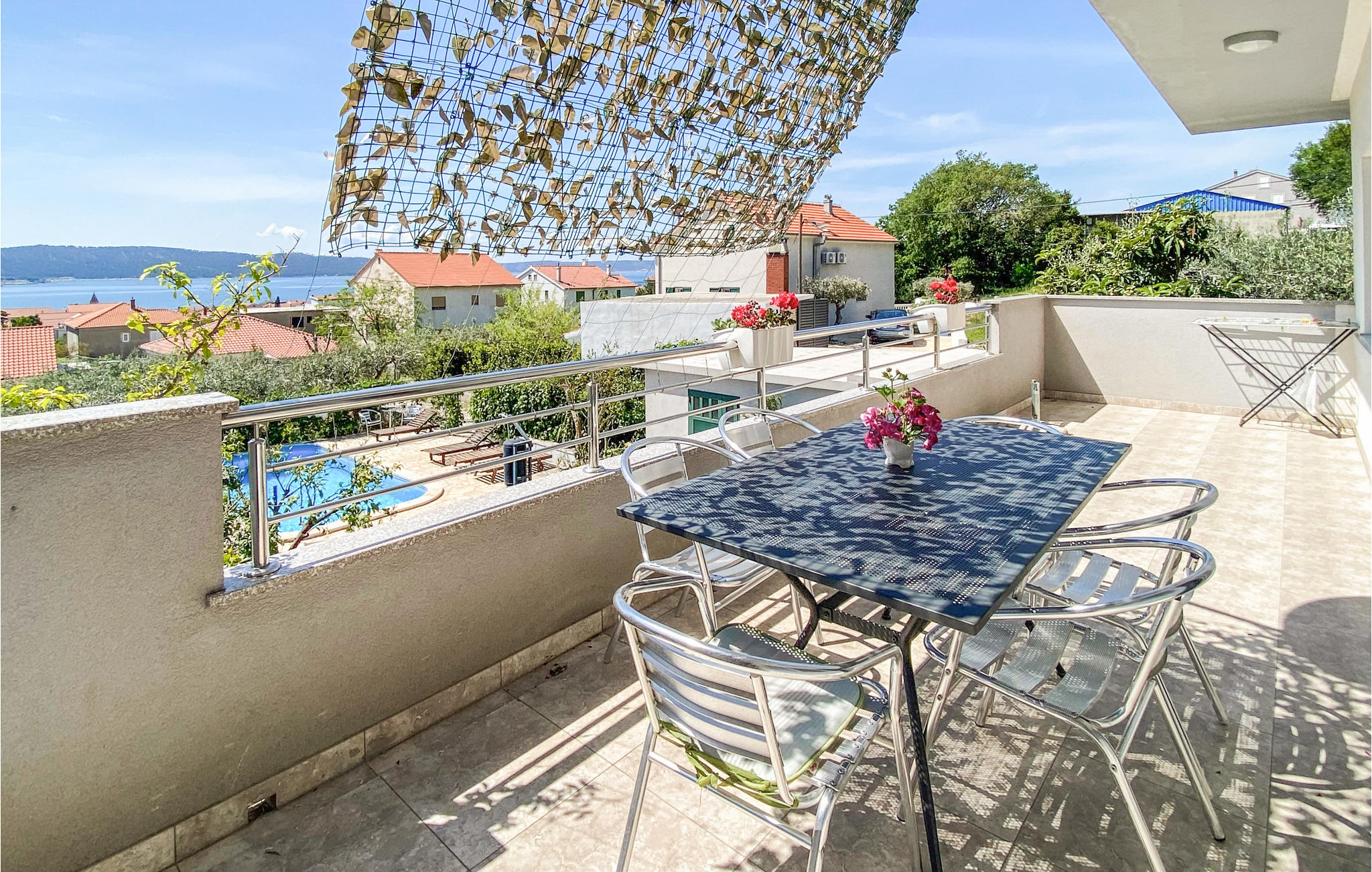 Deze ruime vakantiewoning bevindt zich op de 1e verdieping van een gezinswoning. In de tuin voor het huis delen de gasten een zwembad. Een slaapkamer en de keuken grenzen aan een drukke straat. Dit appartement heeft een groot terras van waaruit u kunt uitkijken over de stad Split, op 8 km afstand. In Split vindt u amusementsmogelijkheden en historische en culturele bezienswaardigheden, zoals het oude paleis van Diocletianus.