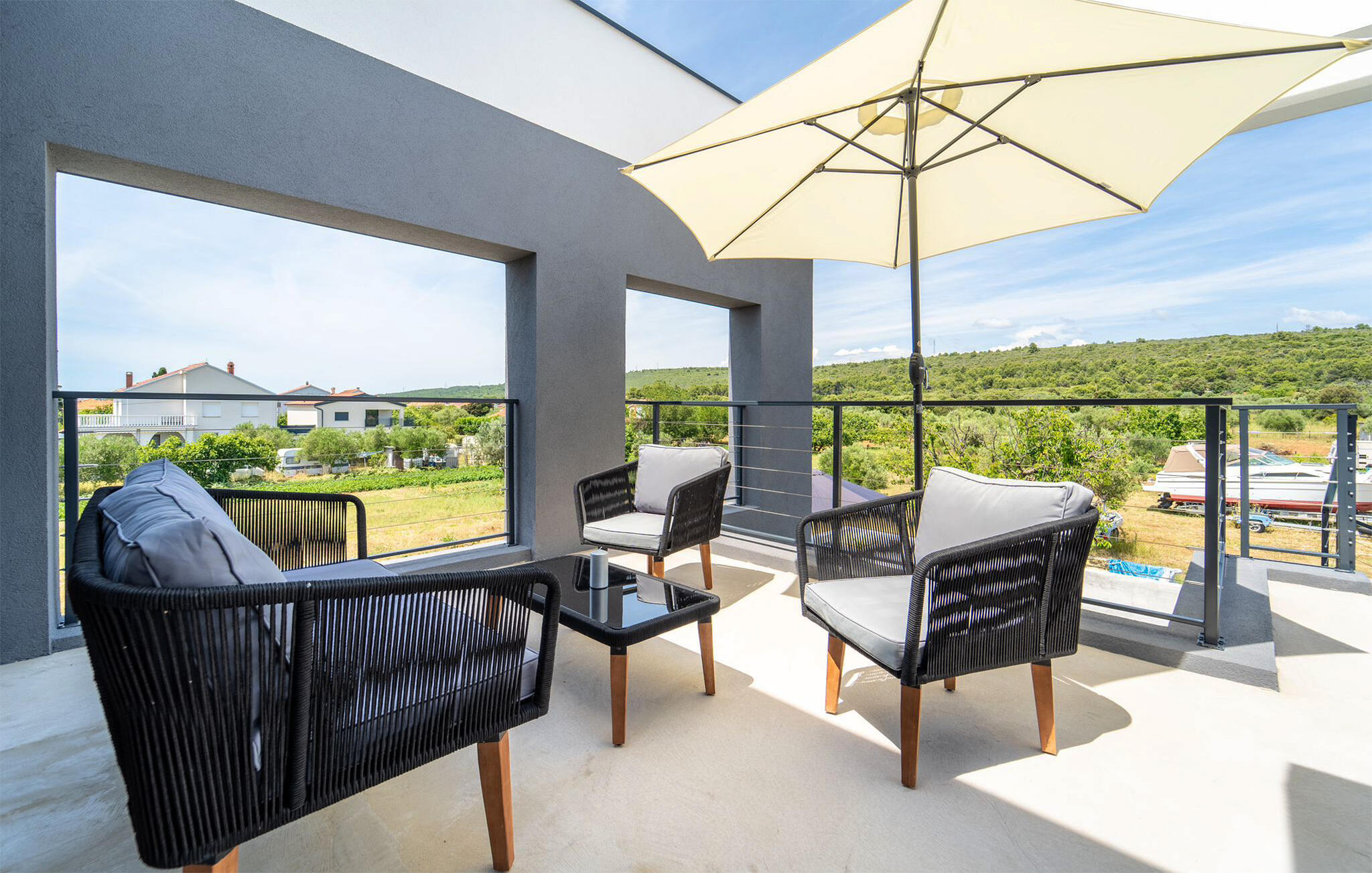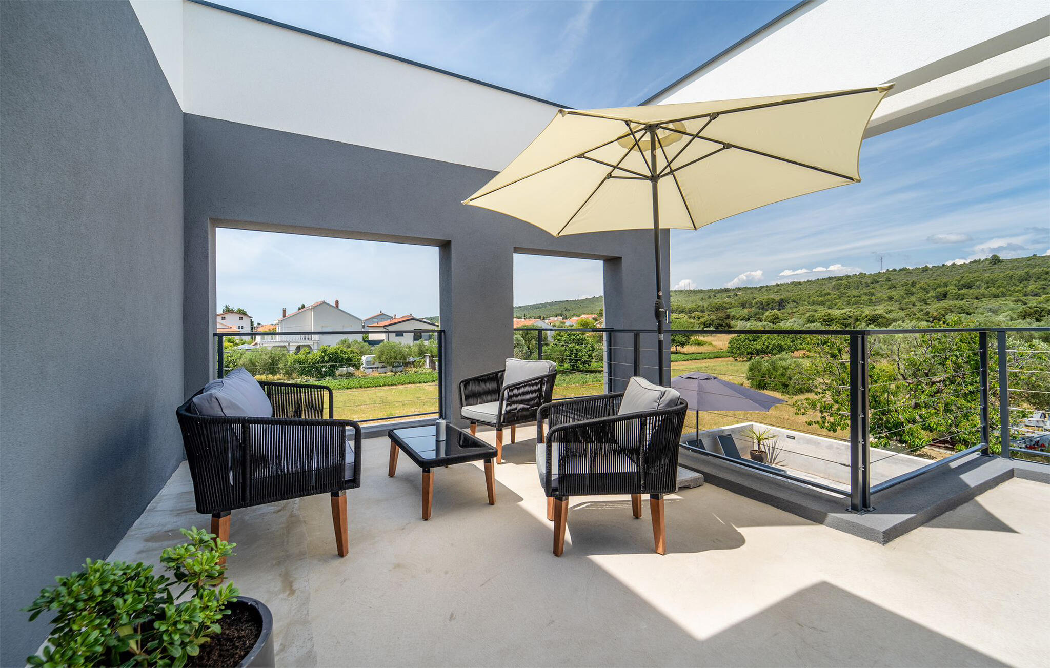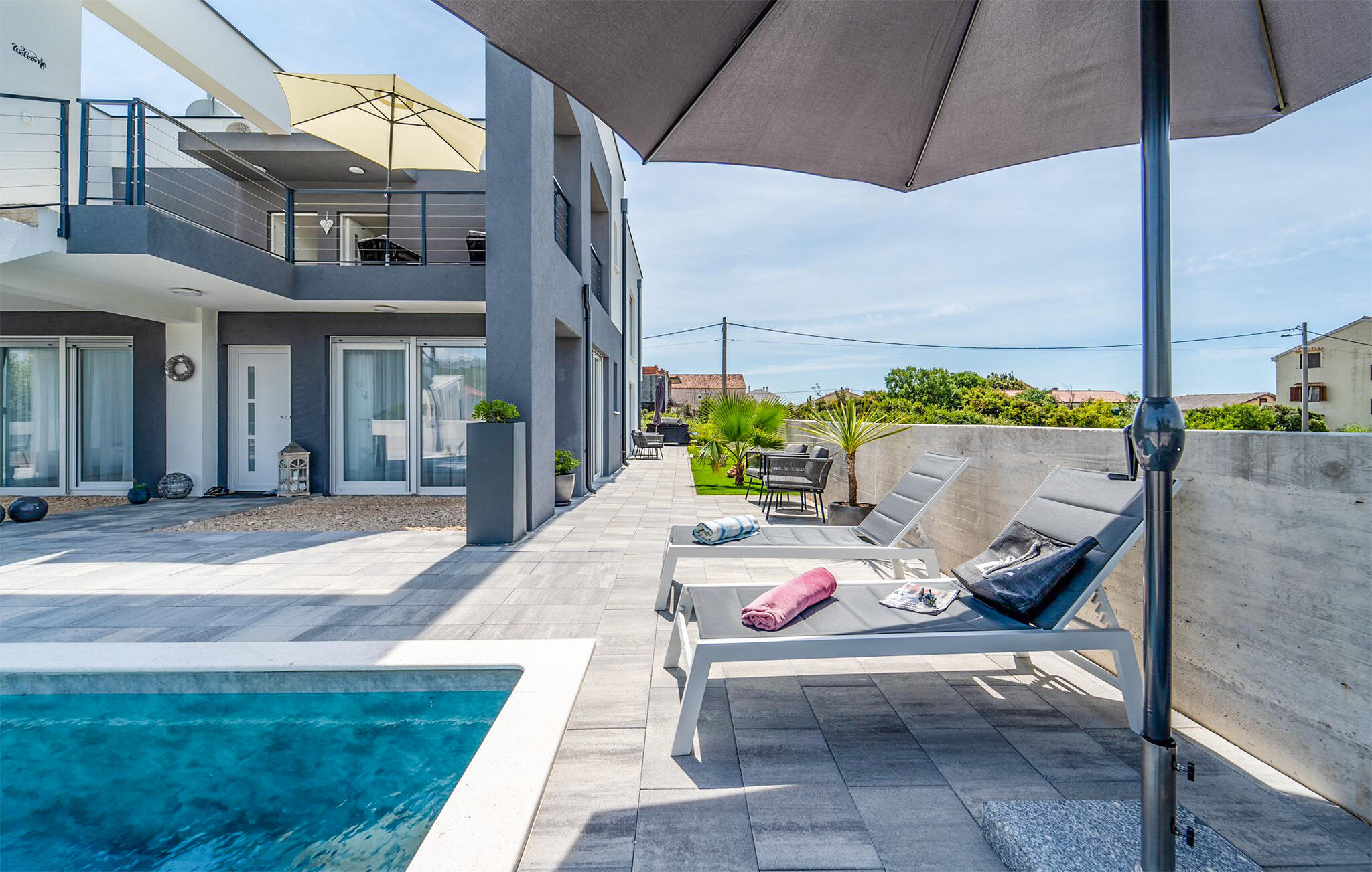 Modern en comfortabel vakantieappartement met gemeenschappelijk zwembad.
