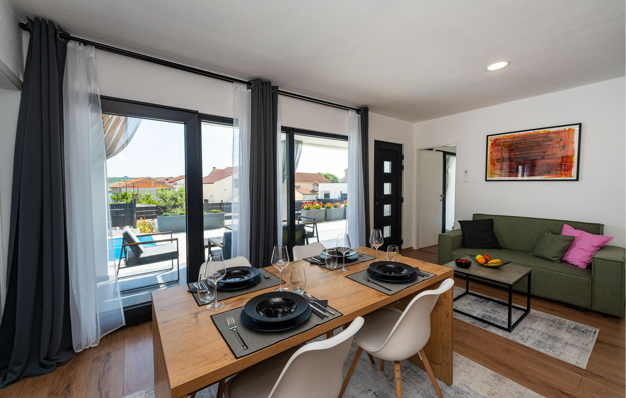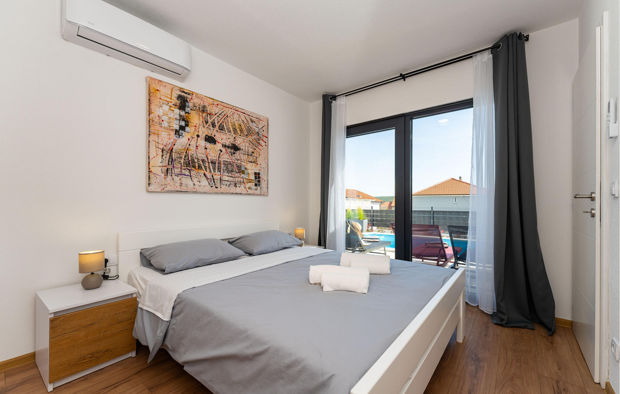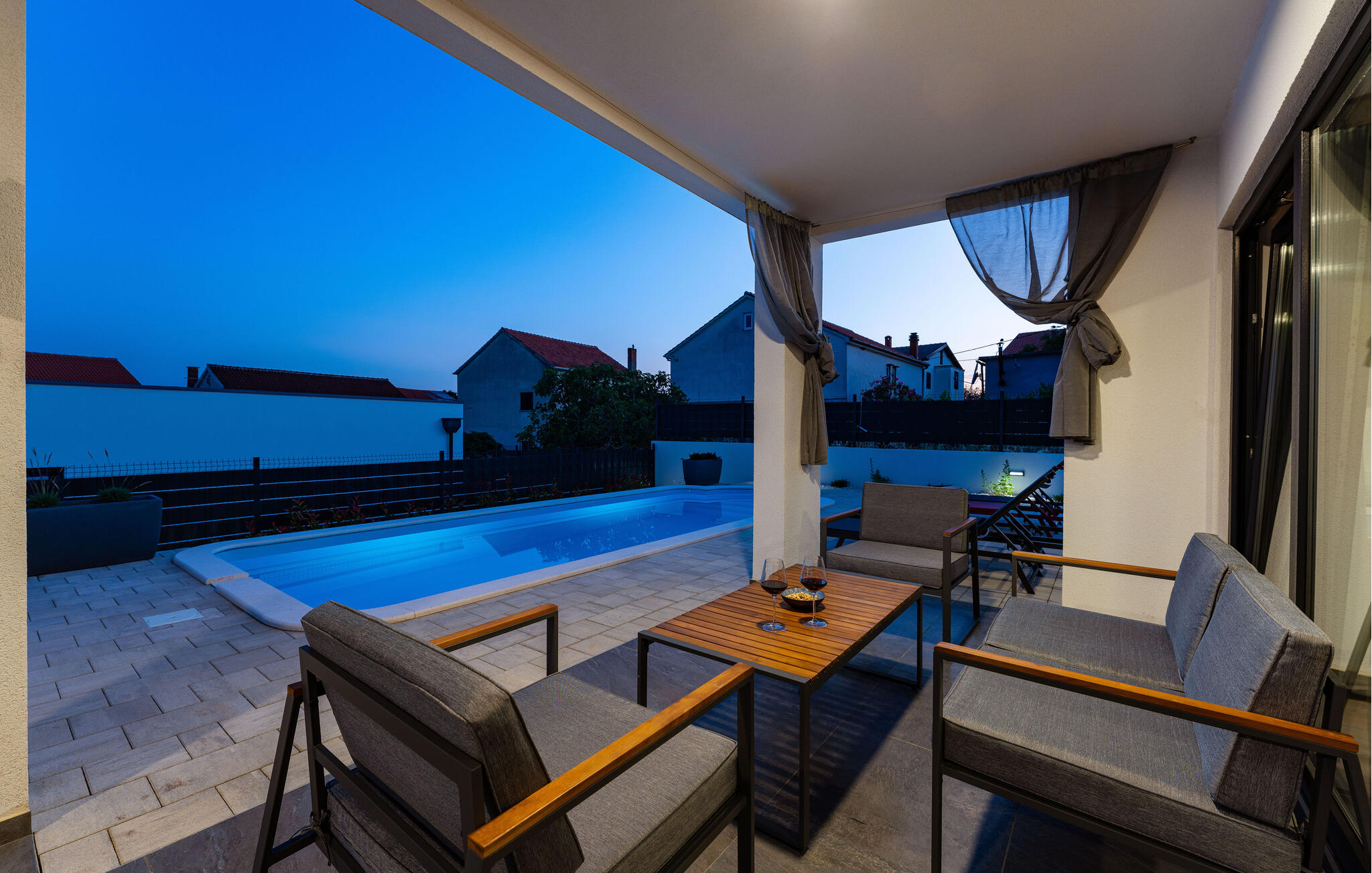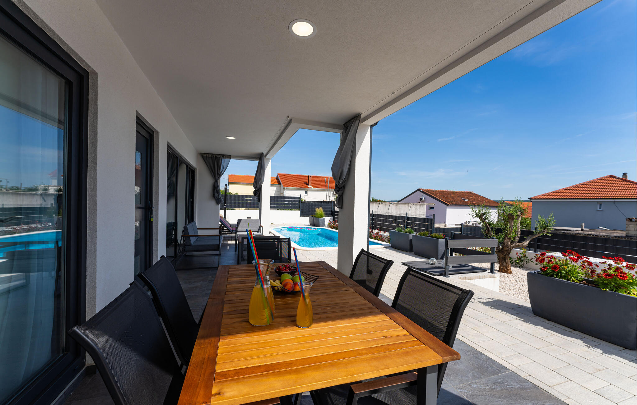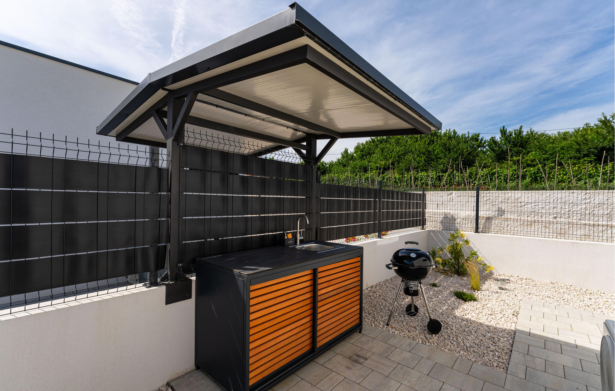 De zonnige buitenruimte is perfect om volop te genieten van het mediterrane klimaat. Verfris jezelf in het prachtige zwembad, doe nieuwe energie op in de comfortabele ligstoelen en vier jullie tijd samen met sfeervolle barbecue-avonden met wijn en kaarslicht.