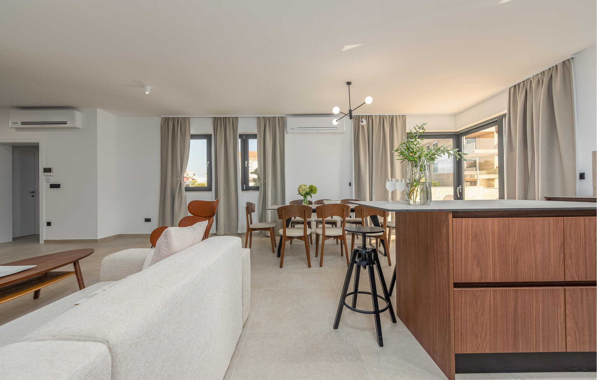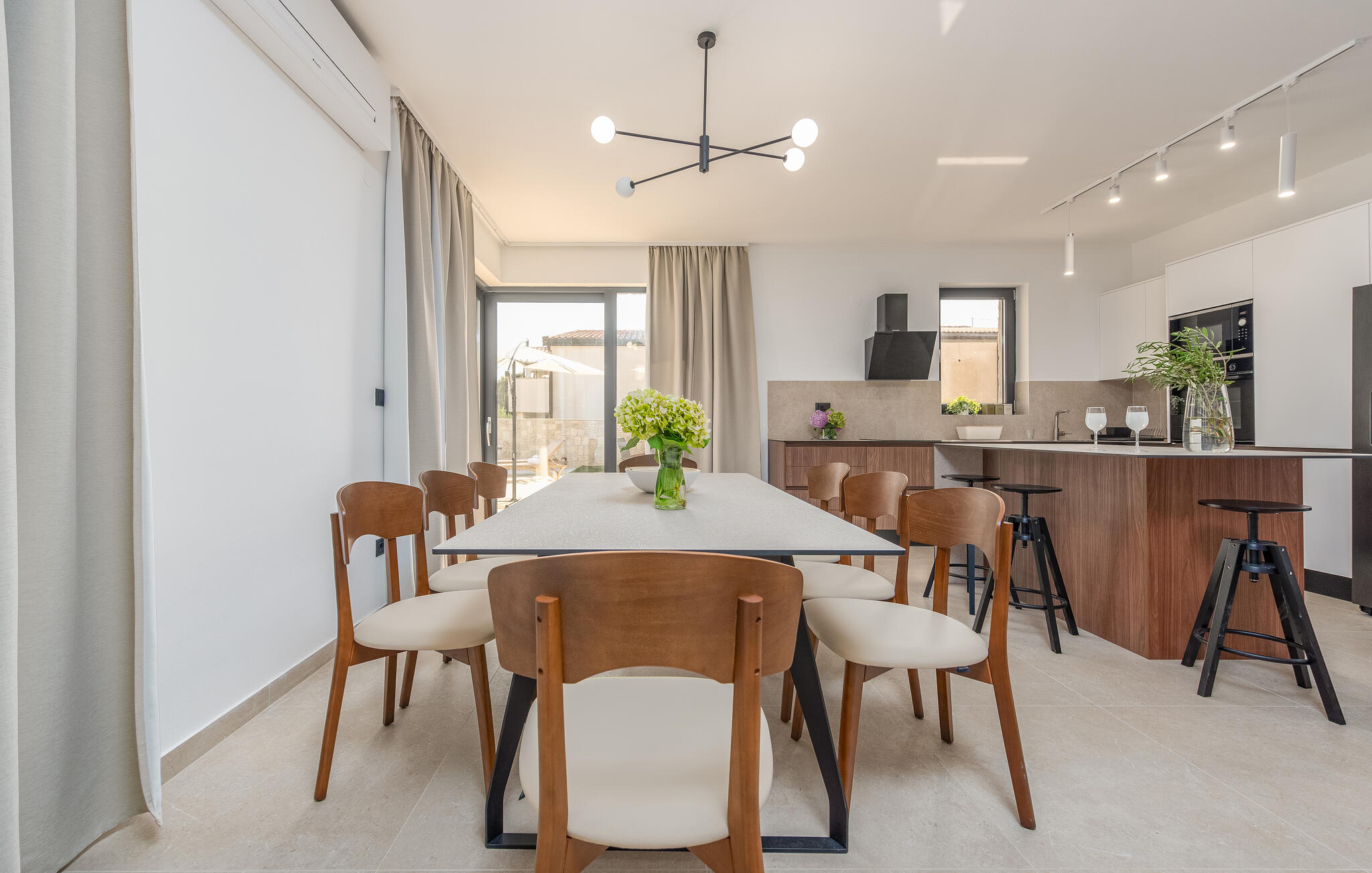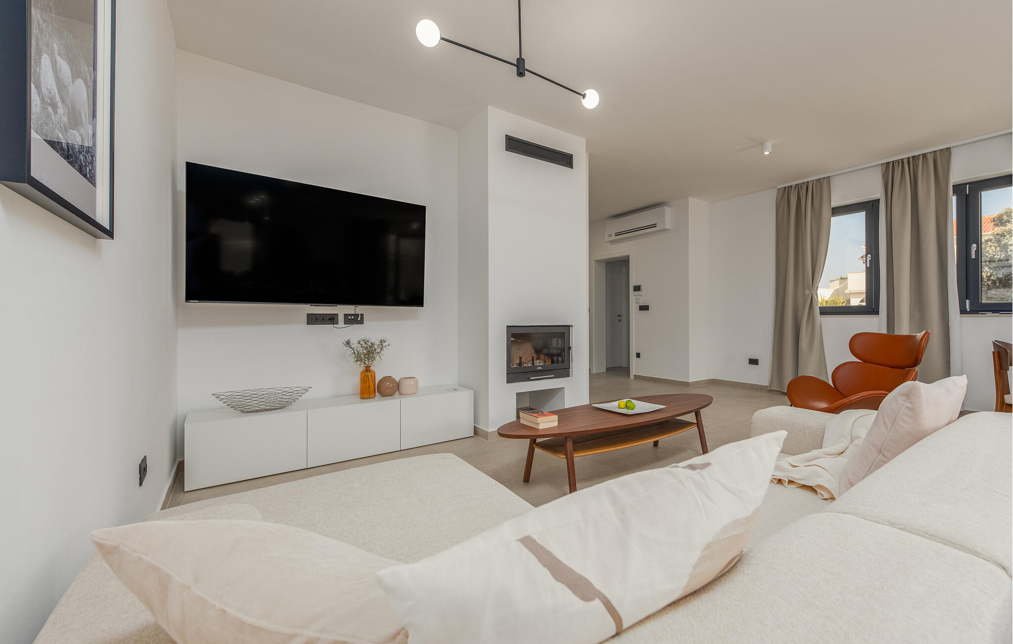 Je vakantie in dit stijlvolle vakantiehuis in Mandre belooft je pure ontspanning. Het huis maakt indruk met hoogwaardige materialen en een comfortabele inrichting die niets te wensen overlaat. De moderne, smaakvolle inrichting creëert een uitnodigende sfeer die je meteen uitnodigt om je thuis te voelen. De ruime woonkamer, met houtkachel, biedt veel ruimte voor ontspanning en gezelligheid - perfect voor een geslaagde vakantie in Dalmatië.