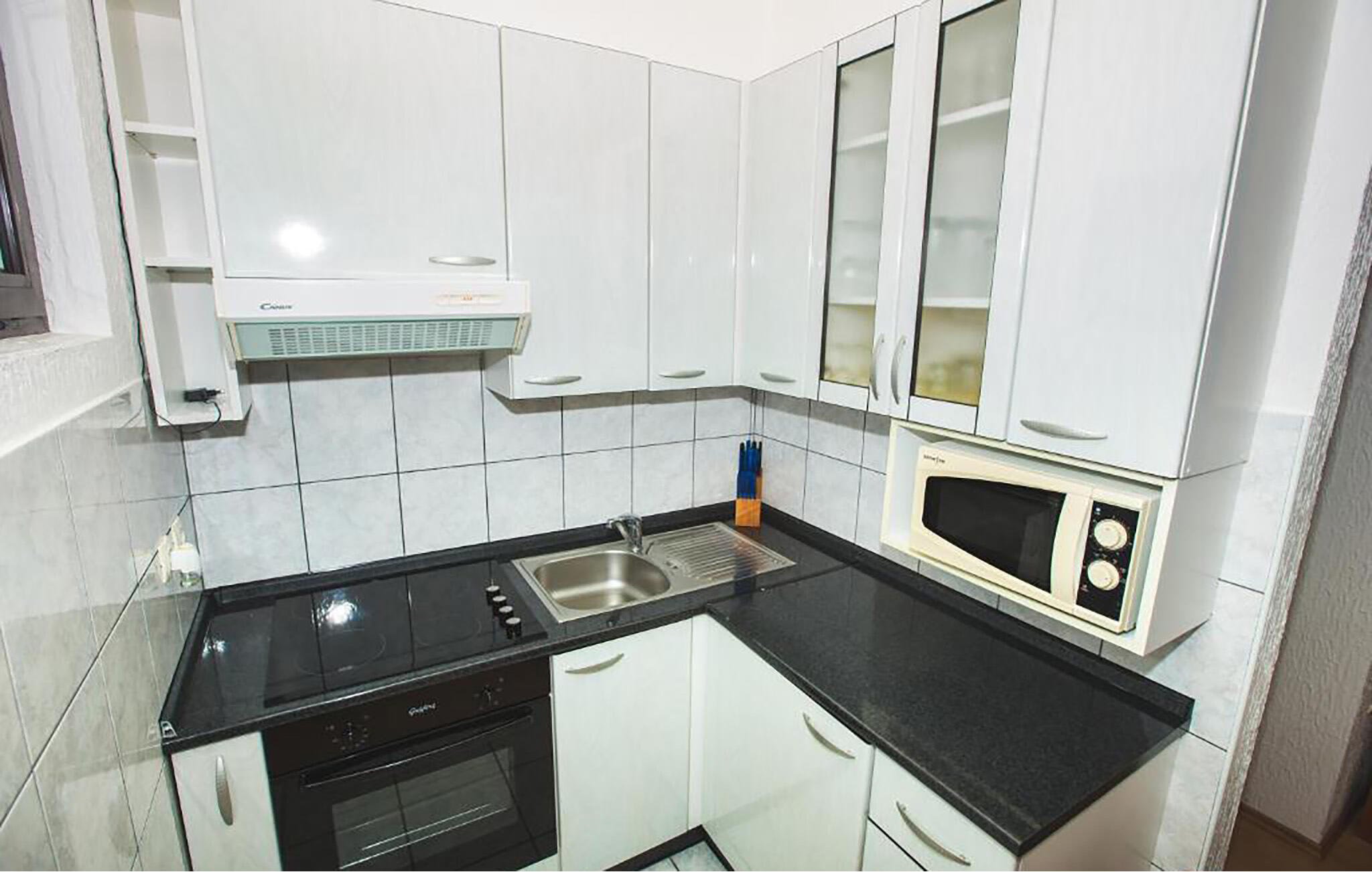 Keuken heeft warm/koud waterElektrisch fornuis met ovenKoelkastAfzuigkapVriesvakKoffiezetapparaatMagnetronVaatwasserStofzuiger1 TVSchotelantenneToilet: warm en koud water