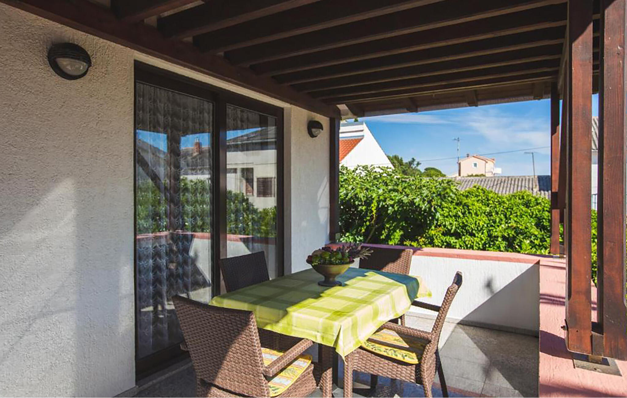 Slaapkamer(1x 2-persoonsbed(den)), Eetkeuken, Badkamer(Toilet: warm en koud water, Douche), Terras of vergelijkbaar(Overdekt terras)