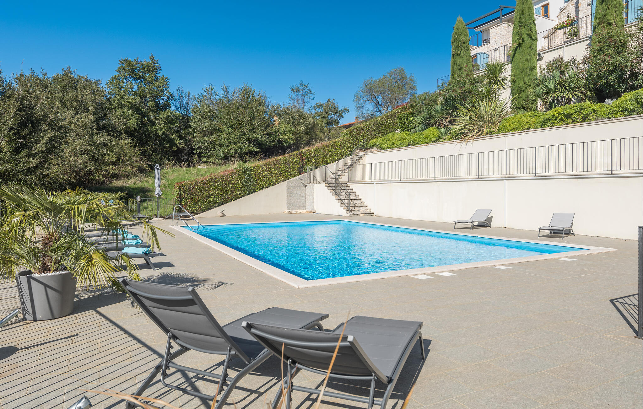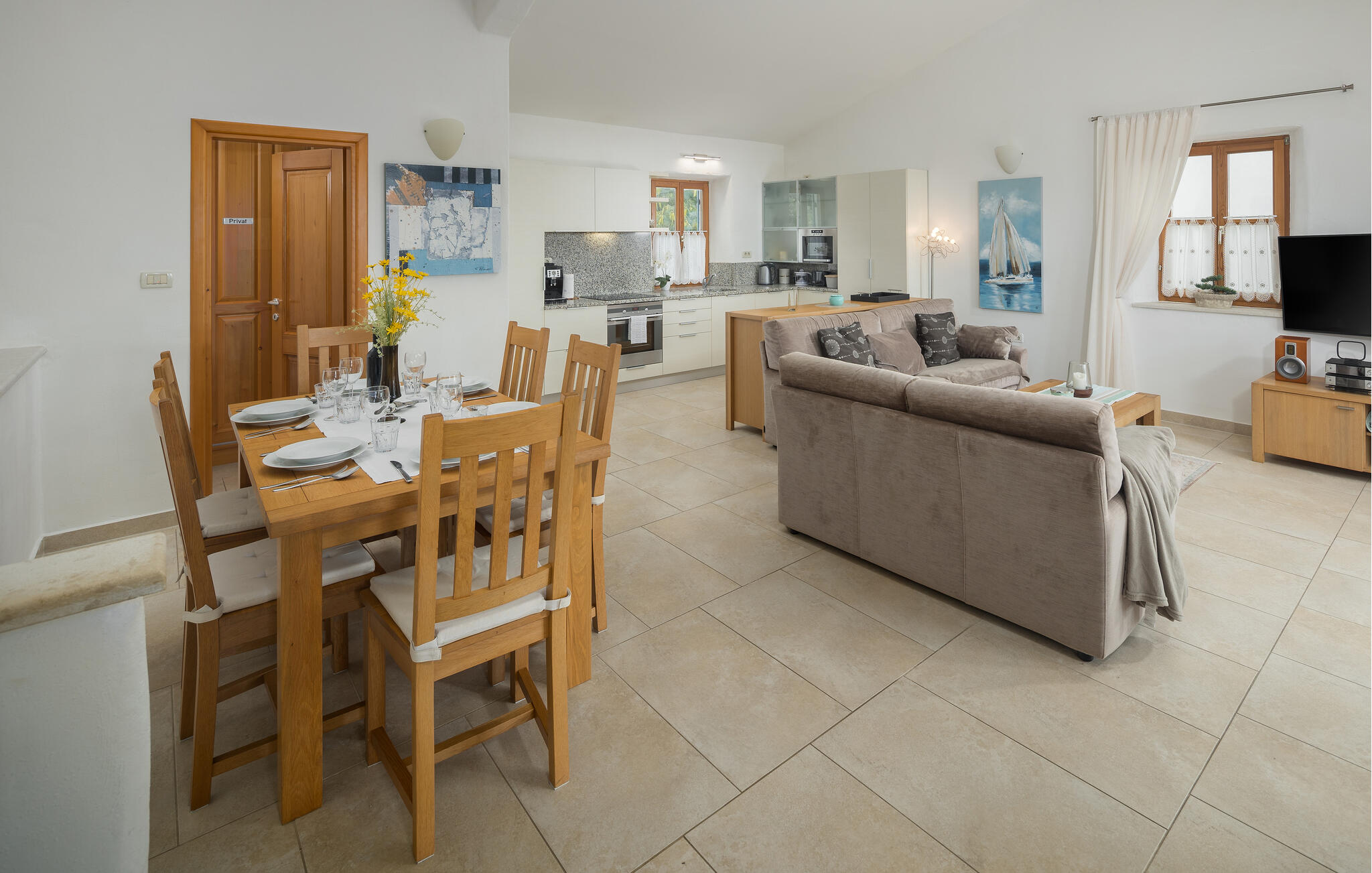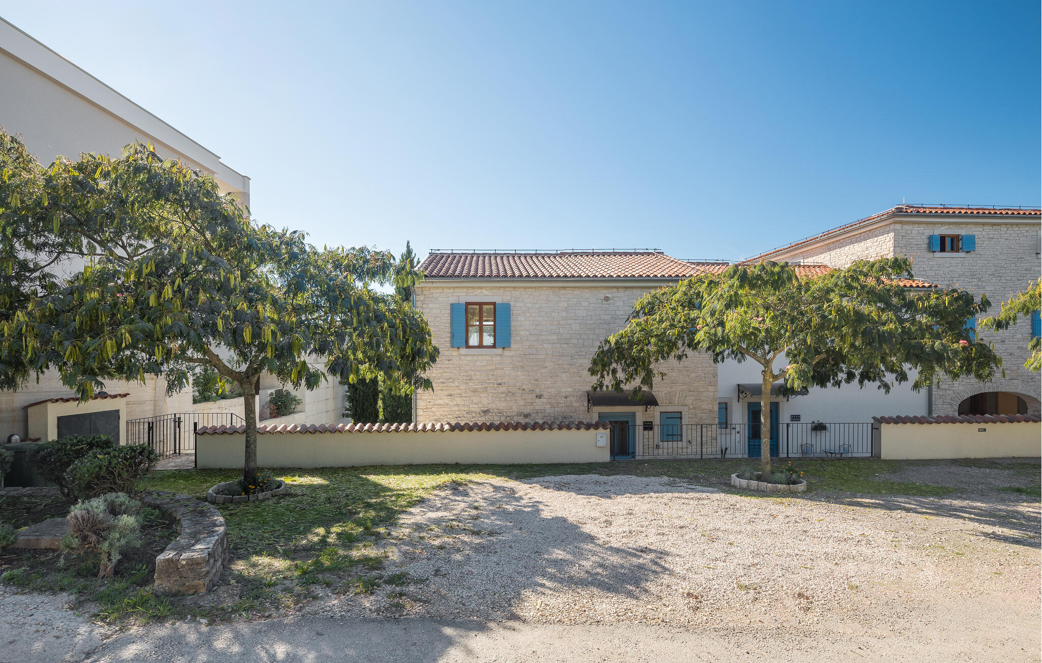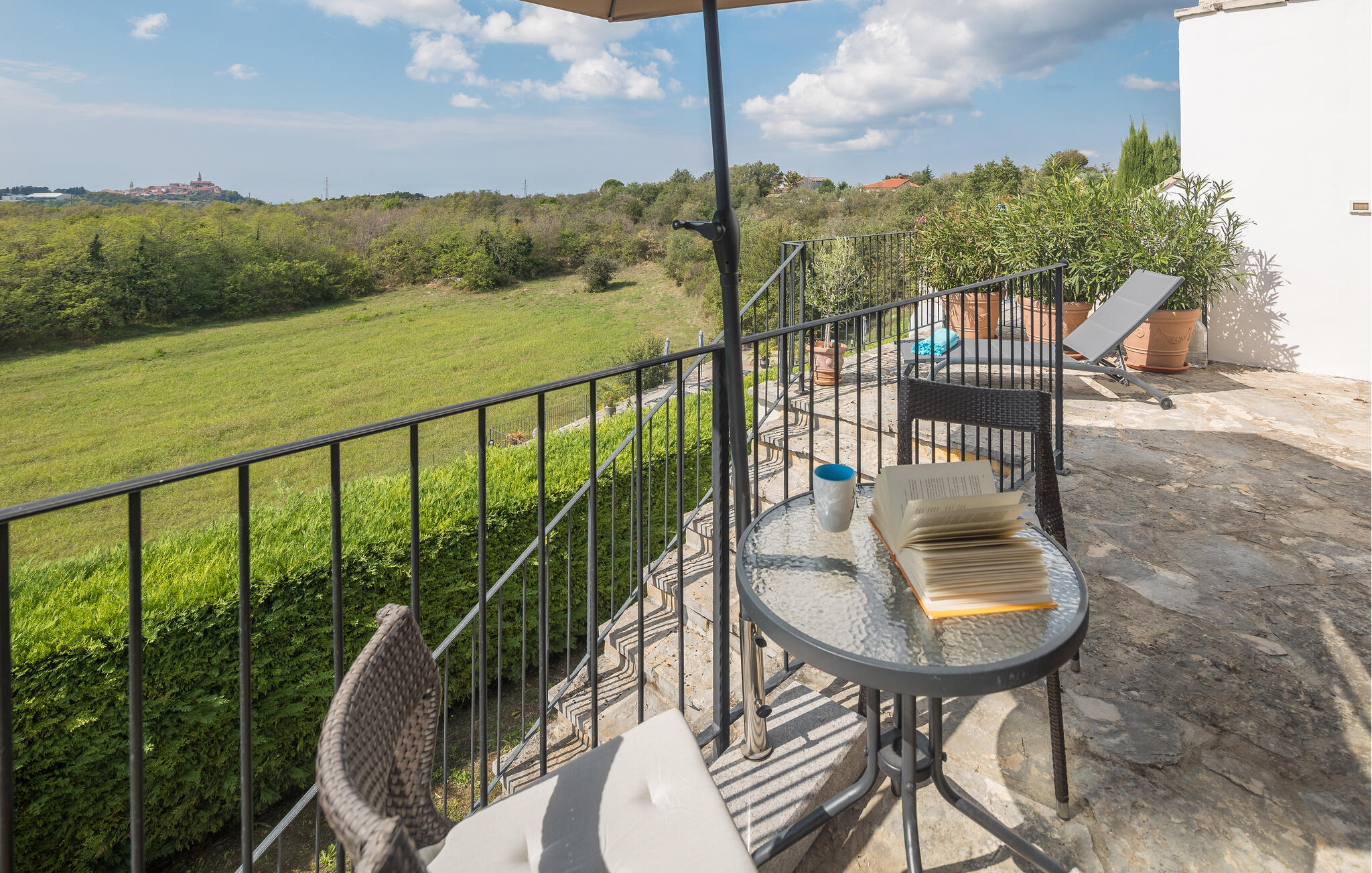 In het kleine dorpje Bibali, vlakbij de stad Buje, vindt u deze mooie en moderne vakantiewoning met twee verdiepingen. Ingericht met moderne en comfortabele meubels, is het een droom voor iedereen die op zoek is naar rust en ontspanning, maar ook dat beetje extra op vakantie. Het appartement bevindt zich in de villa met vier andere vakantiewoningen, die ook verhuurd worden. De slaapkamers bevinden zich op de begane grond, terwijl de keuken, woon- en eetkamer zich boven bevinden. In de gemeenschappelijke tuin wacht het buitenzwembad op u voor verkoeling en plezier. Door de rijke omringende natuur waant u zich midden in de groene bergen, terwijl u hier slechts twintig minuten rijden bent van de prachtige stranden van Umag. Buje ligt in het noorden van Istrië, 10 kilometer landinwaarts van de Adriatische Zee. Door zijn prominente ligging op de top van de heuvel is het al van verre zichtbaar. Vanaf hier opent het uitzicht zich over het hele gebied. Rondom de terrassen liggen olijf- en wijngaarden. In het voorjaar kunt u hier uw eigen wilde asperges plukken. Als u deze met eieren bereidt, wordt het het traditionele Istrische gerecht fritaja. Als u de internationale keuken beu bent, raden wij u aan een `agrotoerisme` te bezoeken. Hier krijgt u alleen lokale gerechten voorgeschoteld - in dergelijke etablissementen mogen alleen producten van de eigen productie worden geserveerd. Nog maar een paar jaar geleden verruilden alleen een paar dappere avonturiers de blauwe golven van de zee voor de groene heuvels van het achterland. De charme van het achterland dat bekend staat als het Kroatische Toscane trekt steeds meer mensen aan: het heuvelachtige landschap, elegante cipressen, schilderachtige stenen huizen en oude bergdorpjes.