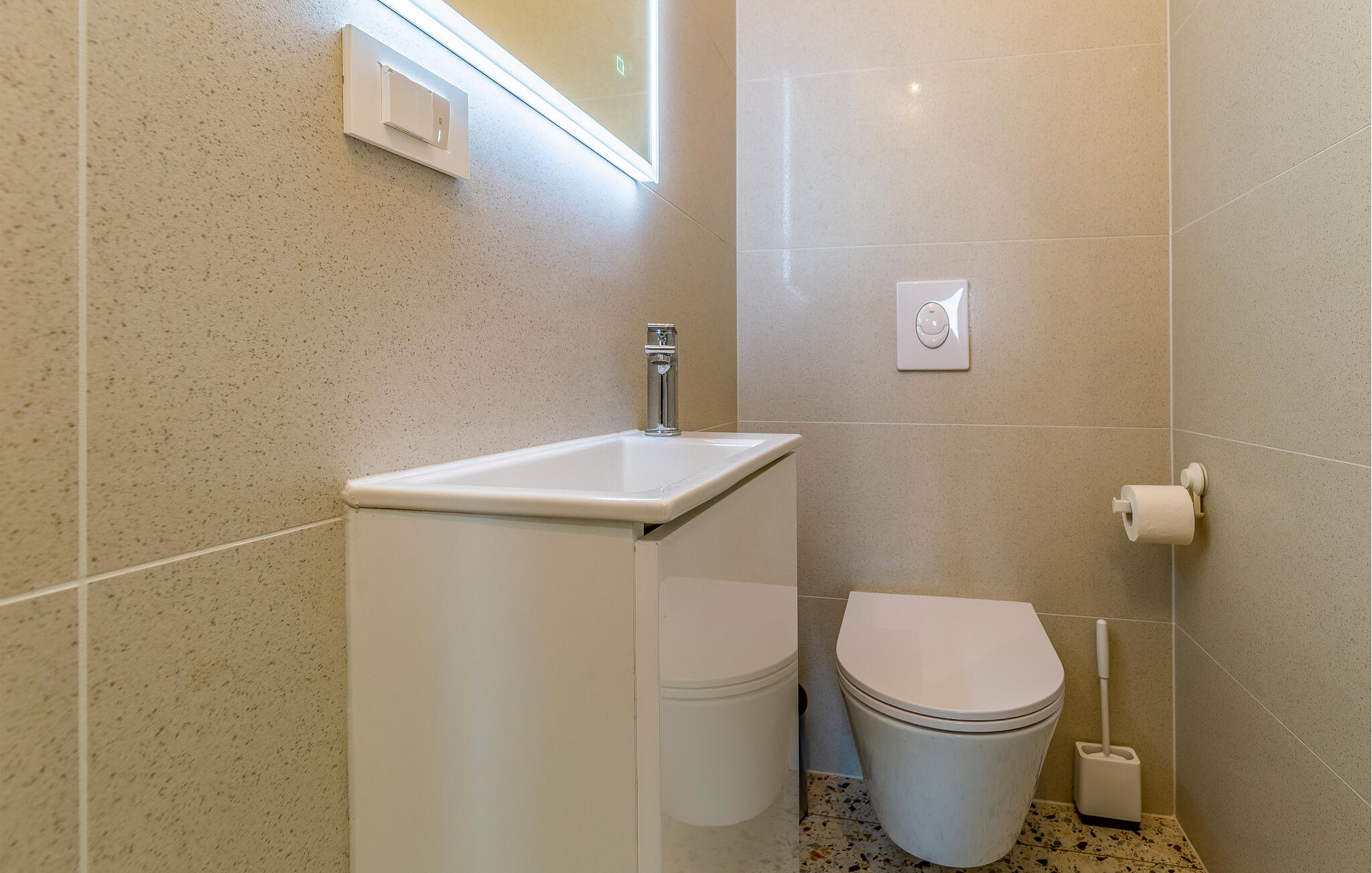 Keuken heeft warm/koud waterEl.fornuis en ovenKoelkastAfzuigkapVriezerKoffiezetapparaatMagnetronVaatwasserStofzuigerSchotelantenneToilet: warm en koud water