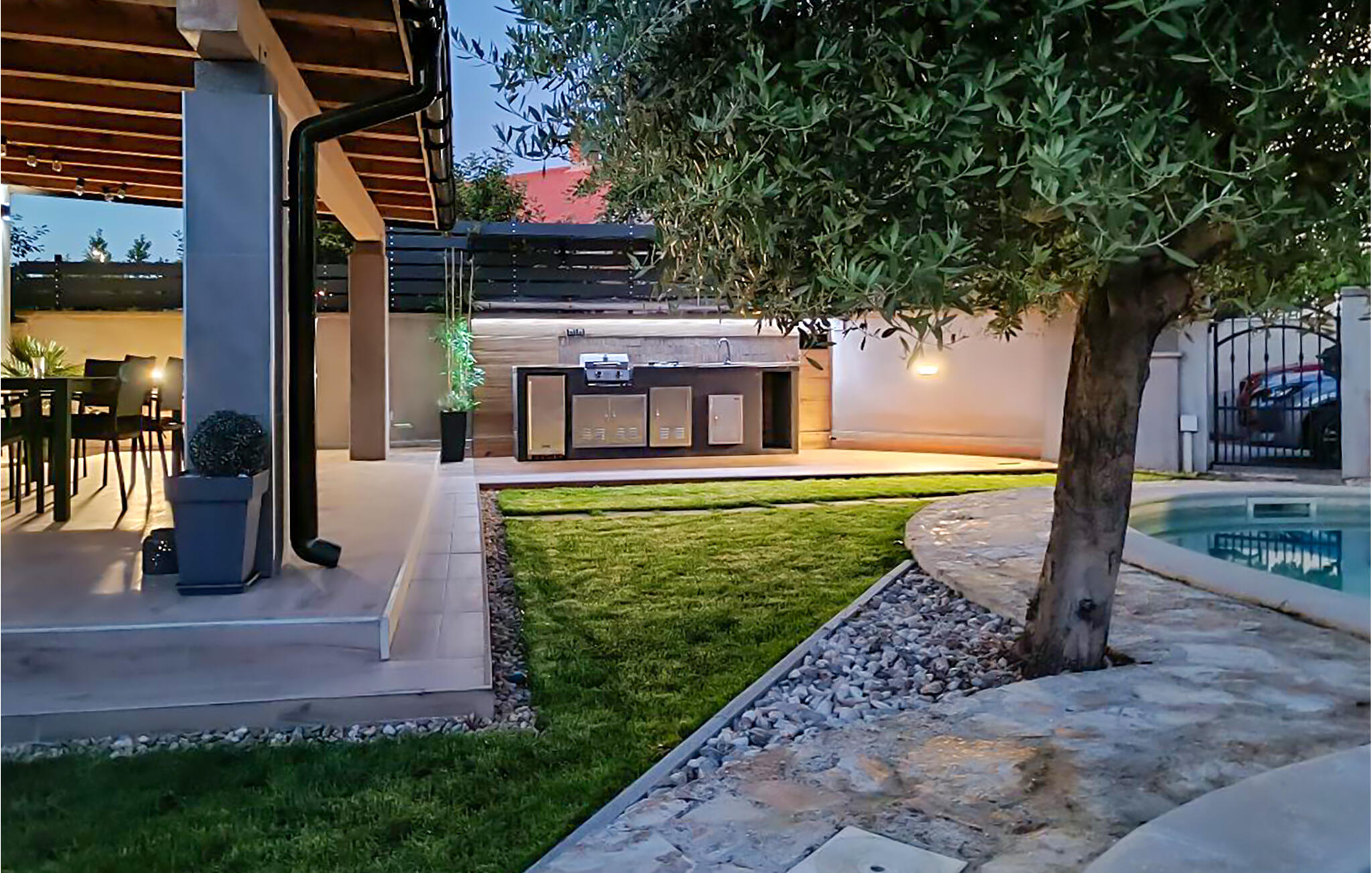 Dit grote en zeer comfortabele vakantiehuis in een rustig deel van het mooie Medulin is modern ingericht en biedt de bewoners veel comfort, ook in de goed uitgeruste keuken. Medulin is vooral populair bij sporters en jongeren, omdat er veel mogelijkheden zijn voor voetbal, beachvolleybal, paardrijden, tennis en windsurfen. Naast goede restaurants, ijssalons en cafés zorgen disco`s, nachtclubs en bars langs de stranden voor een interessant en gevarieerd nachtleven. Ga op excursie en ontdek waarom het schiereiland Istrië ook wel `Terra magica` wordt genoemd. De prachtige grillige kustlijn van Medulin beslaat ongeveer 25 km en de 10 kleine eilandjes in de baai van Medulin zijn onbewoond en nodigen u uit om de dag door te brengen in de ongerepte natuur. Sommige van de eilanden kunnen vanuit Medulin in een paar minuten worden bereikt. S1 is een doorgang naar S3.