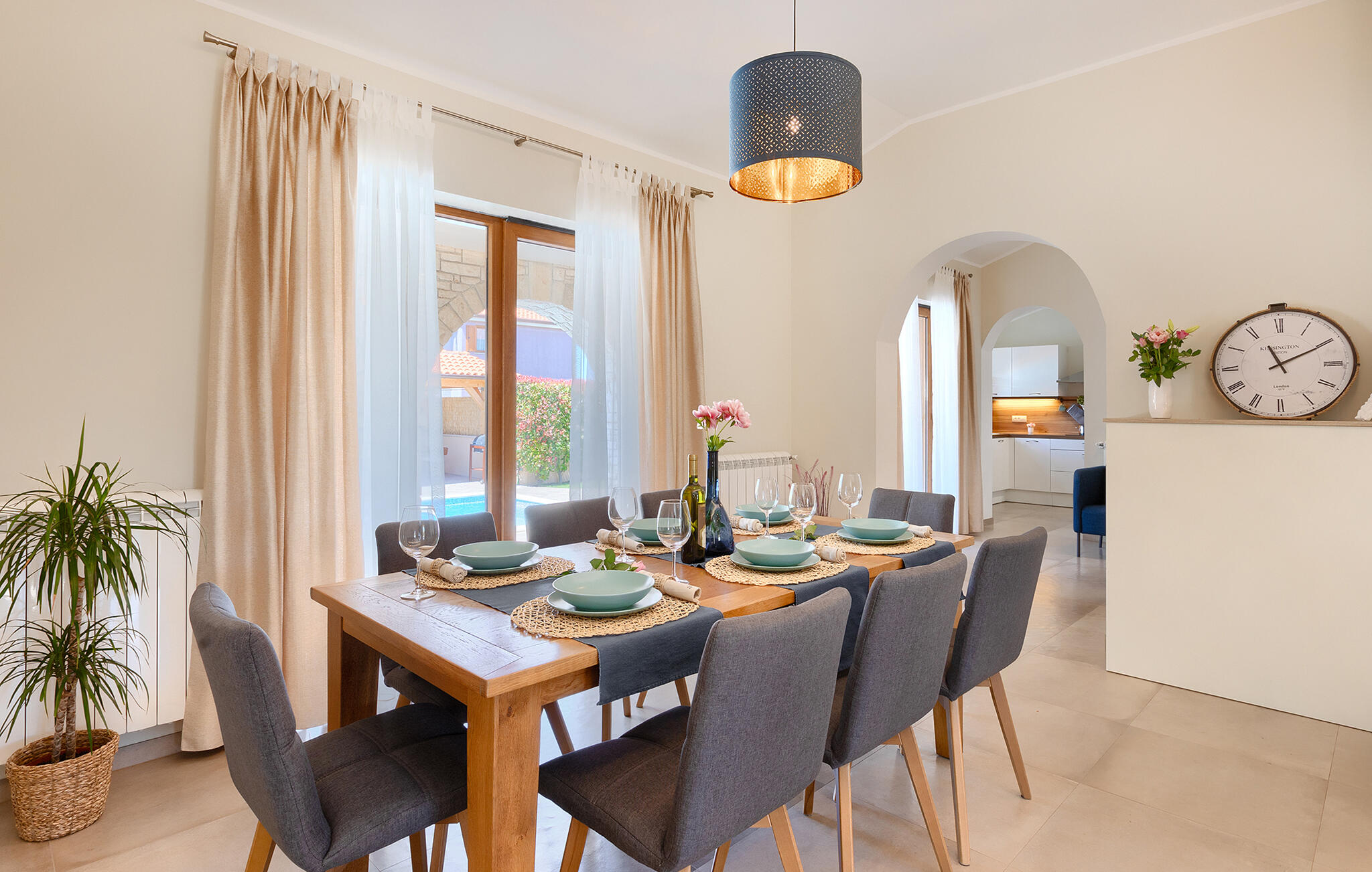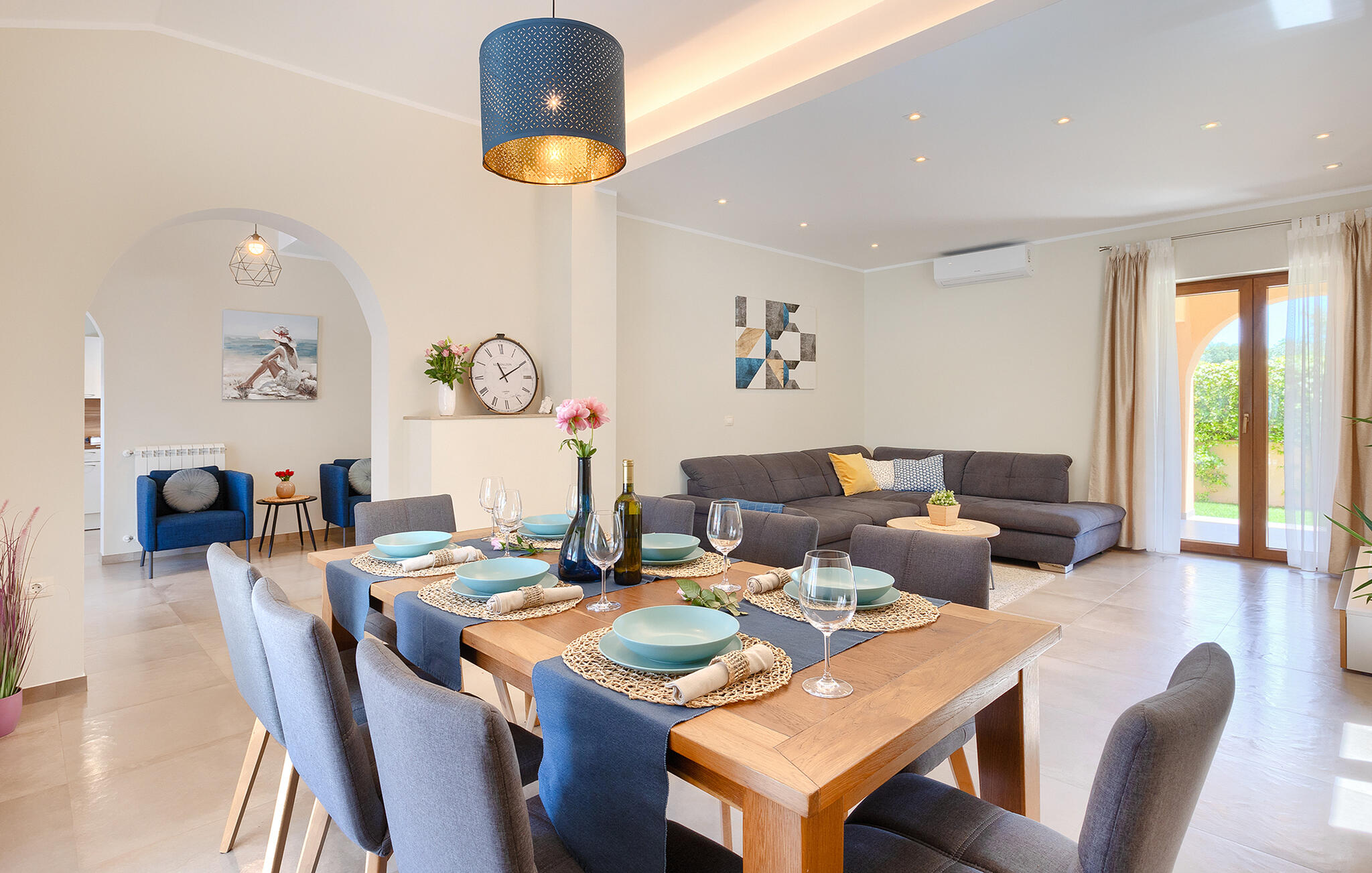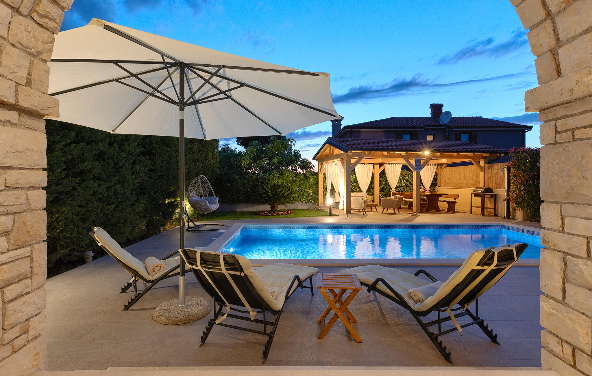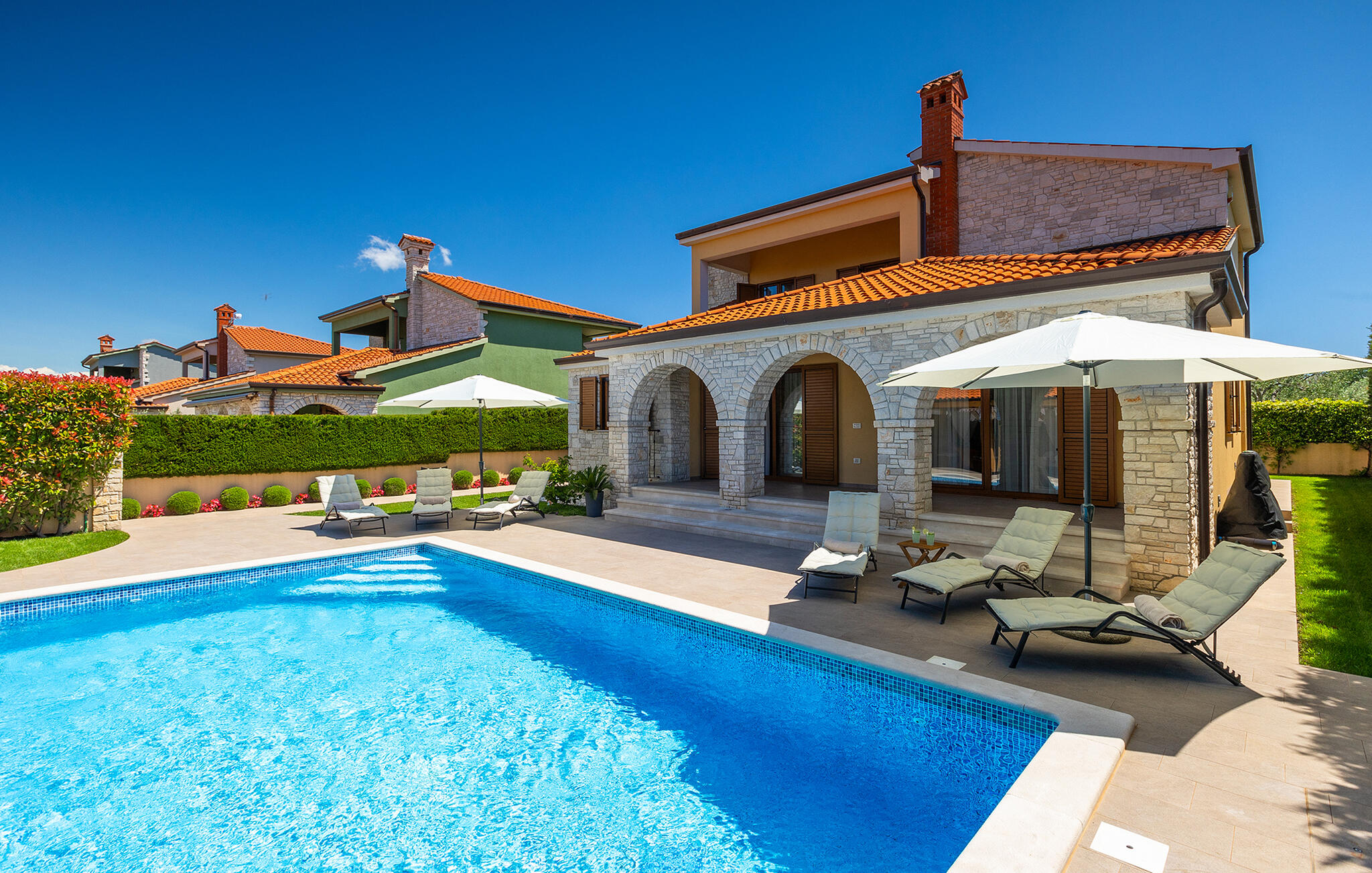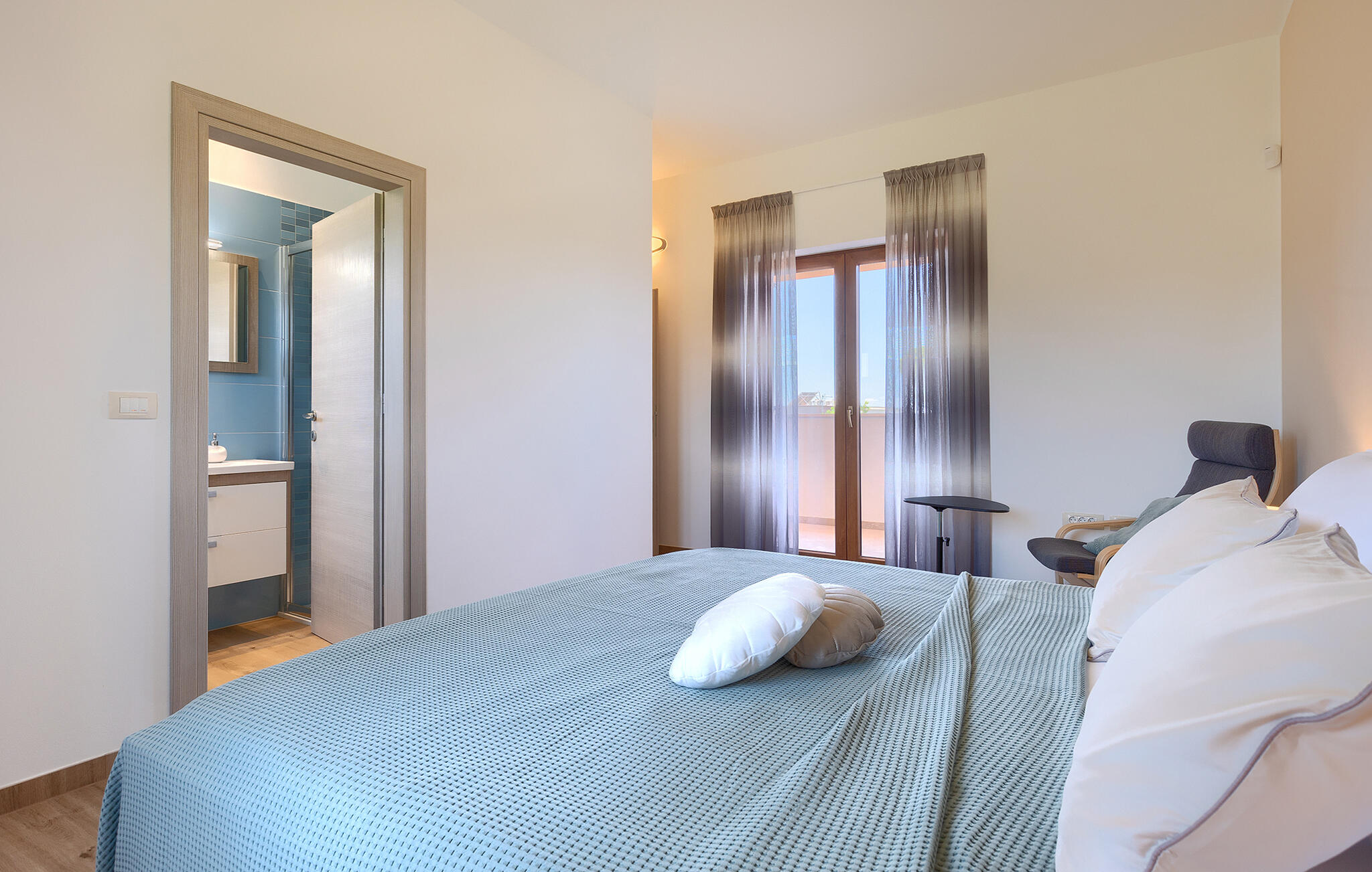 De charmante Villa Aurora is een familievilla in een adembenemend Istrisch landschap, met aan de ene kant uitzicht op zee en aan de andere kant op de grote olijventuin met 8000 olijfbomen. De villa is geschikt voor maximaal 8 personen. De begane grond is verdeeld in een volledig uitgeruste keuken, een ruime woon- en eetkamer, een badkamer en een van de drie slaapkamers met een tweepersoonsbed. De bank in de woonkamer is groot genoeg voor twee personen. De bovenverdieping bestaat uit twee gezellige slaapkamers, elk met een tweepersoonsbed en een eigen badkamer met douche. Het balkon op de bovenverdieping is de beste plek om de dag te beginnen met een prachtig uitzicht. Je zult het grootste deel van je vakantie doorbrengen in de tuin van de villa, waar je kunt luieren op de ligstoelen, ontspannen en genieten. Het overdekte terras met eethoek in de tuin is de perfecte plek om buiten te eten. De locatie van de villa is ideaal omdat het rust en ontspanning biedt, maar ook prachtige stranden, de historische stad Pula, of een van de vele pittoreske Istrische heuvelstadjes, binnen een korte rijafstand liggen, mocht je besluiten om het comfort van je villa te verlaten.Galizana is een klein dorp in de buurt van Pula, de grootste stad in Istrië, bekend om historische bezienswaardigheden. De geschiedenis van Galizana gaat terug tot de Romeinse tijd, toen Galizana het kruispunt was van Romeinse handelsroutes. Vandaag de dag is het een kleine stad met 1500 inwoners, met de 17e-eeuwse parochiekerk St. Rocco in het centrum van de stad. Omdat het een agrarisch gebied is, houdt de bevolking zich voornamelijk bezig met wijnbouw, olijventeelt en veeteelt en produceert olijfolie, geitenkaas en andere lokale producten. Het voordeel van Galizana is de rustige ligging op het typische Istrische platteland en de nabijheid van vele aantrekkelijke voorzieningen, op slechts een klein eindje rijden. Een paar voorbeelden zijn het Romeinse amfitheater uit de 1e eeuw, het Nationaal Park Brijuni-eilanden met een unieke golfbaan en een safaripark, en vele andere culturele en toeristische attracties. Zoek je perfecte plekje op een kiezel-, steen- of zandstrand aan de kust tussen Fazana en Valbadon, op slechts 5 kilometer van Galizana, of bezoek de rotsstranden van het natuurpark Kamenjak, het meest zuidelijke punt van Istrië. Ontdek Midden-Istrië en de middeleeuwse stadjes op heuveltoppen met hun rijke erfgoed, traditie en gastronomische lekkernijen. Mis de Istrische truffel en prosciutto niet! Voor actieve vakantiegangers biedt het gebied vele fietspaden en andere sportfaciliteiten. Binnen 30 km kun je de adembenemende Lim Bay bereiken en kajakken proberen, of het meest romantische Istrische stadje Rovinj bezoeken.