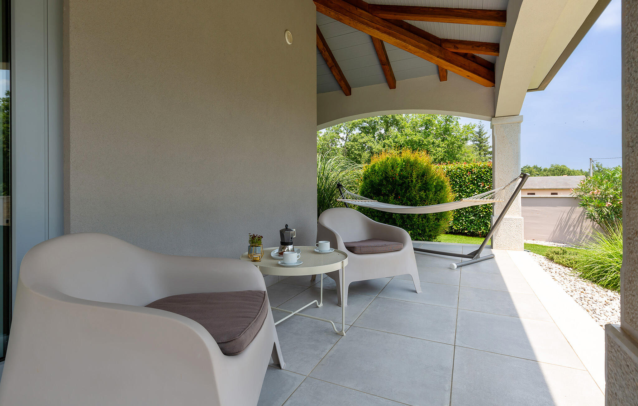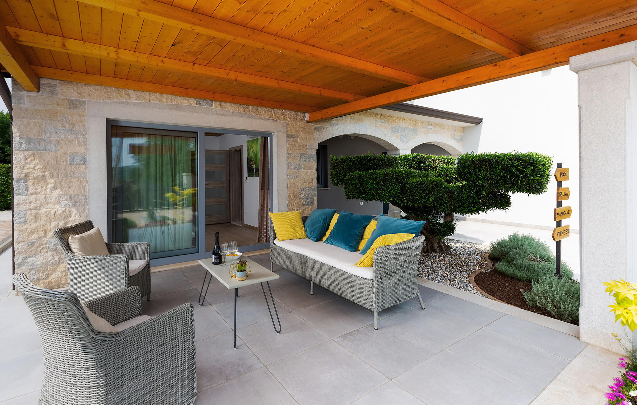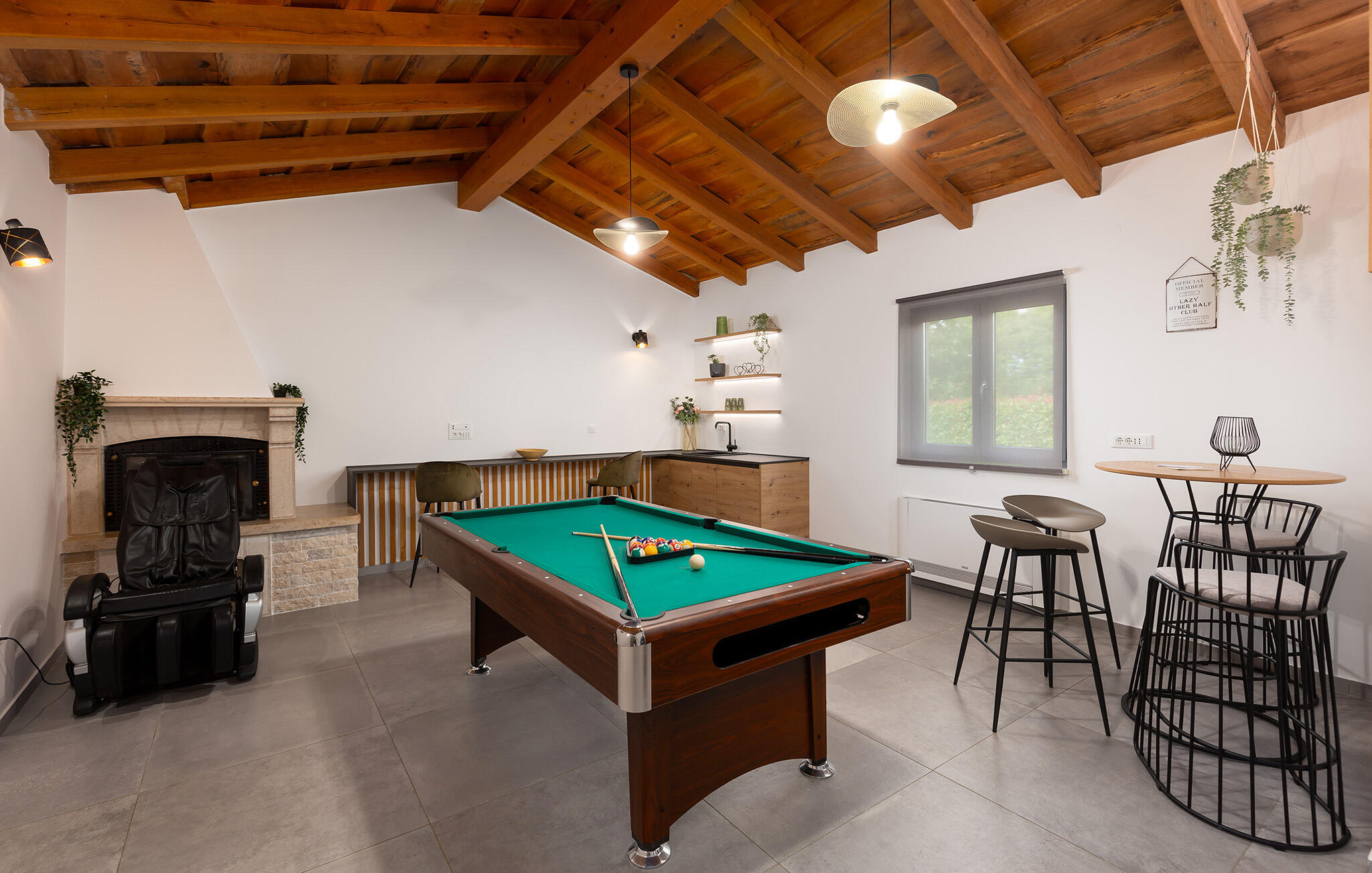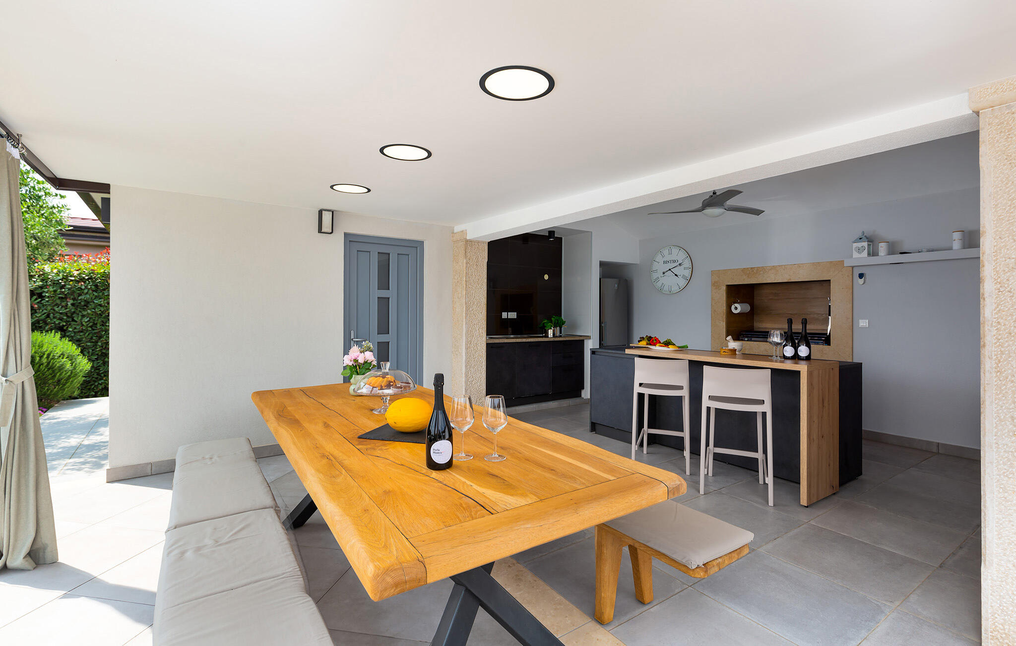 Buiten kun je genieten van de zon in de grote, zorgvuldig onderhouden tuin bij het uitnodigende zwembad, dat ook een ontspannend watervalgordijn heeft. In de zomerkeuken kun je al fresco eten terwijl je geniet van de rust en stilte van het dorp.De prachtige Villa Filton ligt in het dorp Markovici, niet ver van de stad Vizinada. Vizinada is ook te voet of met de fiets te bereiken via de Parenzana, waarschijnlijk de mooiste fietsroute van Istrië. Je zult Vizinada nauwelijks tegenkomen in de reisboeken, dus zorg ervoor dat je het zelf ontdekt. Tussen de heuvel waarop Vizinada ligt en de bergen op de achtergrond ligt het oude middeleeuwse stadje Motovun, waarvan het uiterlijk in 500 jaar nauwelijks is veranderd. De stad is natuurlijk gebleven, niet zorgvuldig overgeschilderd om er nieuw uit te zien. Wanneer je dit stadje bezoekt, geniet je van het prachtige uitzicht vanaf de heuvel over de vallei Mirna en de blauwe en groene kleuren van Istrië. De adembenemende kust van Istrië en de toeristische centra van Porec, Novigrad en Rovinj zijn gemakkelijk te bereiken. In de buurt van de villa kun je je golfvaardigheden testen: een oefenbaan met 5 holes ligt in de vallei, terwijl een 5-sterrenbaan met 18 holes in Savudrija ligt. Een auto is aanbevolen.