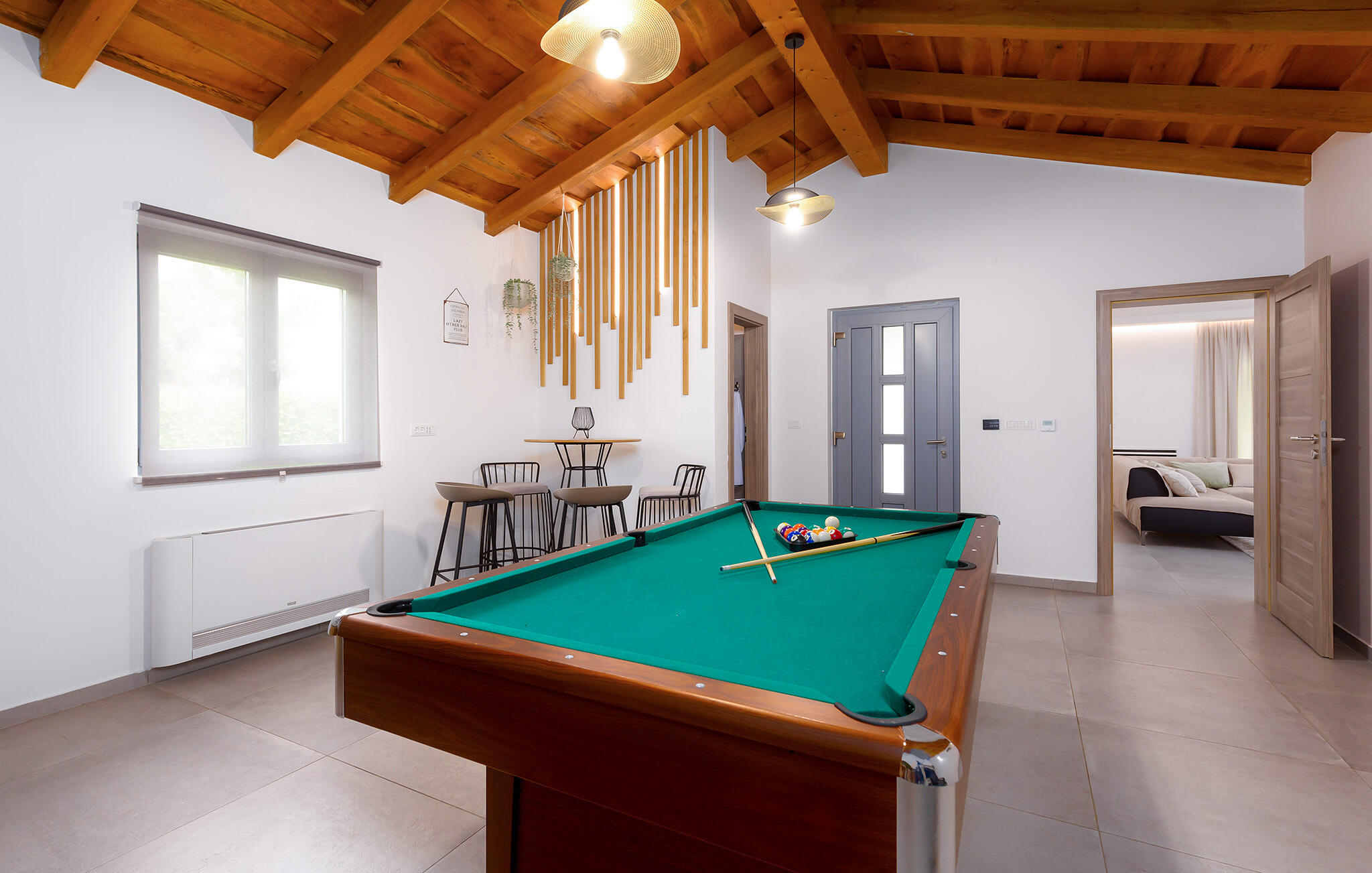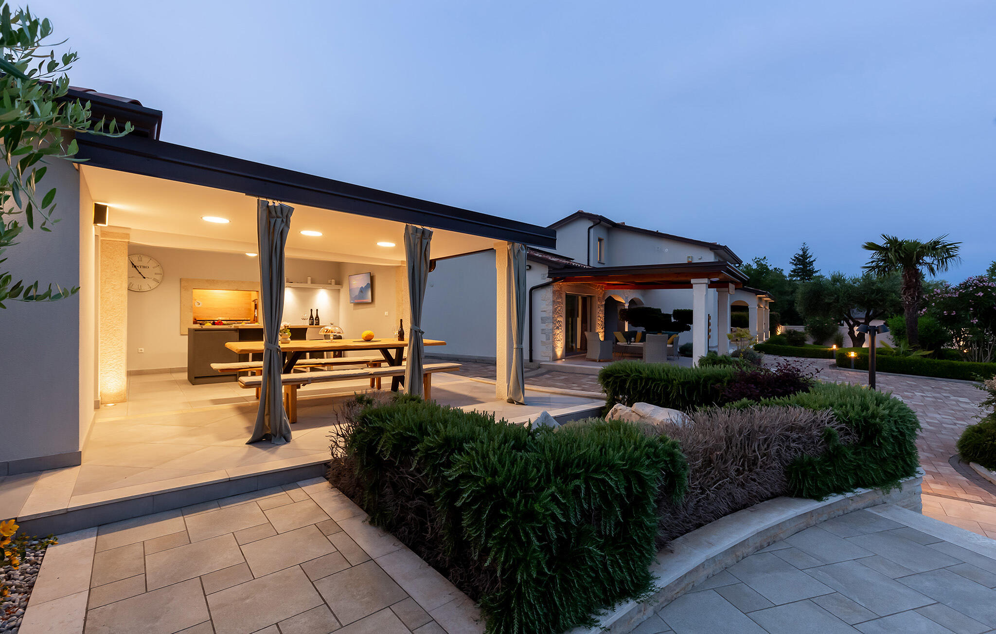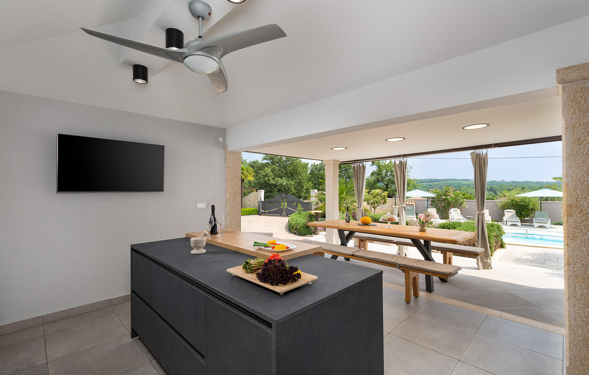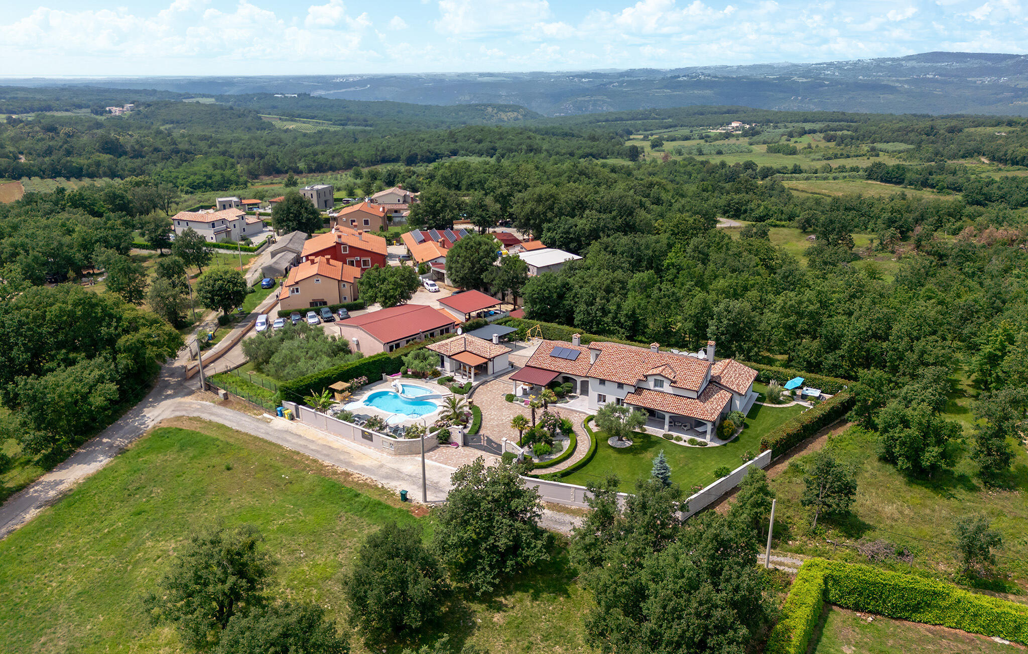 Buiten kun je genieten van de zon in de grote, zorgvuldig onderhouden tuin bij het uitnodigende zwembad, dat ook een ontspannend watervalgordijn heeft. In de zomerkeuken kun je al fresco eten terwijl je geniet van de rust en stilte van het dorp.De prachtige Villa Filton ligt in het dorp Markovici, niet ver van de stad Vizinada. Vizinada is ook te voet of met de fiets te bereiken via de Parenzana, waarschijnlijk de mooiste fietsroute van Istrië. Je zult Vizinada nauwelijks tegenkomen in de reisboeken, dus zorg ervoor dat je het zelf ontdekt. Tussen de heuvel waarop Vizinada ligt en de bergen op de achtergrond ligt het oude middeleeuwse stadje Motovun, waarvan het uiterlijk in 500 jaar nauwelijks is veranderd. De stad is natuurlijk gebleven, niet zorgvuldig overgeschilderd om er nieuw uit te zien. Wanneer je dit stadje bezoekt, geniet je van het prachtige uitzicht vanaf de heuvel over de vallei Mirna en de blauwe en groene kleuren van Istrië. De adembenemende kust van Istrië en de toeristische centra van Porec, Novigrad en Rovinj zijn gemakkelijk te bereiken. In de buurt van de villa kun je je golfvaardigheden testen: een oefenbaan met 5 holes ligt in de vallei, terwijl een 5-sterrenbaan met 18 holes in Savudrija ligt. Een auto is aanbevolen.