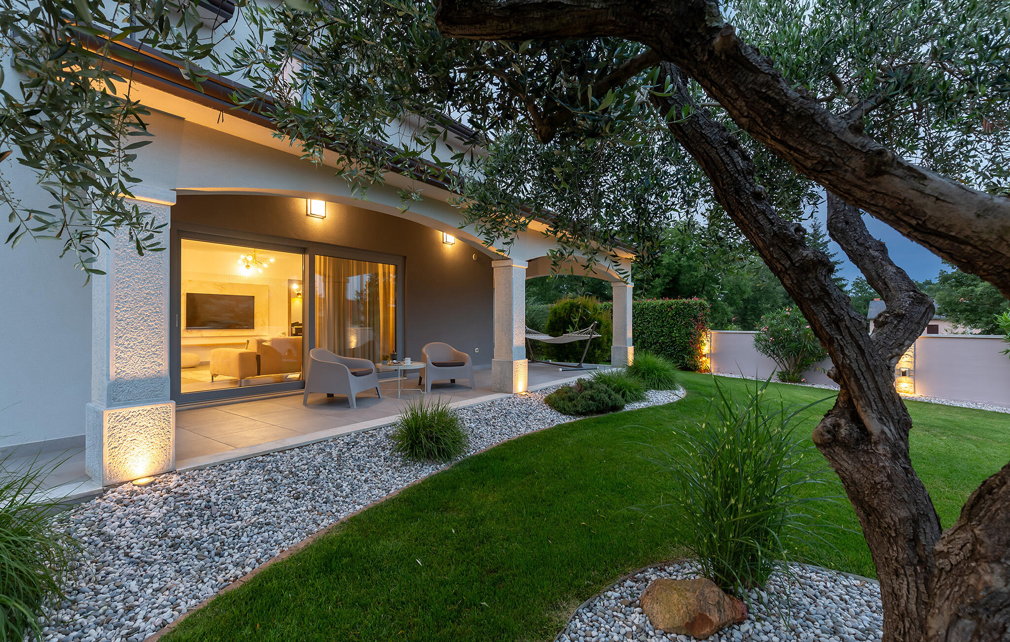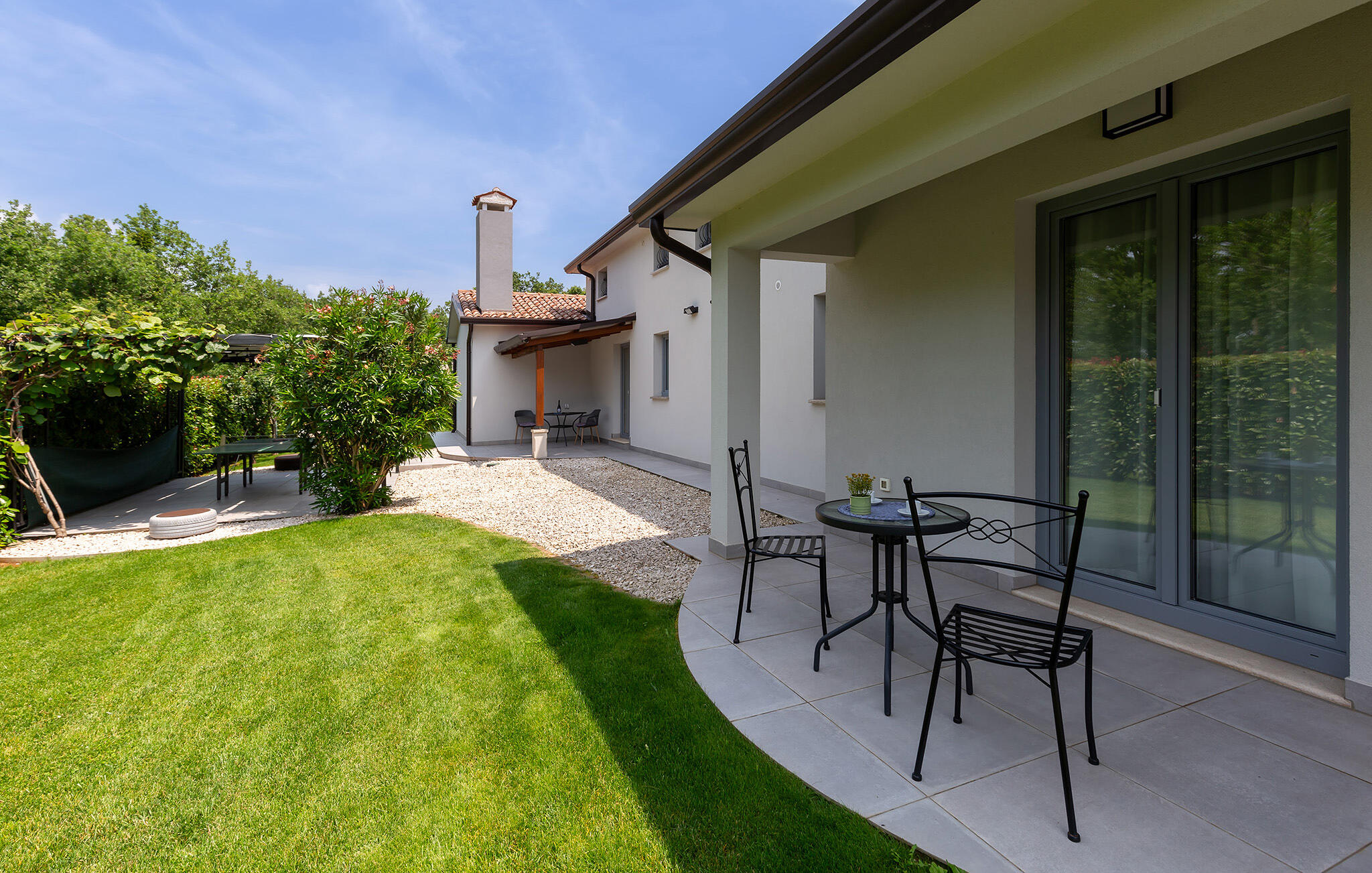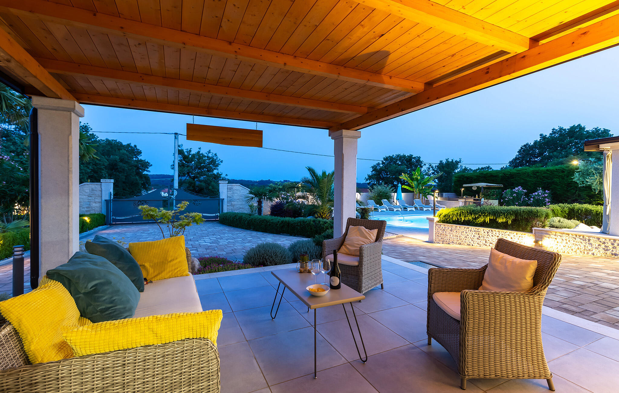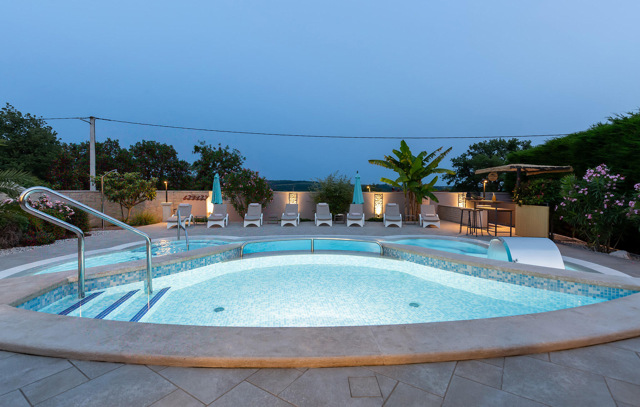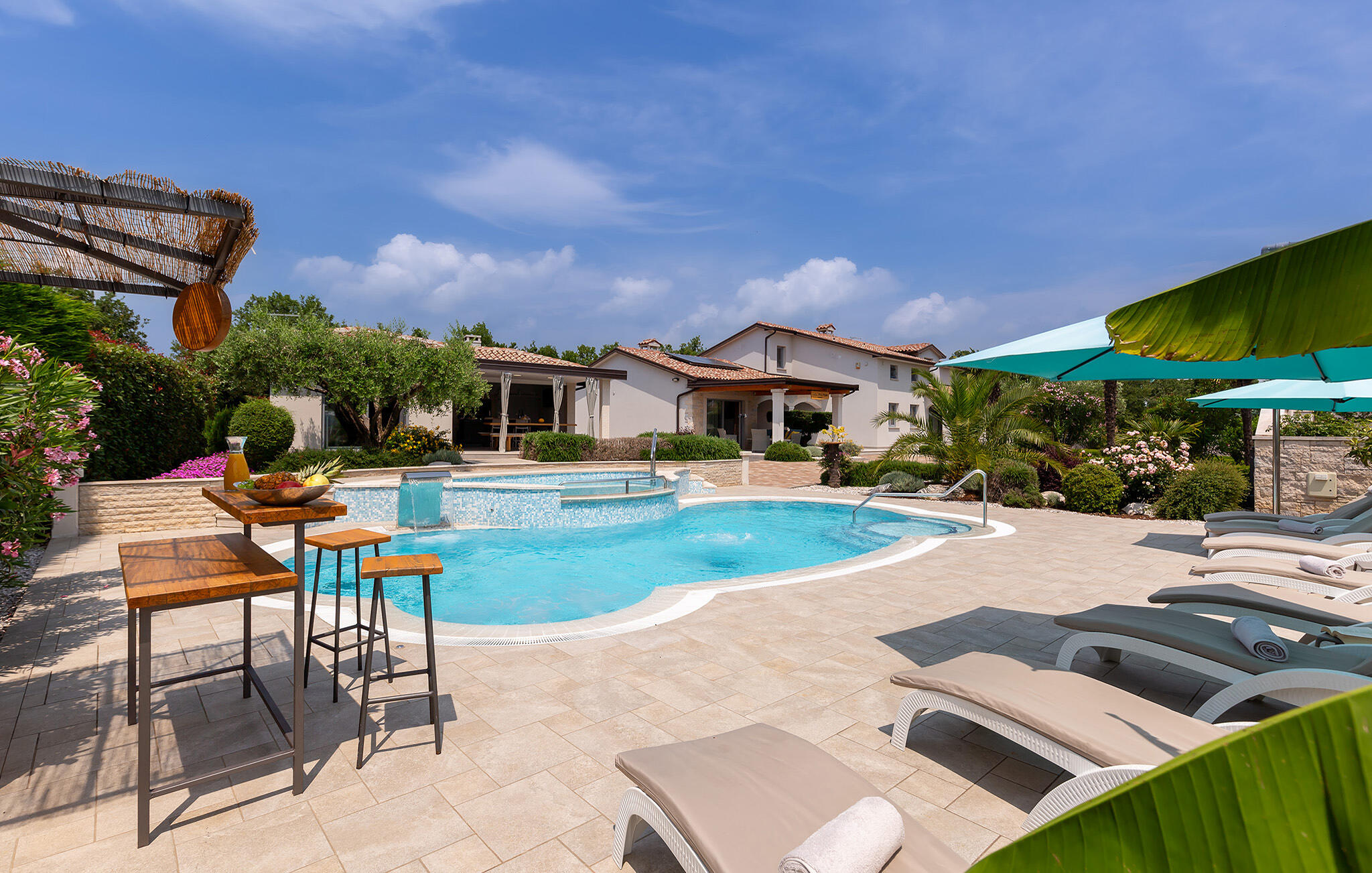 Buiten kun je genieten van de zon in de grote, zorgvuldig onderhouden tuin bij het uitnodigende zwembad, dat ook een ontspannend watervalgordijn heeft. In de zomerkeuken kun je al fresco eten terwijl je geniet van de rust en stilte van het dorp.De prachtige Villa Filton ligt in het dorp Markovici, niet ver van de stad Vizinada. Vizinada is ook te voet of met de fiets te bereiken via de Parenzana, waarschijnlijk de mooiste fietsroute van Istrië. Je zult Vizinada nauwelijks tegenkomen in de reisboeken, dus zorg ervoor dat je het zelf ontdekt. Tussen de heuvel waarop Vizinada ligt en de bergen op de achtergrond ligt het oude middeleeuwse stadje Motovun, waarvan het uiterlijk in 500 jaar nauwelijks is veranderd. De stad is natuurlijk gebleven, niet zorgvuldig overgeschilderd om er nieuw uit te zien. Wanneer je dit stadje bezoekt, geniet je van het prachtige uitzicht vanaf de heuvel over de vallei Mirna en de blauwe en groene kleuren van Istrië. De adembenemende kust van Istrië en de toeristische centra van Porec, Novigrad en Rovinj zijn gemakkelijk te bereiken. In de buurt van de villa kun je je golfvaardigheden testen: een oefenbaan met 5 holes ligt in de vallei, terwijl een 5-sterrenbaan met 18 holes in Savudrija ligt. Een auto is aanbevolen.