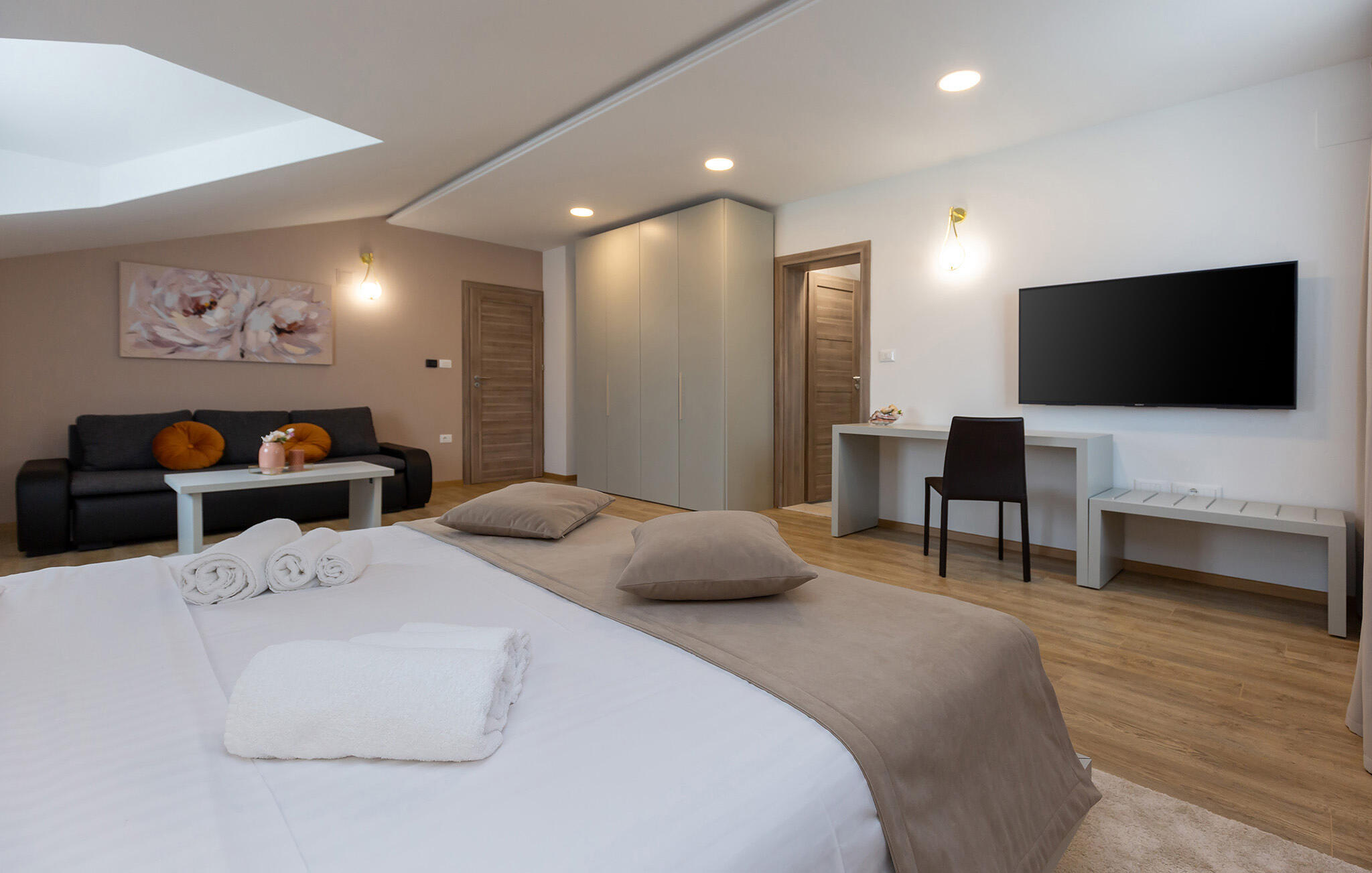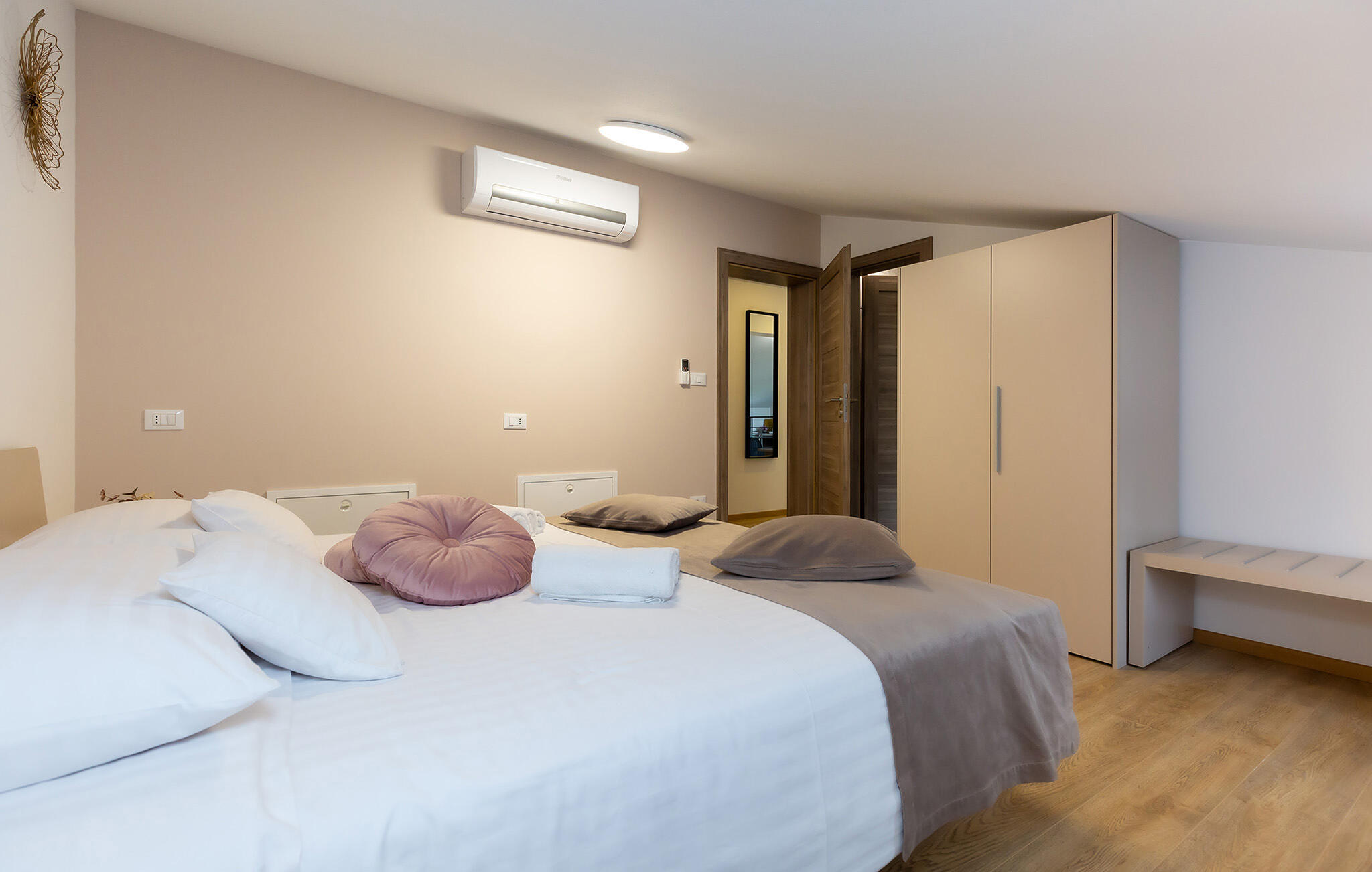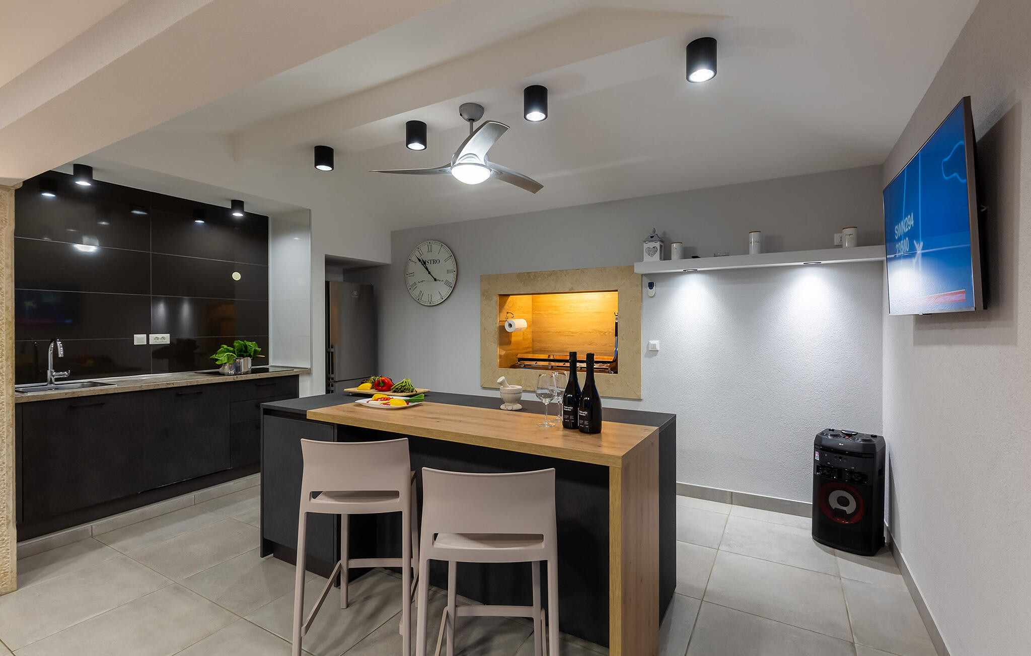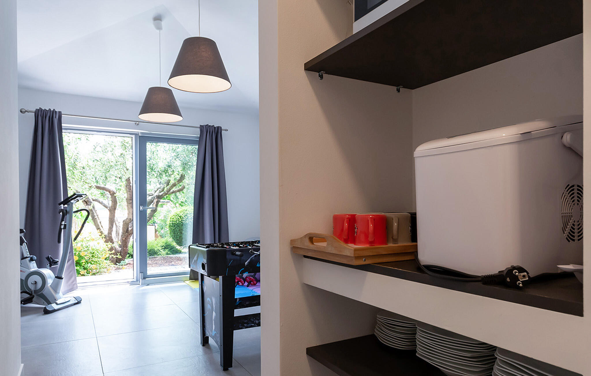 Buiten kun je genieten van de zon in de grote, zorgvuldig onderhouden tuin bij het uitnodigende zwembad, dat ook een ontspannend watervalgordijn heeft. In de zomerkeuken kun je al fresco eten terwijl je geniet van de rust en stilte van het dorp.De prachtige Villa Filton ligt in het dorp Markovici, niet ver van de stad Vizinada. Vizinada is ook te voet of met de fiets te bereiken via de Parenzana, waarschijnlijk de mooiste fietsroute van Istrië. Je zult Vizinada nauwelijks tegenkomen in de reisboeken, dus zorg ervoor dat je het zelf ontdekt. Tussen de heuvel waarop Vizinada ligt en de bergen op de achtergrond ligt het oude middeleeuwse stadje Motovun, waarvan het uiterlijk in 500 jaar nauwelijks is veranderd. De stad is natuurlijk gebleven, niet zorgvuldig overgeschilderd om er nieuw uit te zien. Wanneer je dit stadje bezoekt, geniet je van het prachtige uitzicht vanaf de heuvel over de vallei Mirna en de blauwe en groene kleuren van Istrië. De adembenemende kust van Istrië en de toeristische centra van Porec, Novigrad en Rovinj zijn gemakkelijk te bereiken. In de buurt van de villa kun je je golfvaardigheden testen: een oefenbaan met 5 holes ligt in de vallei, terwijl een 5-sterrenbaan met 18 holes in Savudrija ligt. Een auto is aanbevolen.