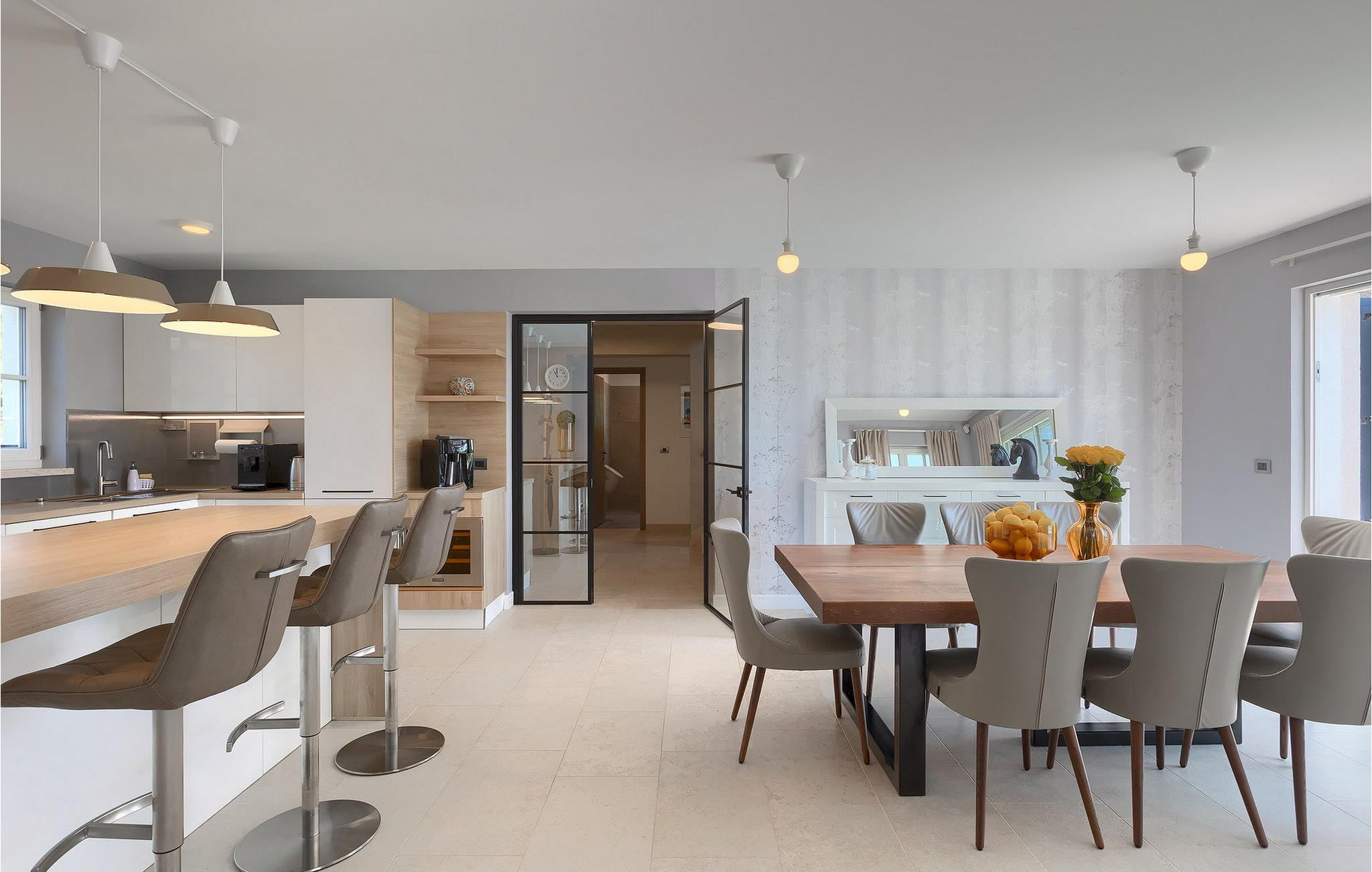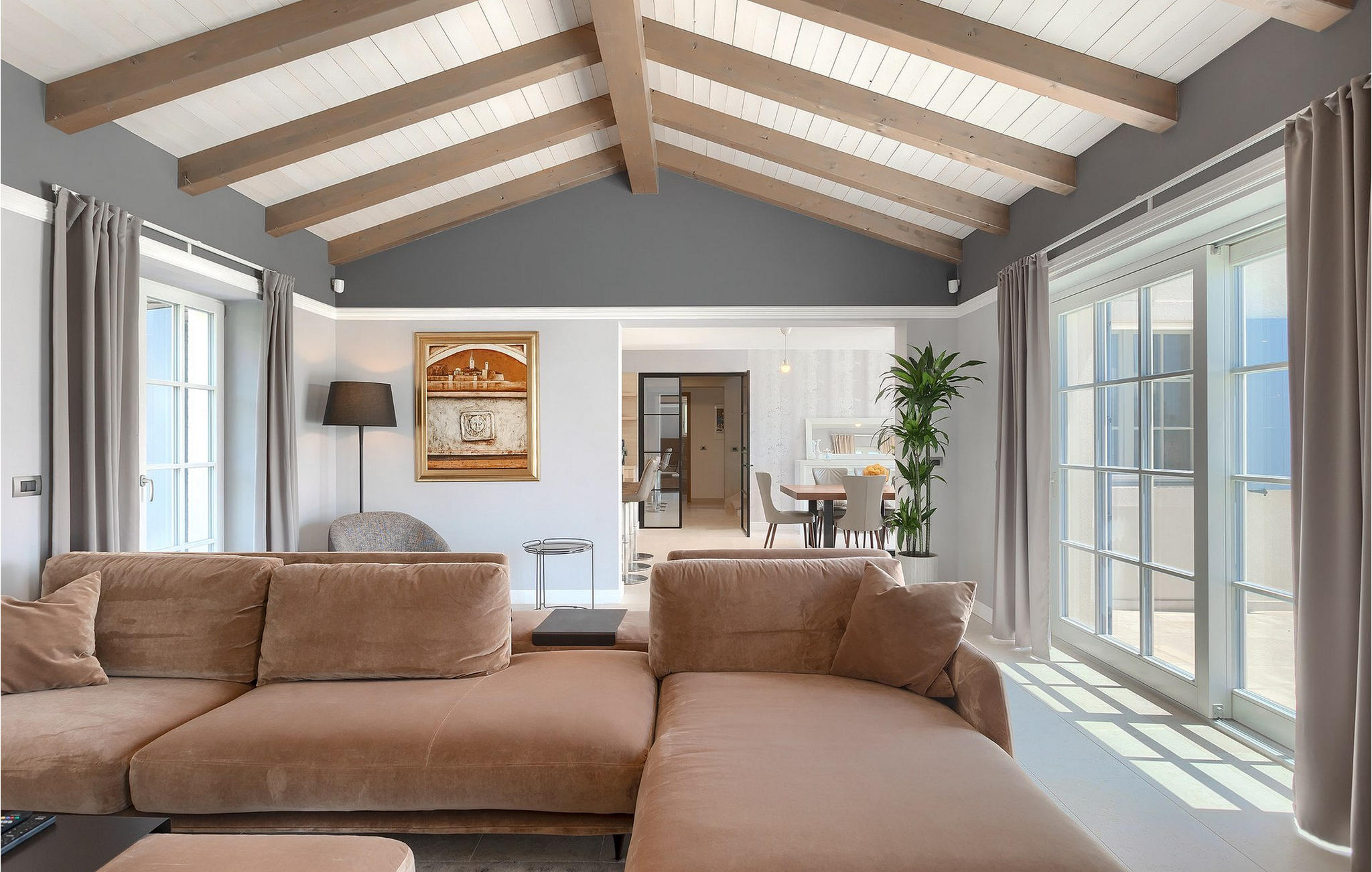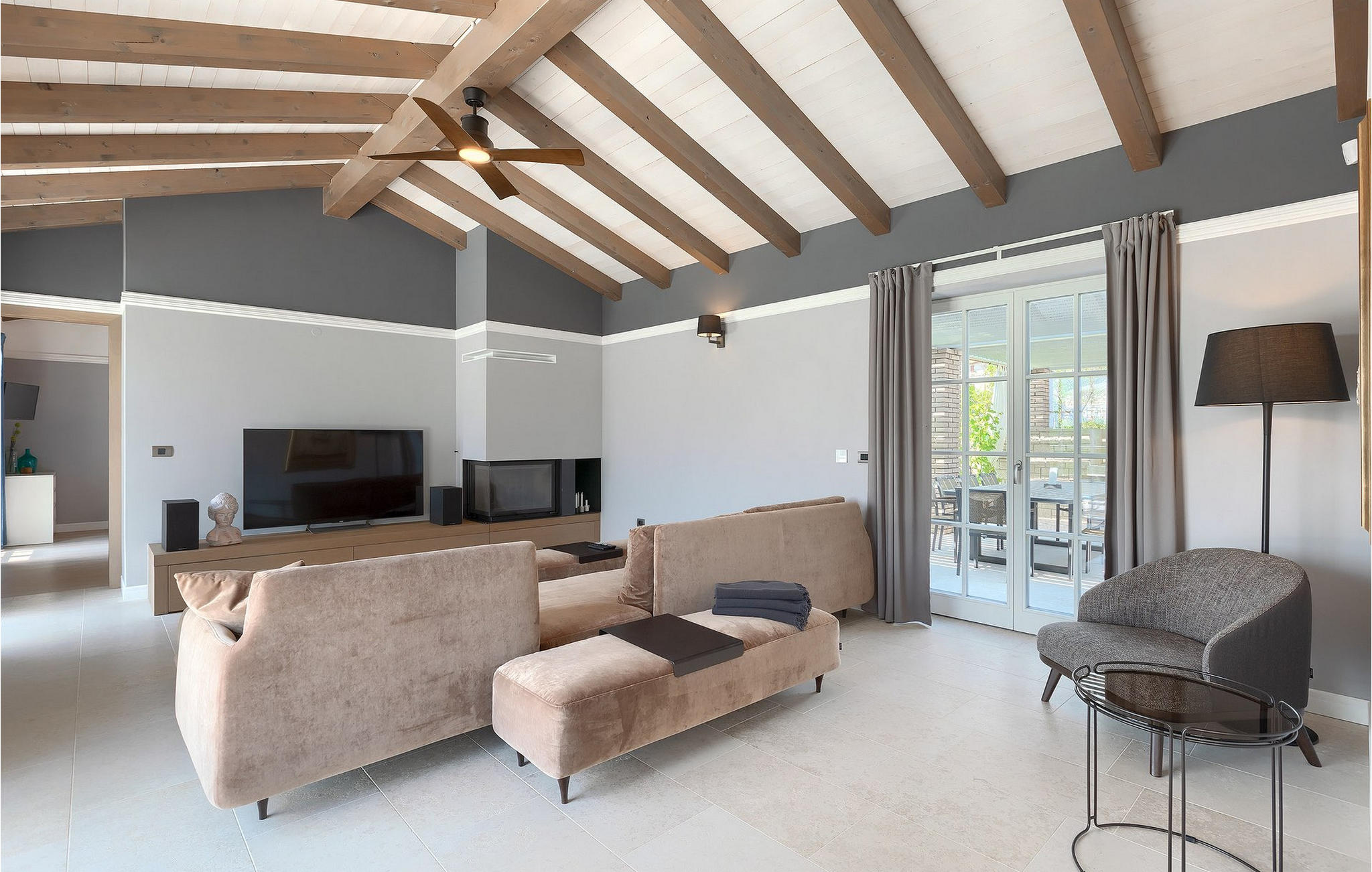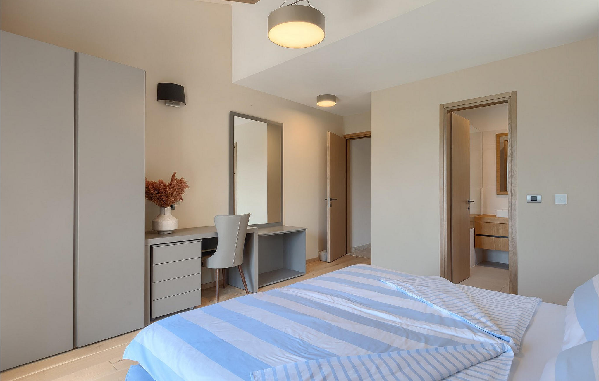 De eerste verdieping heeft 2 slaapkamers, beide met een elegante eigen badkamer geïntegreerd in de ruimte. Alle slaapkamers zijn zeer elegant ingericht met stijlvolle zorgvuldig geselecteerde details in harmonieuze kleurtonen. De houten balken aan de muren voegen een vleugje rustiek toe aan de moderne flair van het prachtige interieur van Villa Carinzia, zodat u het gevoel krijgt dat uw droomvakantie in Istrië meteen goed begint!