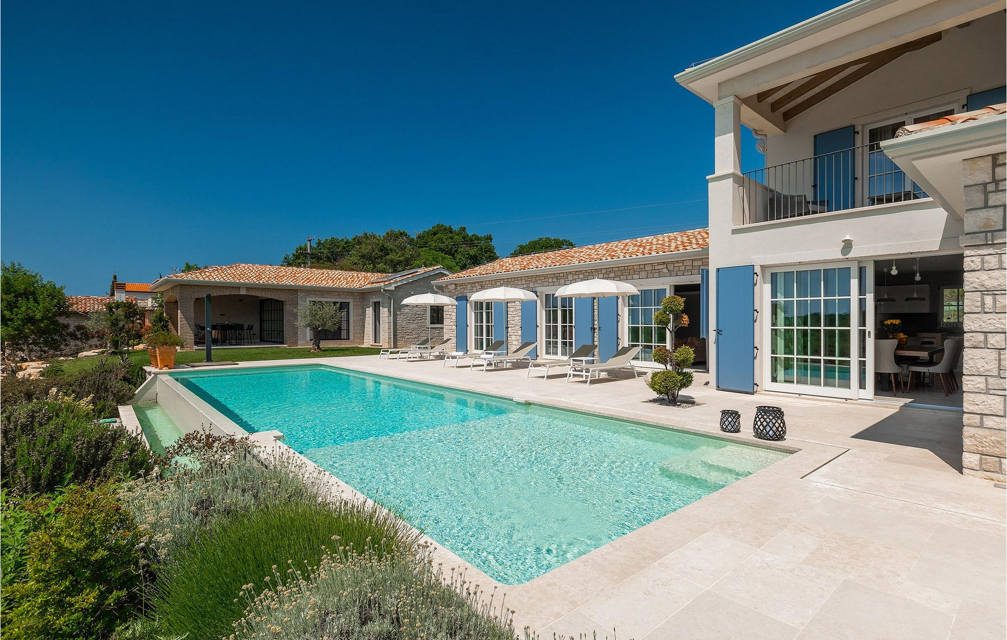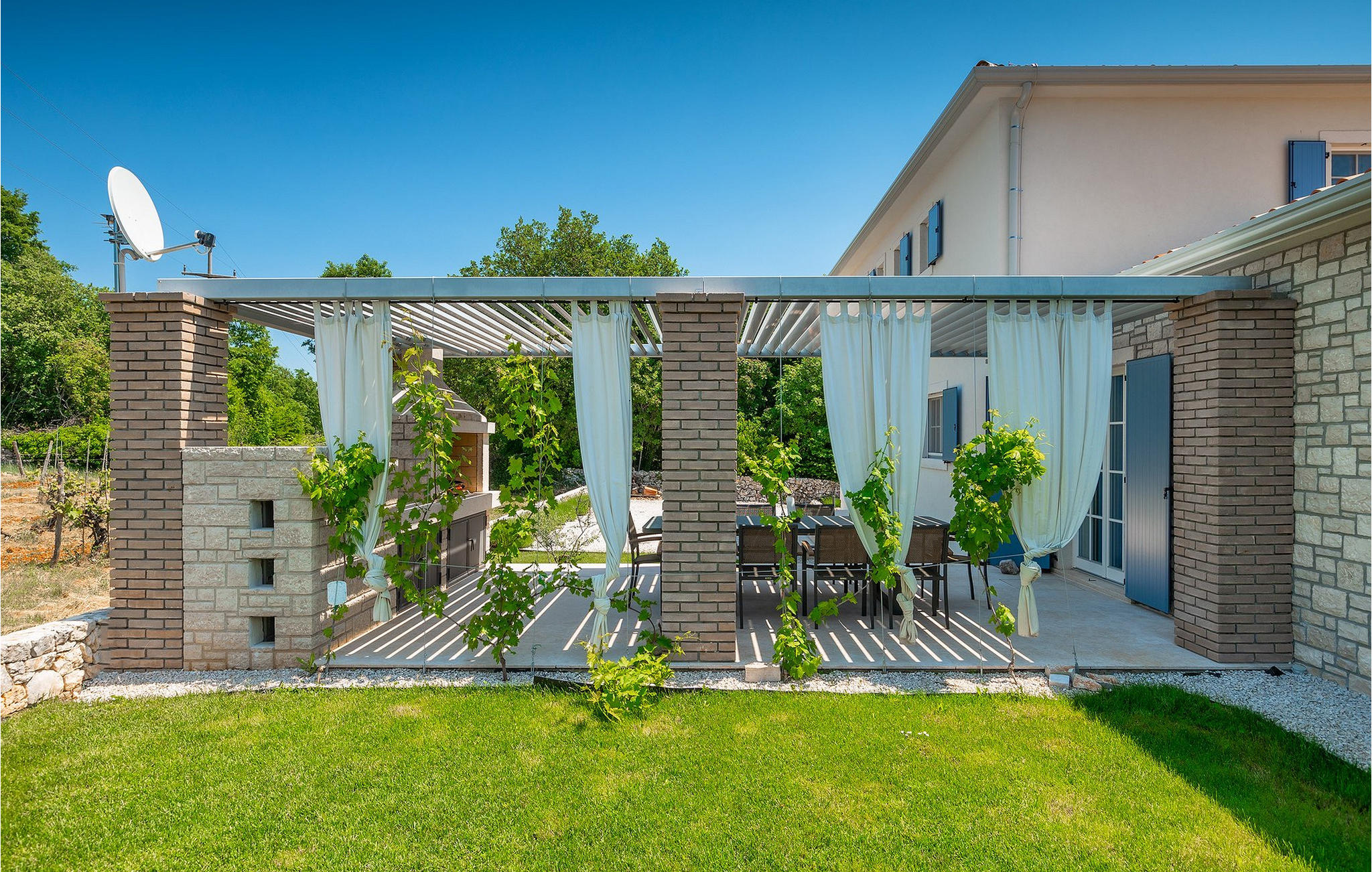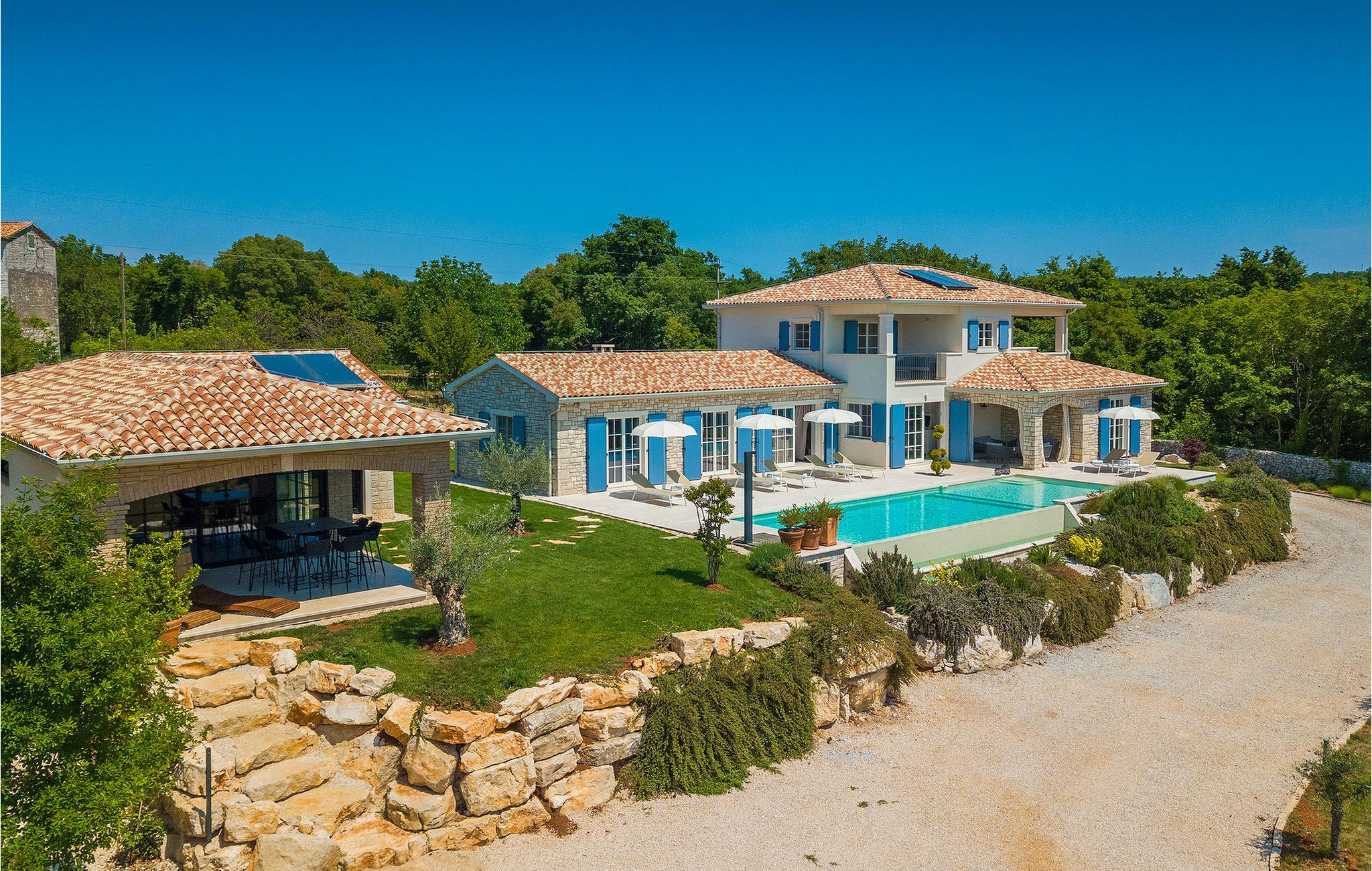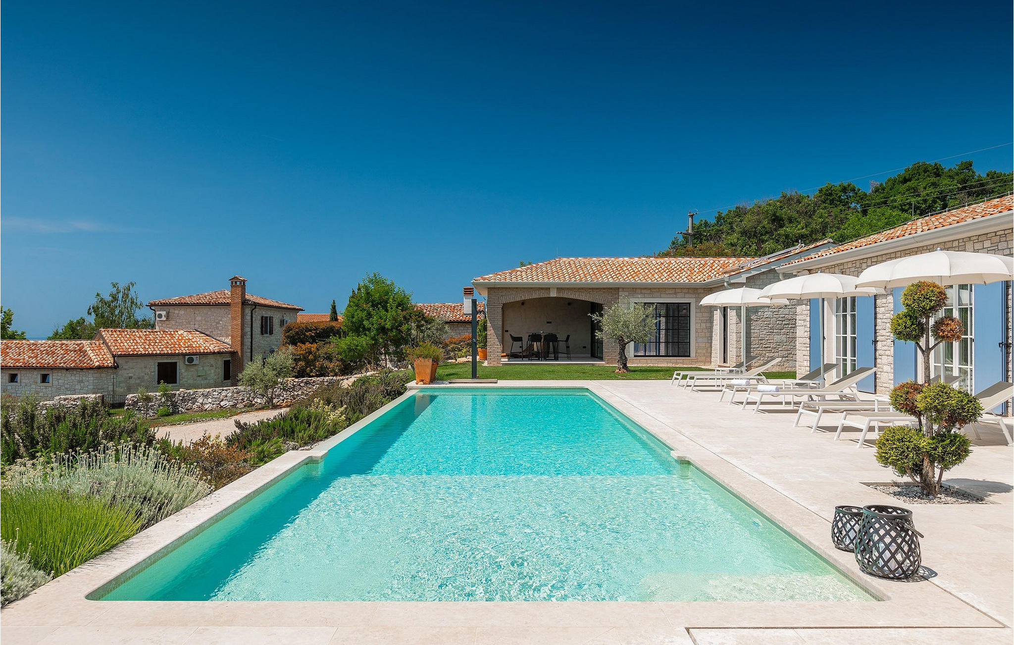 Ben je op zoek naar een ruime villa met een prachtige tuin, privézwembad en een heerlijk interieur dicht bij toeristische steden? Met zijn mooie stenen gevel en blauwe luiken in mediterrane stijl ziet deze prachtige villa er ook van buiten uitnodigend uit. In het midden van de grote tuin ligt een uitnodigend, groot privézwembad met talloze ligstoelen en voldoende parasols voor wie liever in de schaduw blijft. Het zwembad strekt zich uit zodat je kunt genieten van het prachtige, groene panorama van het Istrische achterland terwijl je ontspant op een ligstoel in de middaghitte. In de goed onderhouden tuin vind je ook een barbecue en een overdekte eethoek met genoeg ruimte voor gemeenschappelijke diners.