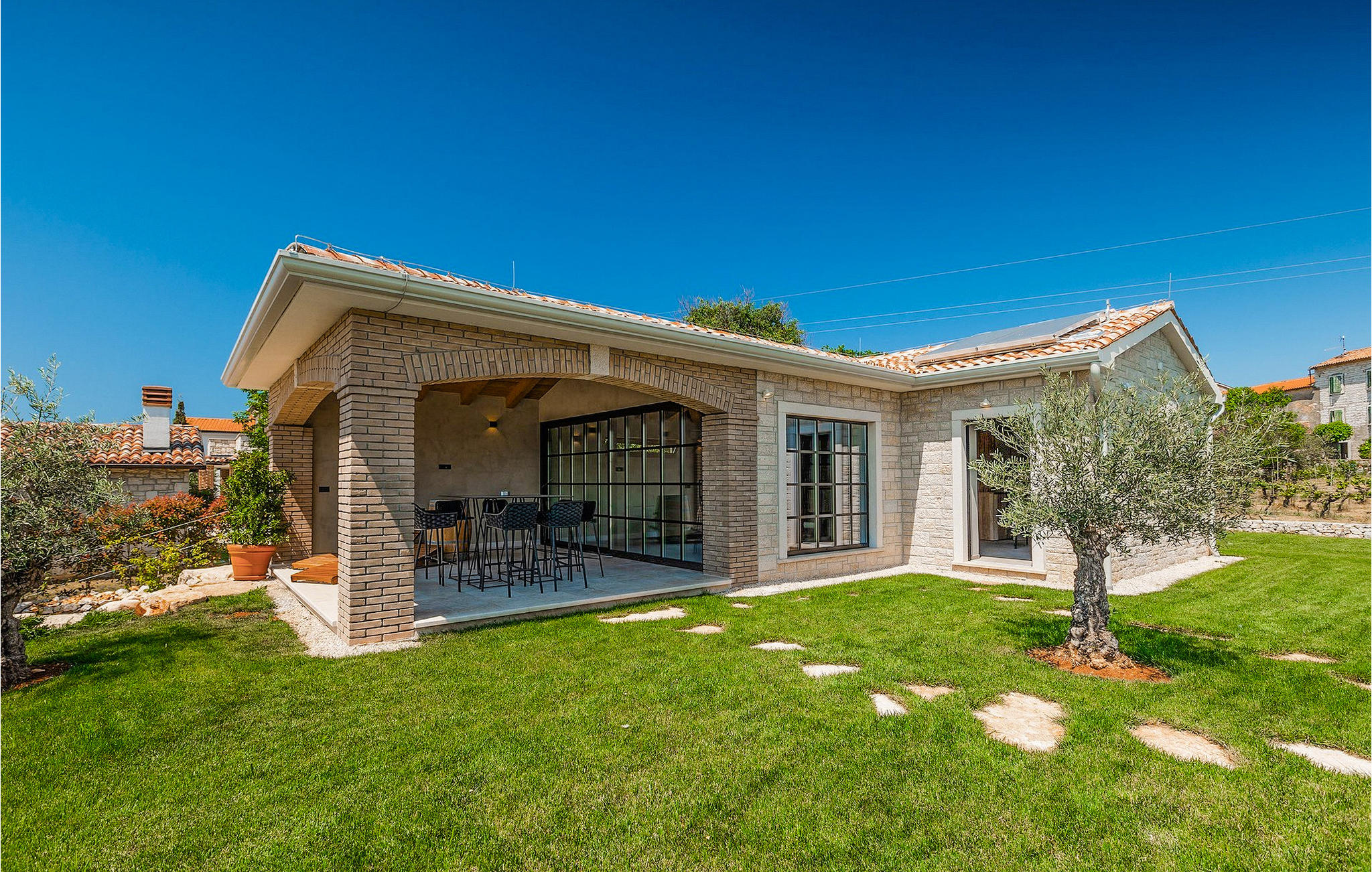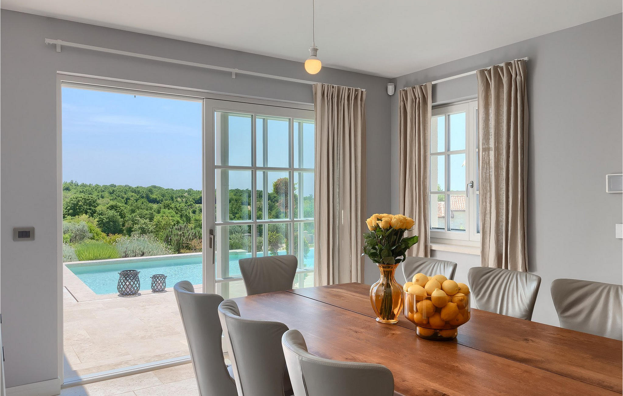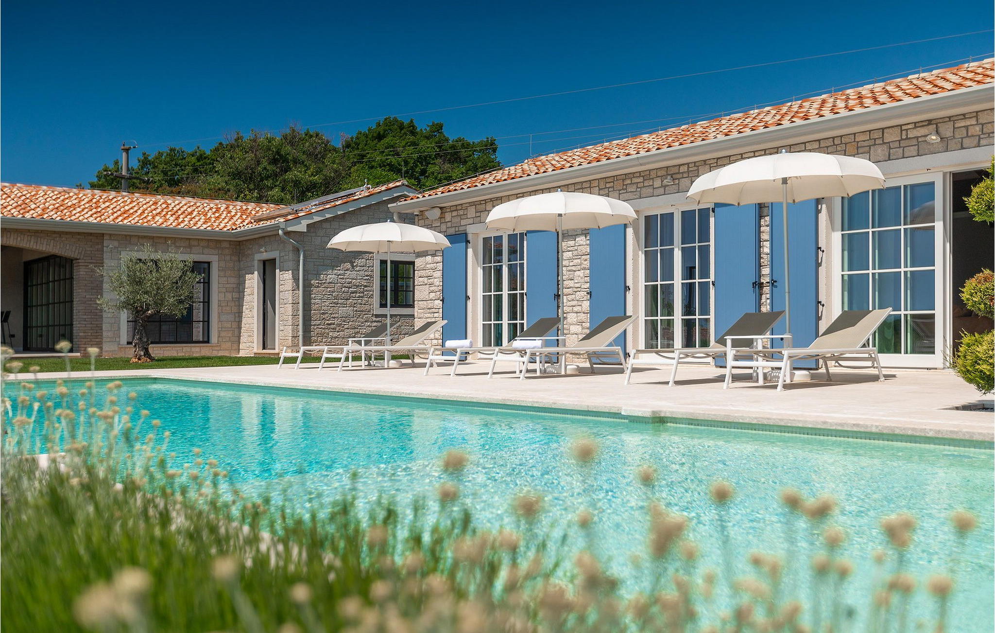 Ben je op zoek naar een ruime villa met een prachtige tuin, privézwembad en een heerlijk interieur dicht bij toeristische steden? Met zijn mooie stenen gevel en blauwe luiken in mediterrane stijl ziet deze prachtige villa er ook van buiten uitnodigend uit. In het midden van de grote tuin ligt een uitnodigend, groot privézwembad met talloze ligstoelen en voldoende parasols voor wie liever in de schaduw blijft. Het zwembad strekt zich uit zodat je kunt genieten van het prachtige, groene panorama van het Istrische achterland terwijl je ontspant op een ligstoel in de middaghitte. In de goed onderhouden tuin vind je ook een barbecue en een overdekte eethoek met genoeg ruimte voor gemeenschappelijke diners.