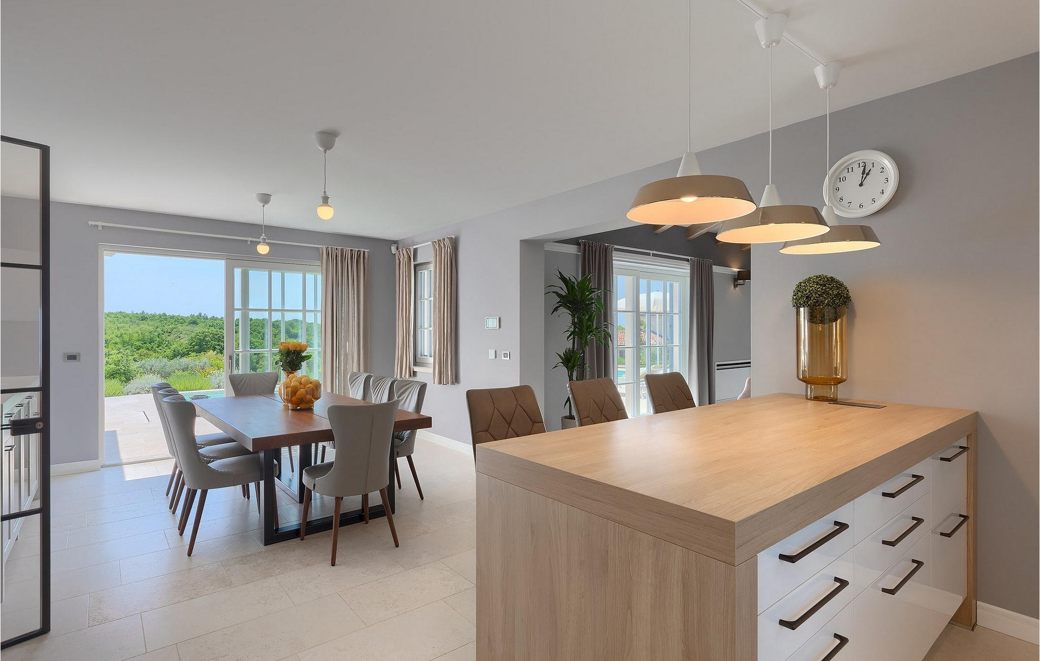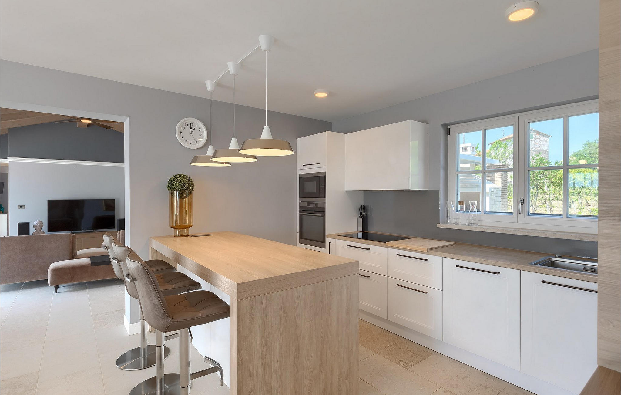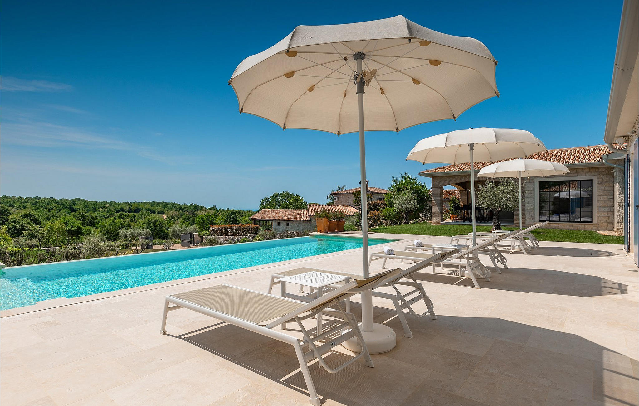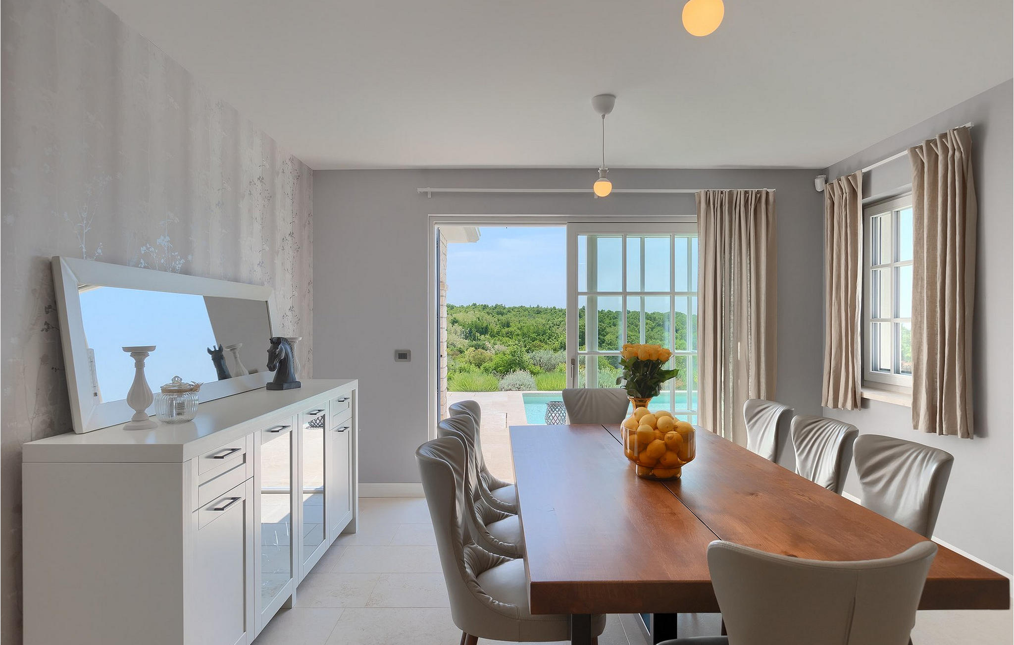 Ben je op zoek naar een ruime villa met een prachtige tuin, privézwembad en een heerlijk interieur dicht bij toeristische steden? Met zijn mooie stenen gevel en blauwe luiken in mediterrane stijl ziet deze prachtige villa er ook van buiten uitnodigend uit. In het midden van de grote tuin ligt een uitnodigend, groot privézwembad met talloze ligstoelen en voldoende parasols voor wie liever in de schaduw blijft. Het zwembad strekt zich uit zodat je kunt genieten van het prachtige, groene panorama van het Istrische achterland terwijl je ontspant op een ligstoel in de middaghitte. In de goed onderhouden tuin vind je ook een barbecue en een overdekte eethoek met genoeg ruimte voor gemeenschappelijke diners.