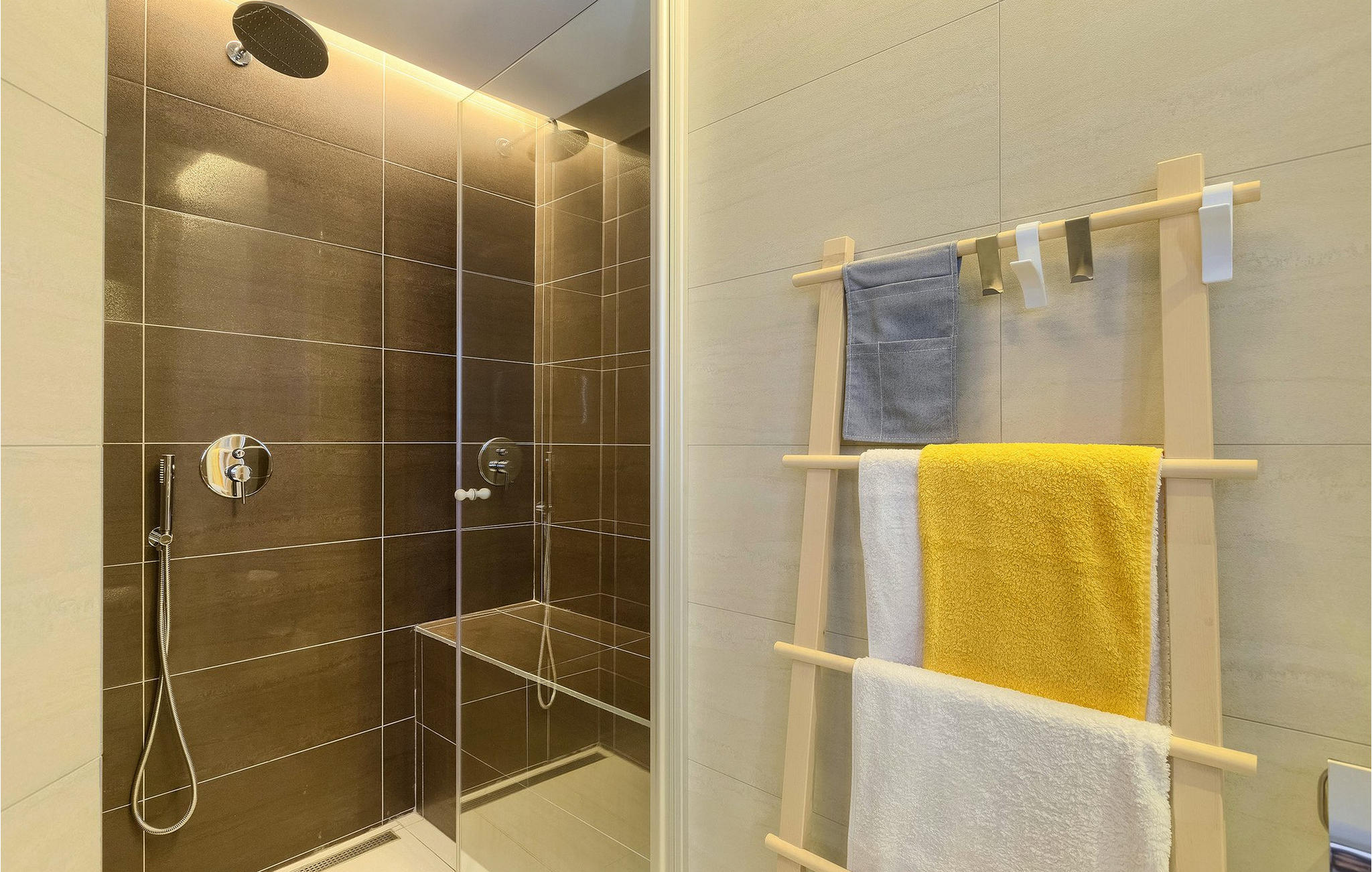 Vanaf de onderste verdieping heb je direct toegang tot de prachtige tuin, die in niveaus is verdeeld en een privézwembad en groot gazon heeft. Naast het zwembad kun je ontspannen op een van de ligstoelen en genieten van het panoramische uitzicht op de zee en de omliggende eilanden, of tijd doorbrengen met je vrienden in de buitenruimte.