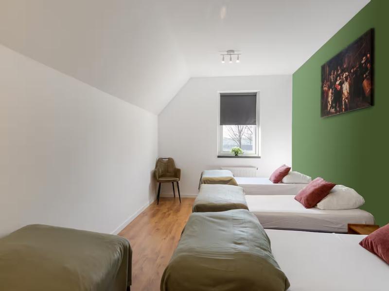 Op de 1e etage: slaapkamer met 4x 1-pers. bed , slaapkamer met 1-pers. bed, 2x 1-pers. bed , slaapkamer met 2x 1-pers. bed, 1-pers. bed , slaapkamer met 2x 1-pers. bed , slaapkamer met 4x 1-pers. bed , badkamer met 2x douche, wastafel, wc , toilet met wc , overloop