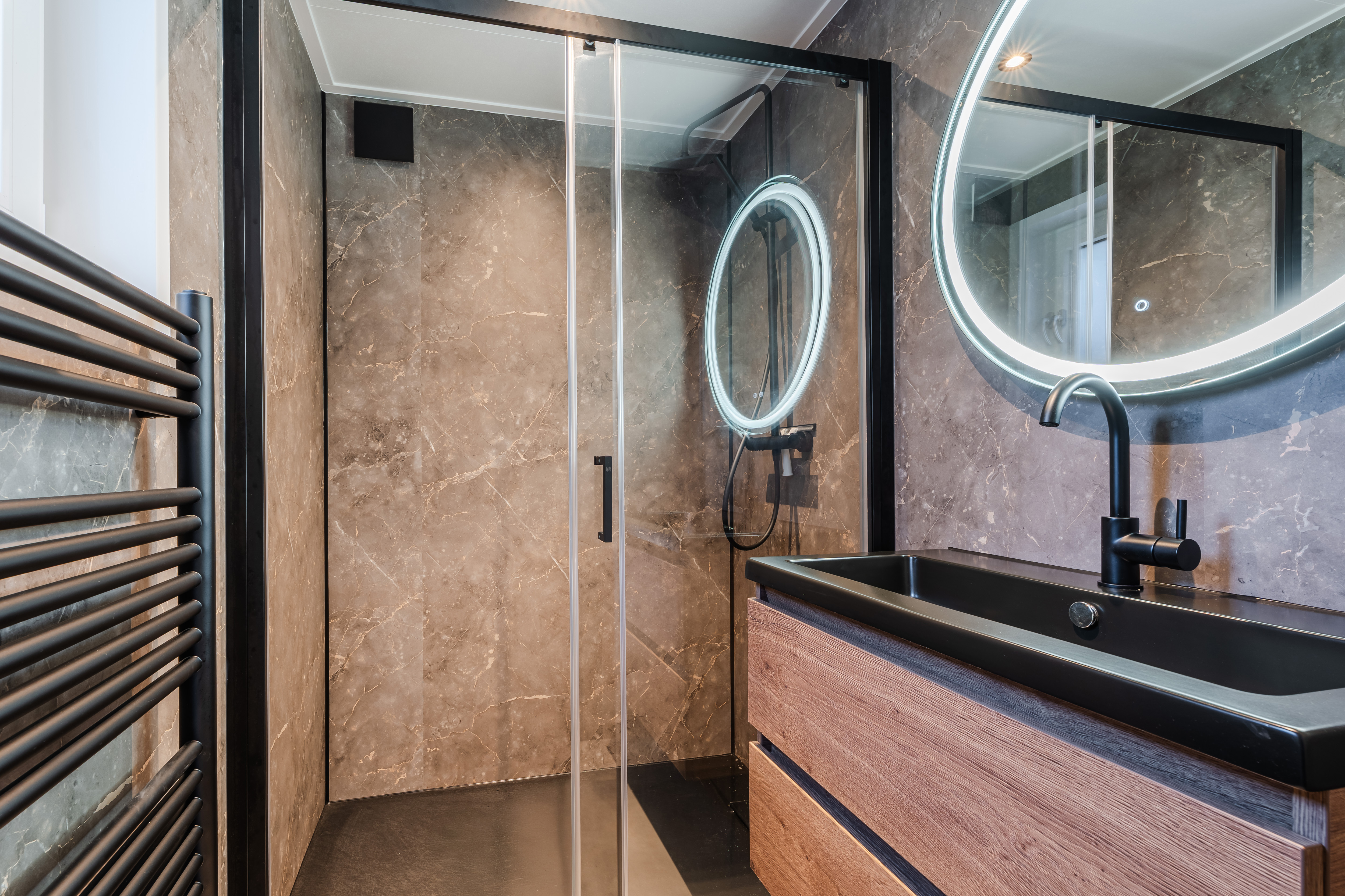 • Moderne, ruime badkamer met inloopdouche en wastafel
