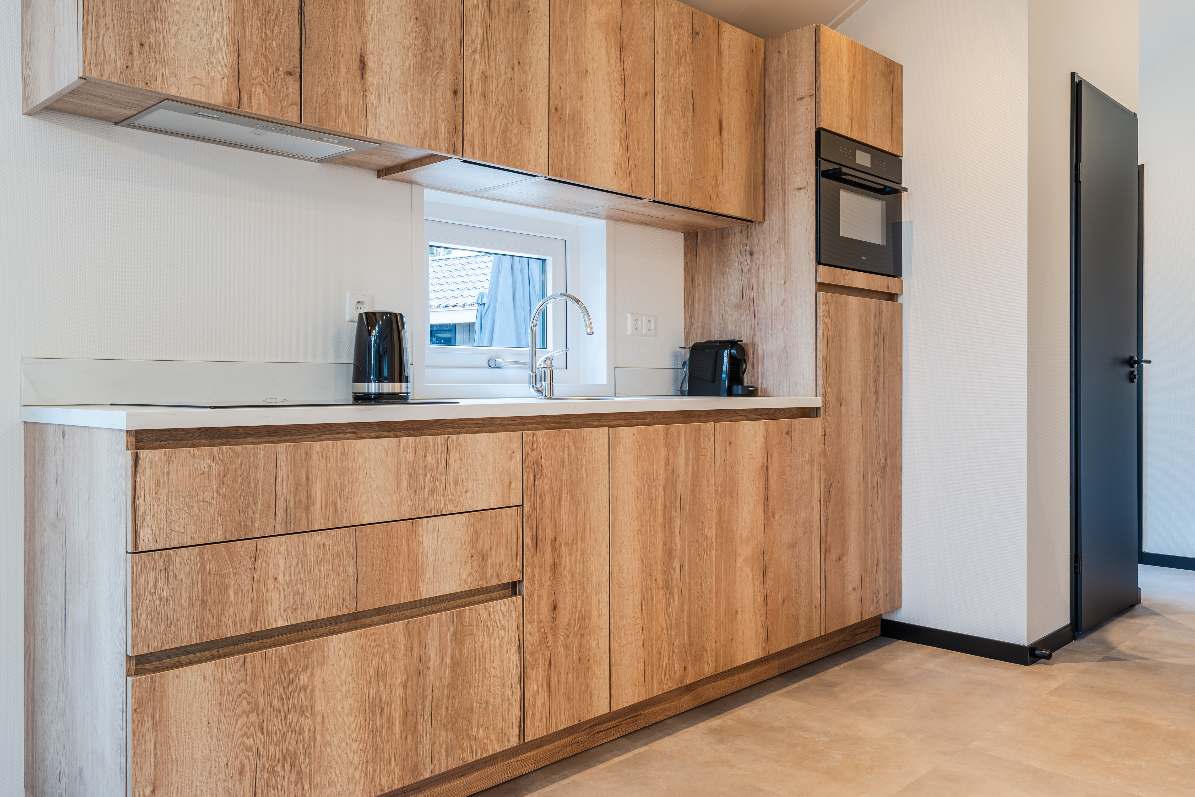 De lichte woonruimte voelt uitnodigend en straalt rust en comfort uit, met openslaande deuren die direct toegang bieden tot het terras. De moderne keuken is van alle gemakken voorzien en ideaal voor het bereiden van heerlijke maaltijden. Gelegen aan de bosrand beschikt de woning over een comfortabele ligbank en een ruime eettafel, perfect voor gezellige spelletjesavonden of lange, ontspannen diners met familie en vrienden.