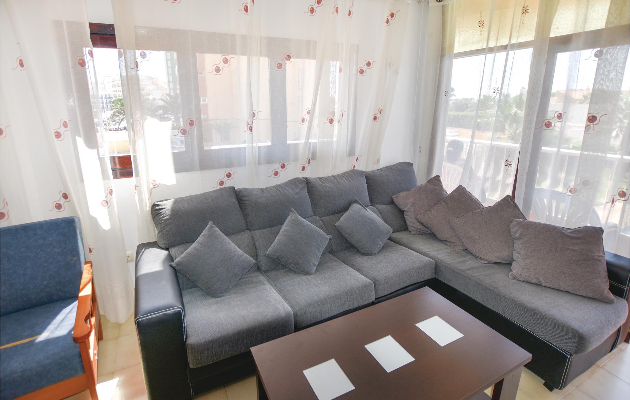 Deze fantastische vakantiewoning biedt twee slaapkamers, een ruime woonkamer, een badkamer en een volledig uitgeruste keuken. U heeft een geweldig uitzicht op de omliggende bergen en het strand ligt op slechts 2 minuten lopen. Het appartementencomplex heeft een groot gemeenschappelijk zwembad en het groene terrein nodigt uit om te blijven hangen. Ook jongere gasten kunnen zich hier vermaken: Naast een kinderspeelplaats biedt de urbanisatie ook een aquarium. Een winkelcentrum, bars en restaurants zijn ook in de buurt.
