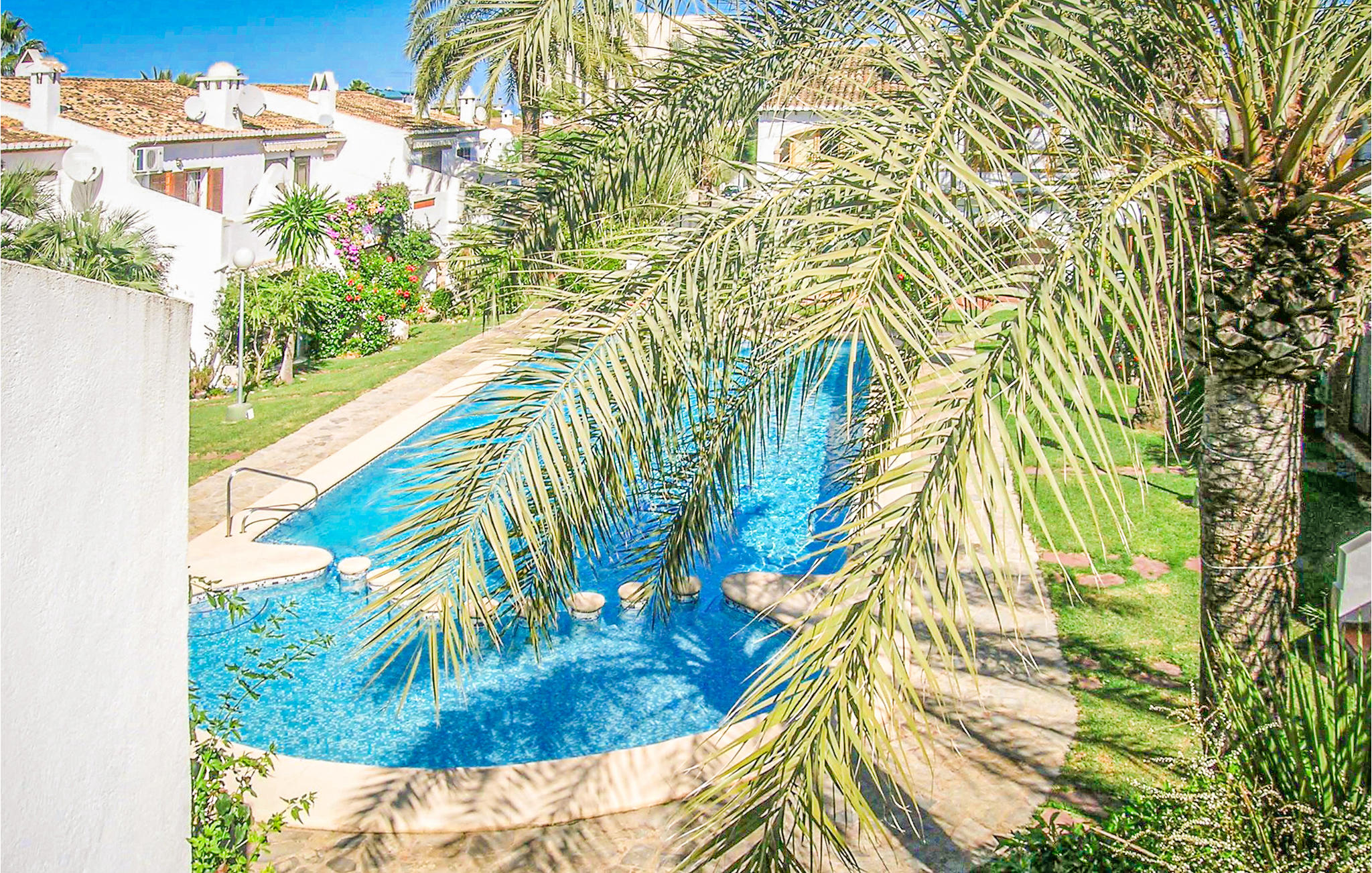 Het gemeenschappelijke zwembad nodigt je uit om `s middags af te koelen. Omringd door palmbomen en groene zones is het de ideale plek om te ontspannen. Geniet van de vredige sfeer en de mediterrane levensvreugde.