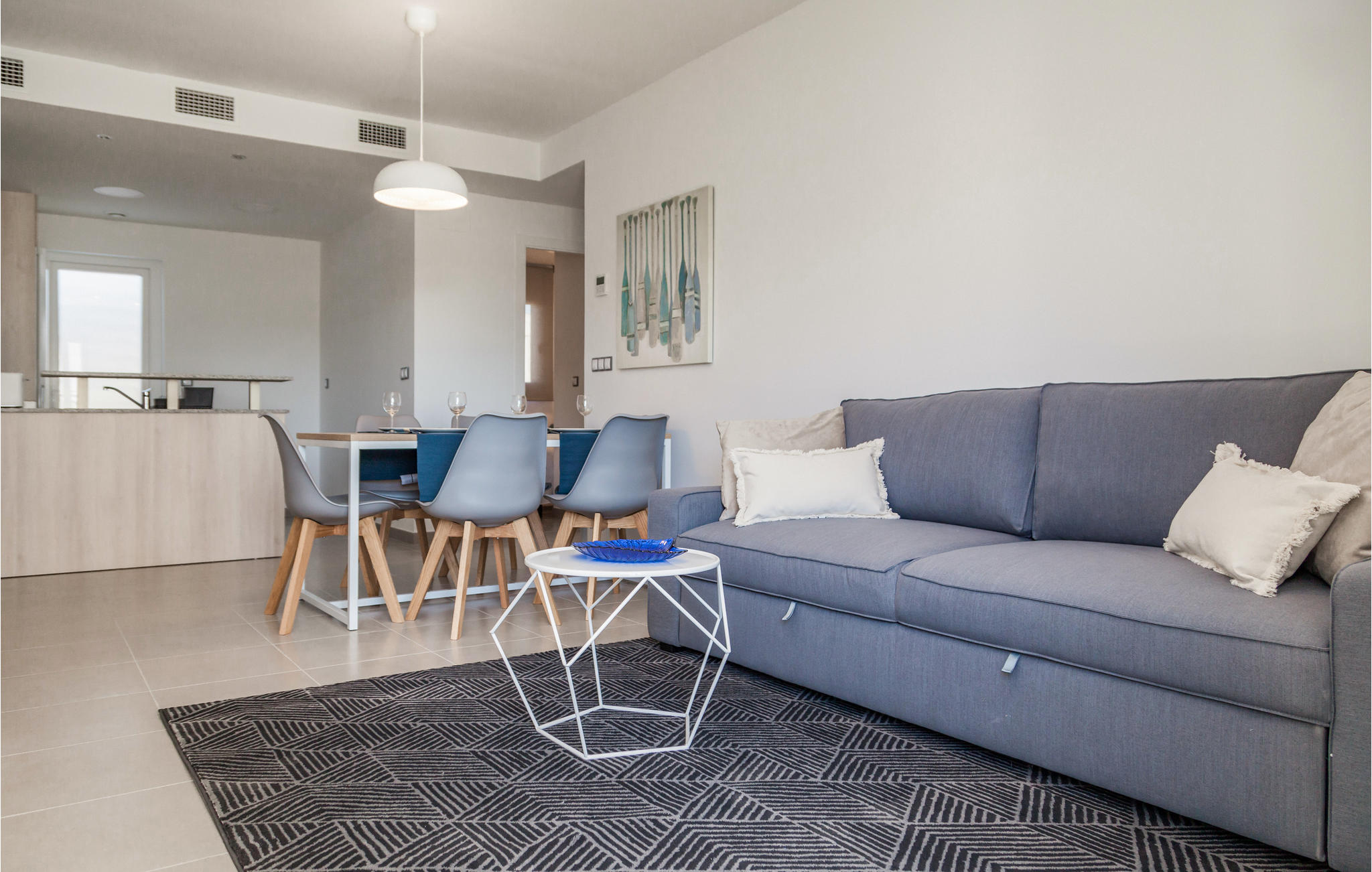 De flat heeft een grote woonkamer met Wi-Fi, een volledig uitgeruste keuken, een badkamer en twee slaapkamers. Vanuit de woonkamer heeft u toegang tot een groot terras met kwaliteitsmeubilair waar kinderen zich kunnen vermaken en ouders kunnen ontspannen en genieten van de rust. Het ligt zeer dicht bij de luchthaven en de stad Alicante, een plaats die door bezoekers wordt gewaardeerd om zijn grote culturele aanbod zoals theaters, musea, tentoonstellingen en zijn grote vrijetijdsactiviteiten voor kinderen en volwassenen. De stranden met kristalhelder water behoren tot de beroemdste van de Costa Blanca. Hier kunt u verschillende watersporten beoefenen zoals kitesurfen, kajakken, windsurfen en vissen. Op 12 km ligt Elche, een stad met twee werelderfgoederen en het beroemde palmbos. Als u zich in Alicante verdiept, zult u versteld staan van de fantastische natuur en kunt u enkele bezienswaardigheden bezoeken zoals de bronnen van de Algar.