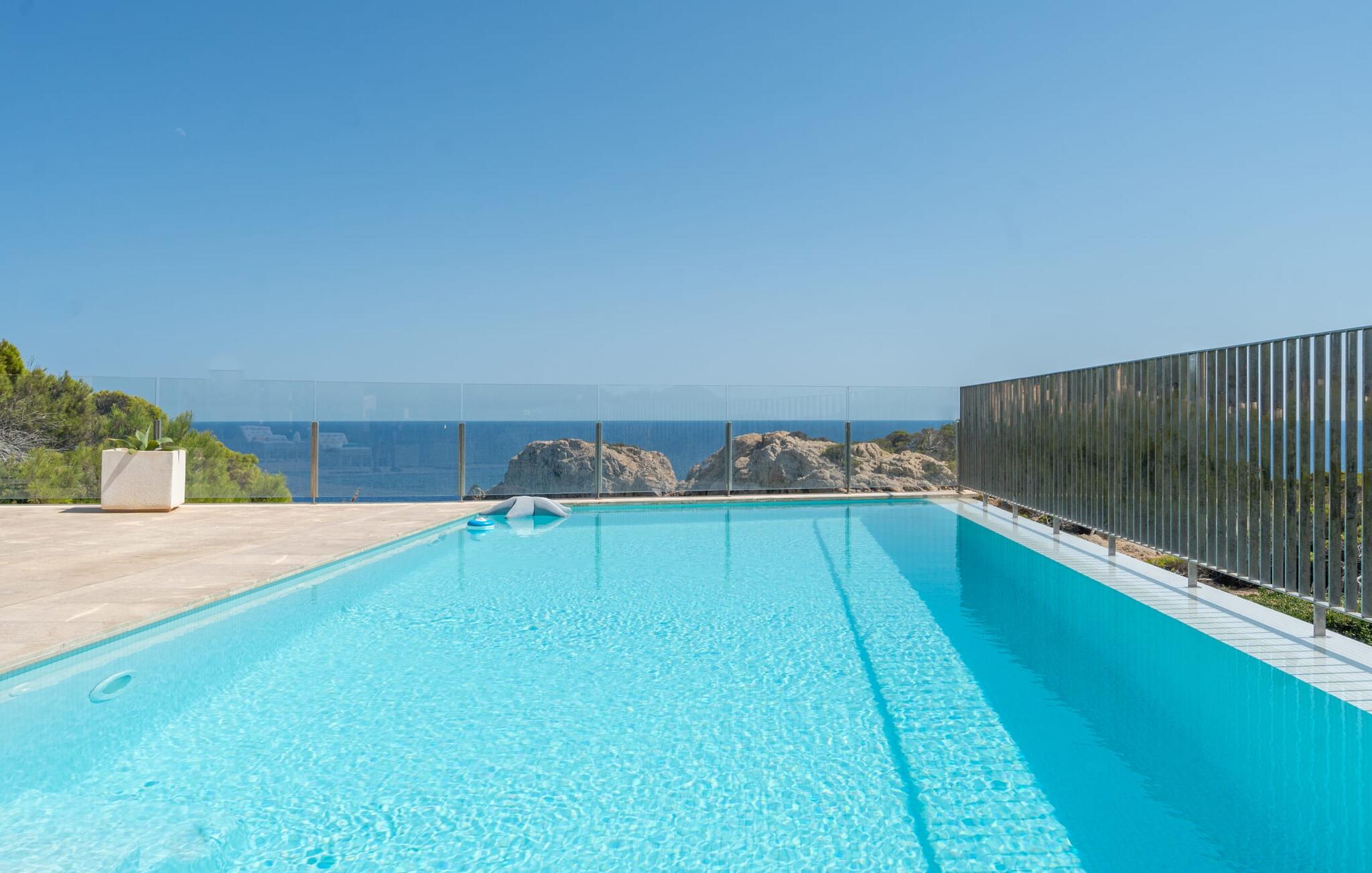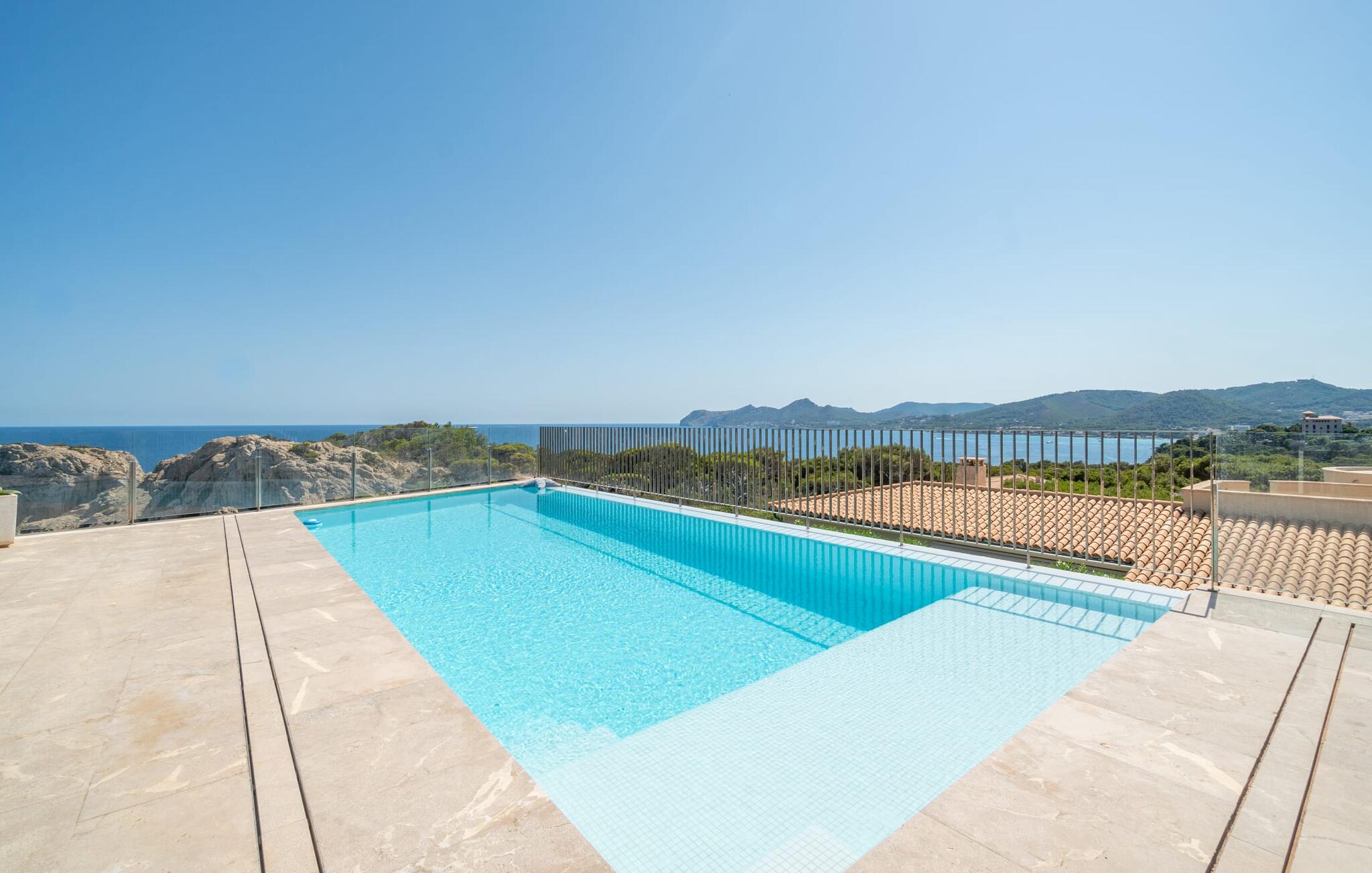 Prachtig uitzicht: Villa Arcadia 50 is gebouwd op een spectaculaire locatie op een heuvel in een exclusieve woonwijk van Cala Ratjada aan de oostkust van Mallorca. Vanuit het huis en het terrein, inclusief het zwembad en het terras, heb je direct uitzicht op de kliffen en de zee. De stad Cala Ratjada is niet ver weg en de dichtstbijzijnde baai, Cala Gat, ligt ook op loopafstand.