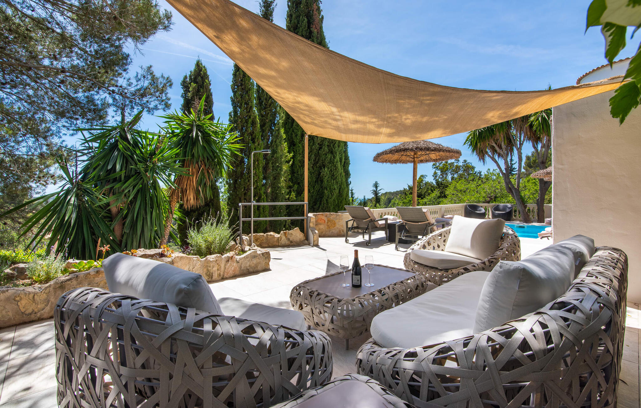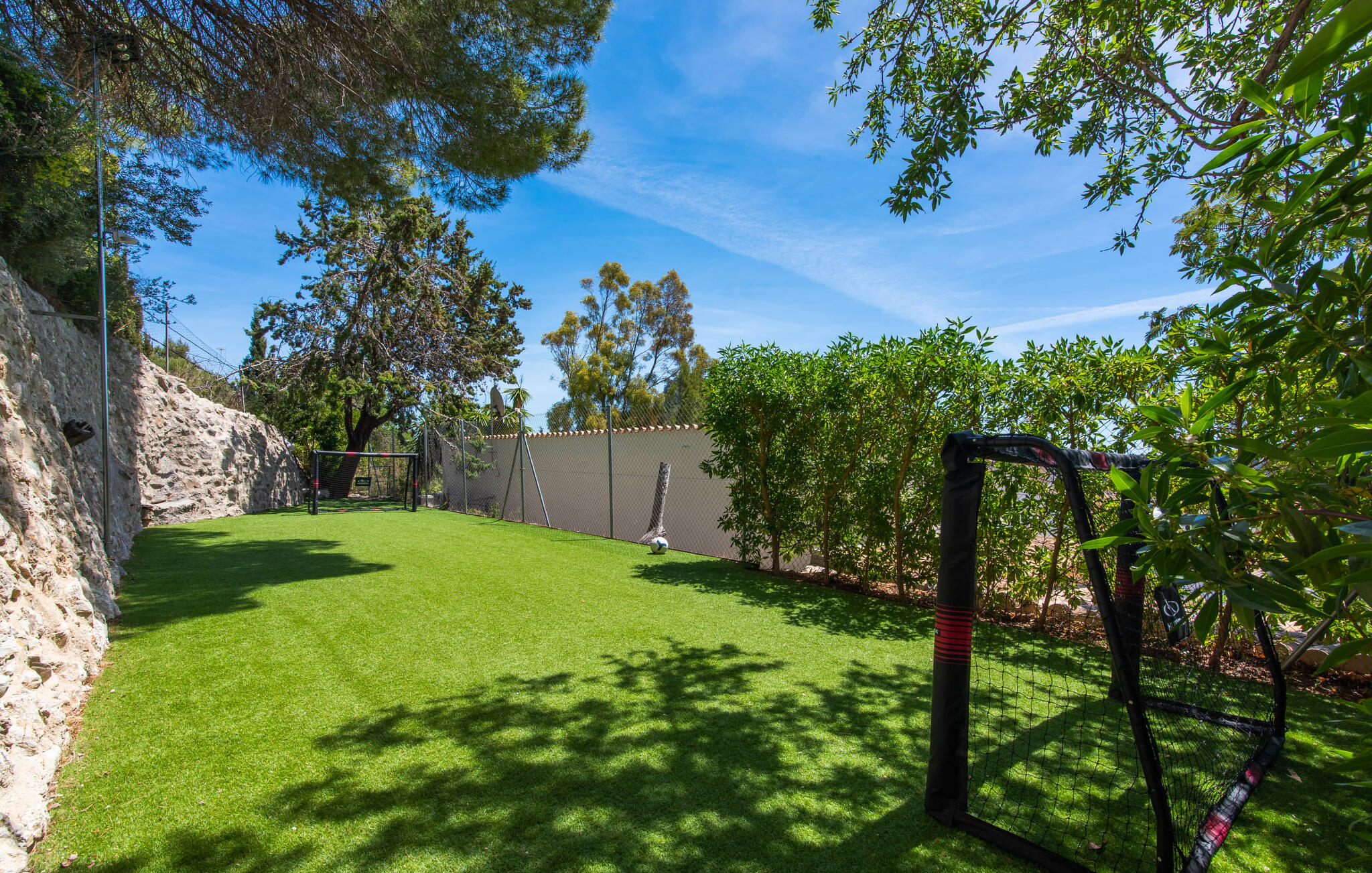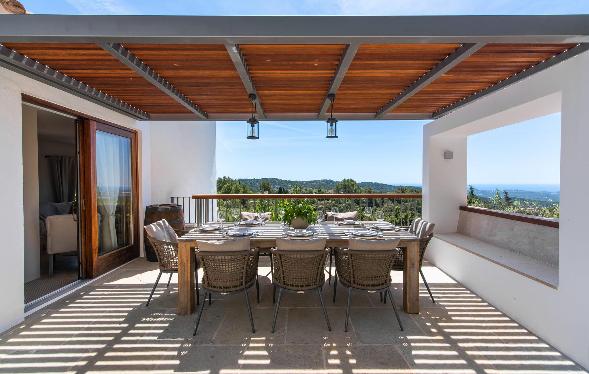 De gezinsvriendelijke Villa Bella Roca ligt op een goed onderhouden heuvelperceel aan de rand van het rustige bergdorp Galilea in het westen van Mallorca. De terrasvormige buitenruimte biedt tal van zit-, zon- en eetgelegenheden in de schaduw en in de zon. Het zwembad en de verschillende gezellige ontspanningsruimtes langs het vakantiehuis op het zuiden bieden sensationele uitzichten over het heuvelachtige landschap tot aan de zee. Er is een barbecueplaats met een gemetselde barbecue en een mobiele gasbarbecue van hoge kwaliteit, een leuke speeltuin en een voetbalveld voor kinderen. De villa is ook ideaal voor actieve vakantiegangers die naar Mallorca komen om te wandelen of te fietsen: er is een sauna en een fitnessruimte en je vakantiehuis wordt omringd door de mooiste wandel- en fietspaden in de Serra de Tramuntana.