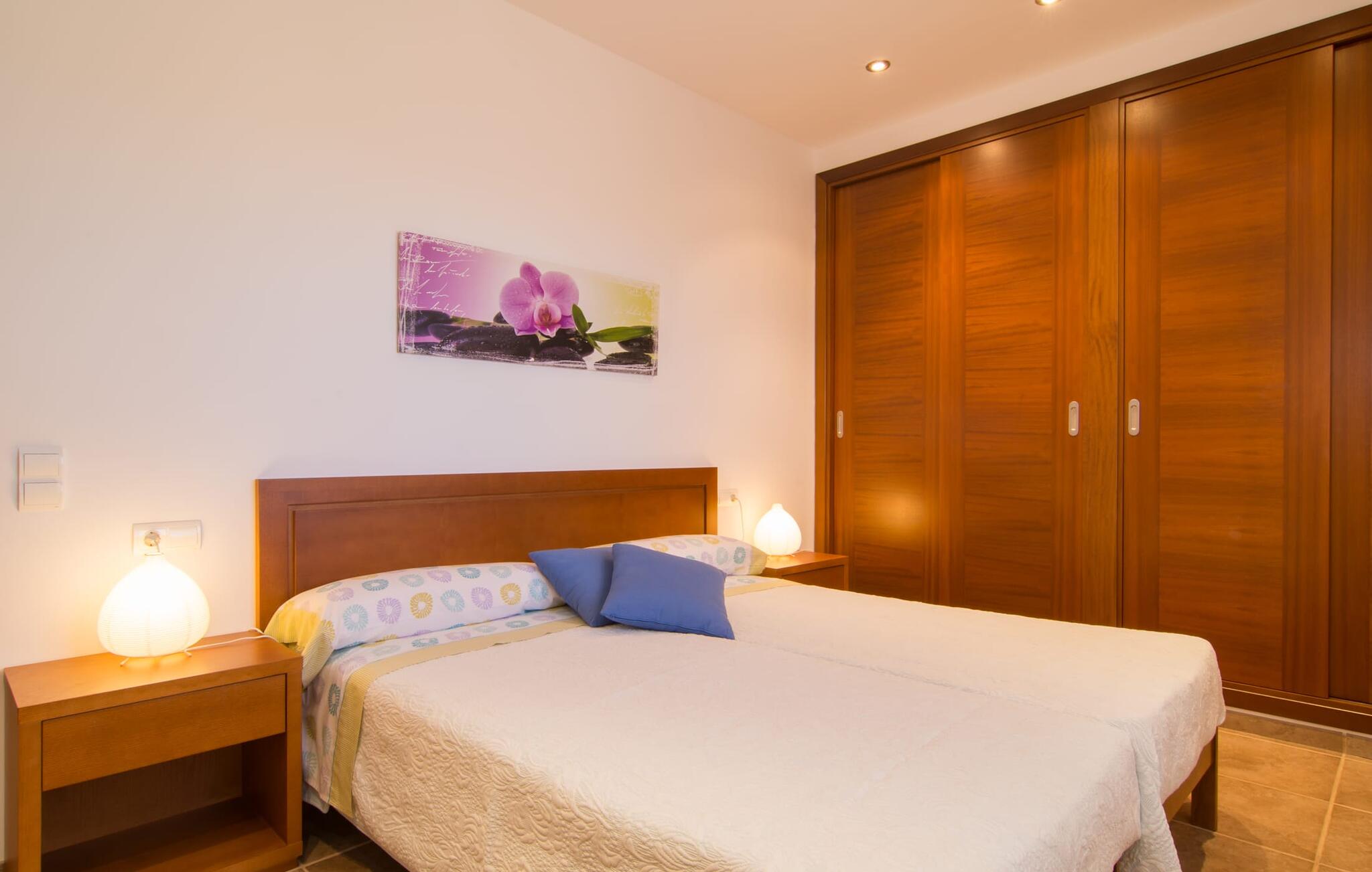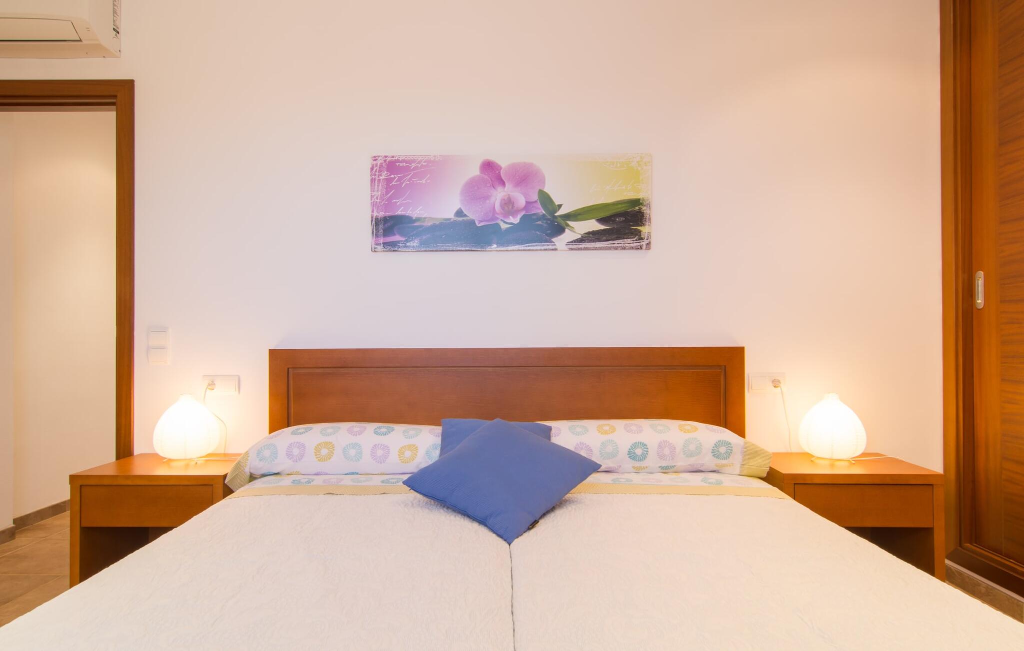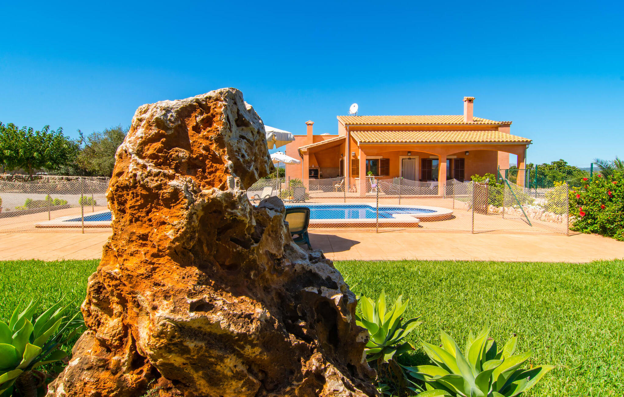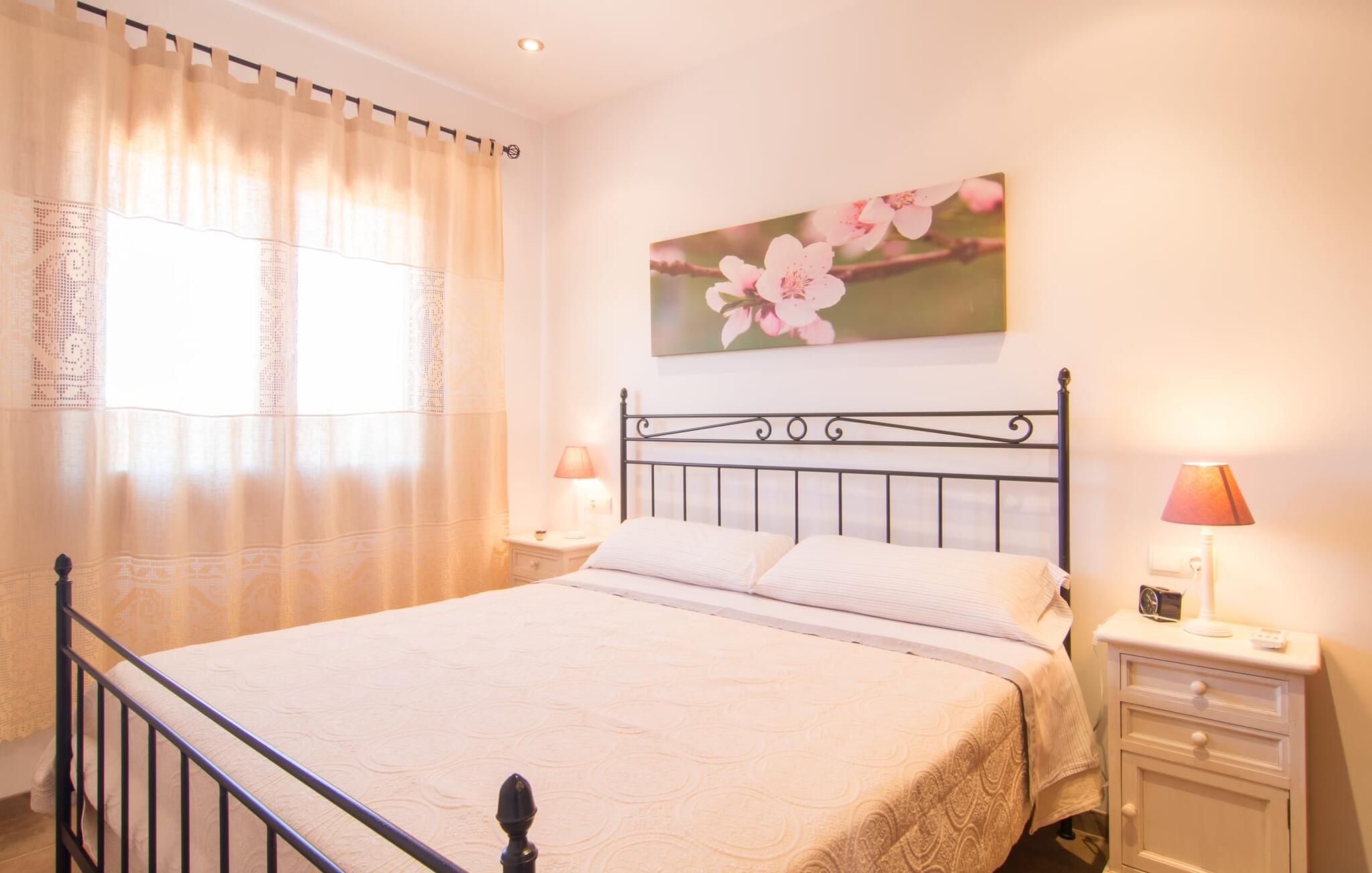 Het is niet alleen het exterieur dat je een compleet zorgeloos gevoel zal geven, ook het interieur van het huis biedt bijna alles wat je hartje begeert. De klassieke Mallorcaanse keuken met aangrenzende woon/eetkamer biedt ruimte voor veel dingen tegelijk. Terwijl de ene persoon in de keuken een heerlijk diner in elkaar flanst, kan de andere ervoor zorgen dat ze een belangrijke wedstrijd of hun favoriete tv-serie niet missen. Dankzij het ontwerp van de villa op de begane grond zijn de drie liefdevol ingerichte tweepersoonskamers niet ver weg, die stuk voor stuk een glimlach op je gezicht toveren. De muskietennetten voor de ramen, de vier draagbare ventilatoren en de airconditioning garanderen rustige nachten. Maar zelfs op koudere dagen voldoet deze gezinsvriendelijke villa aan alle wensen en creëert een heerlijke sfeer dankzij de open haard. Dit is een fantastische plek om te ontspannen en tot rust te komen, perfect voor gezinnen met kinderen.