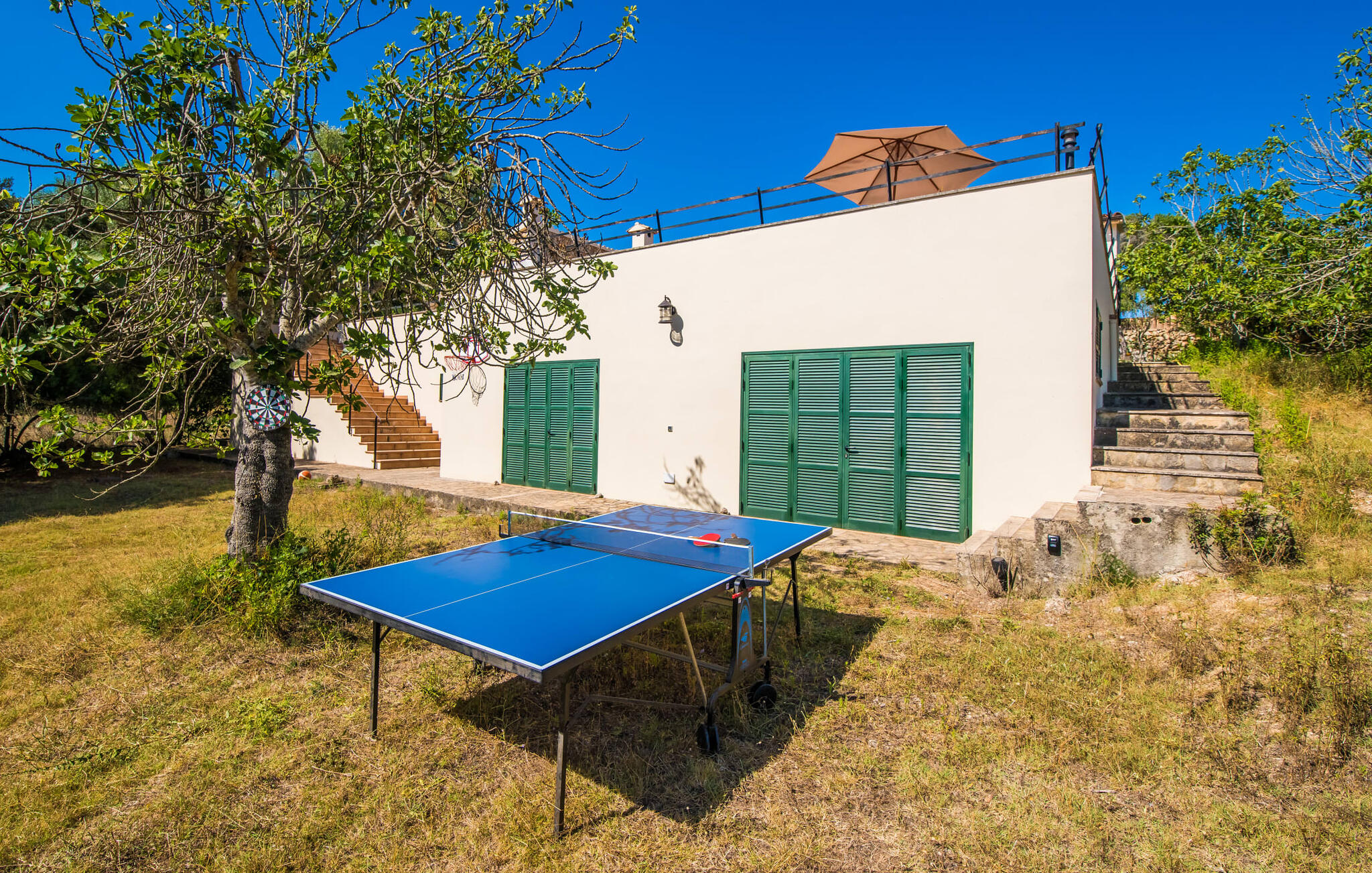 Het ruime terras bij het zwembad is perfect om te genieten van prachtige zonsopgangen en privé zonnebaadmomenten. Gezellige natuurstenen terrassen aan de achterkant nodigen uit om te ontspannen in de schaduw. De accommodatie heeft een grote tuin met voetbalgoals, een basketbalring en een tafeltennistafel.