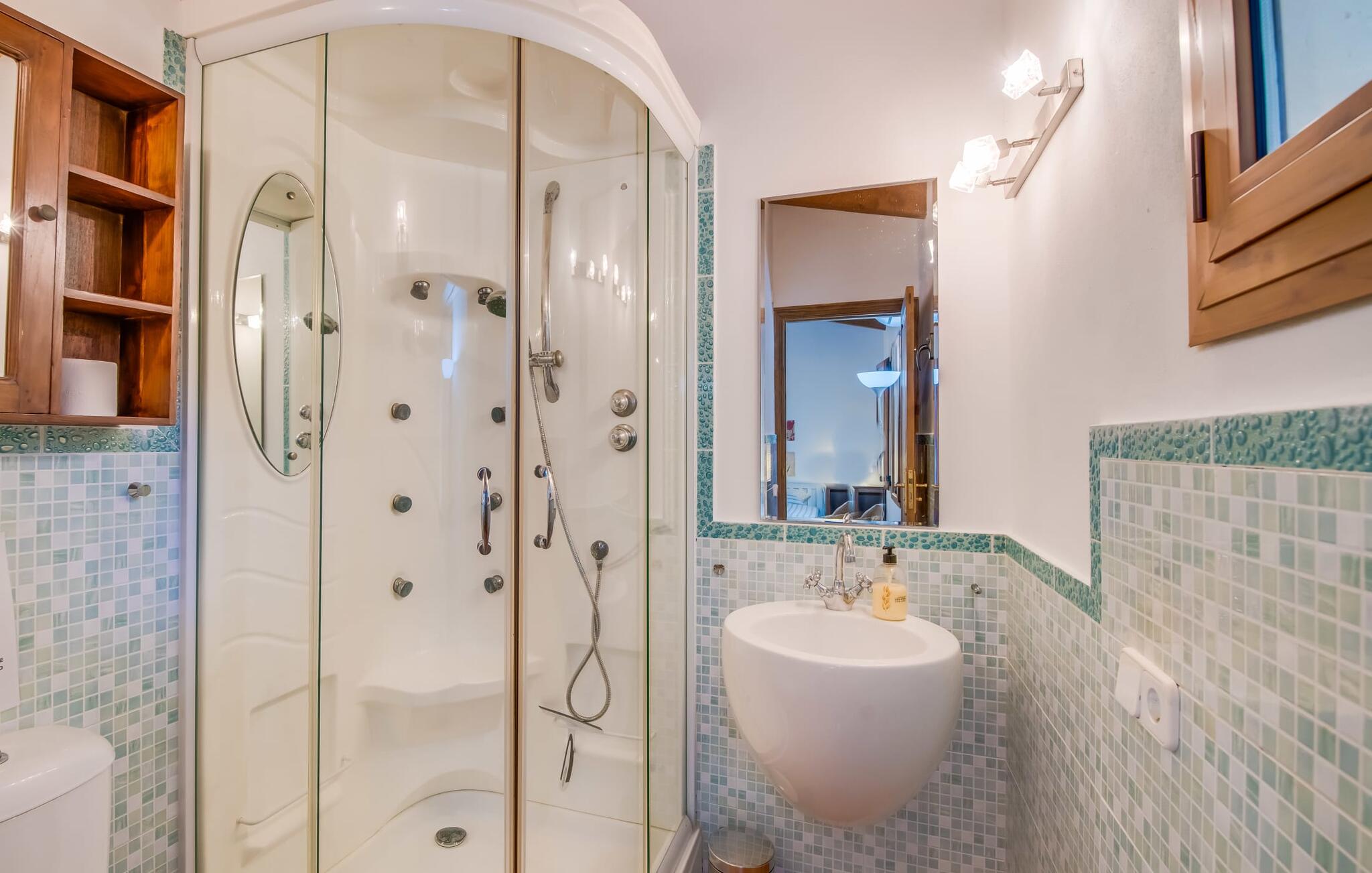 Keuken heeft warm/koud waterEl.fornuis en ovenKoelkastKoffiezetapparaatMagnetronWasmachineVaatwasser1 TVDuitse TVToilet: warm en koud water