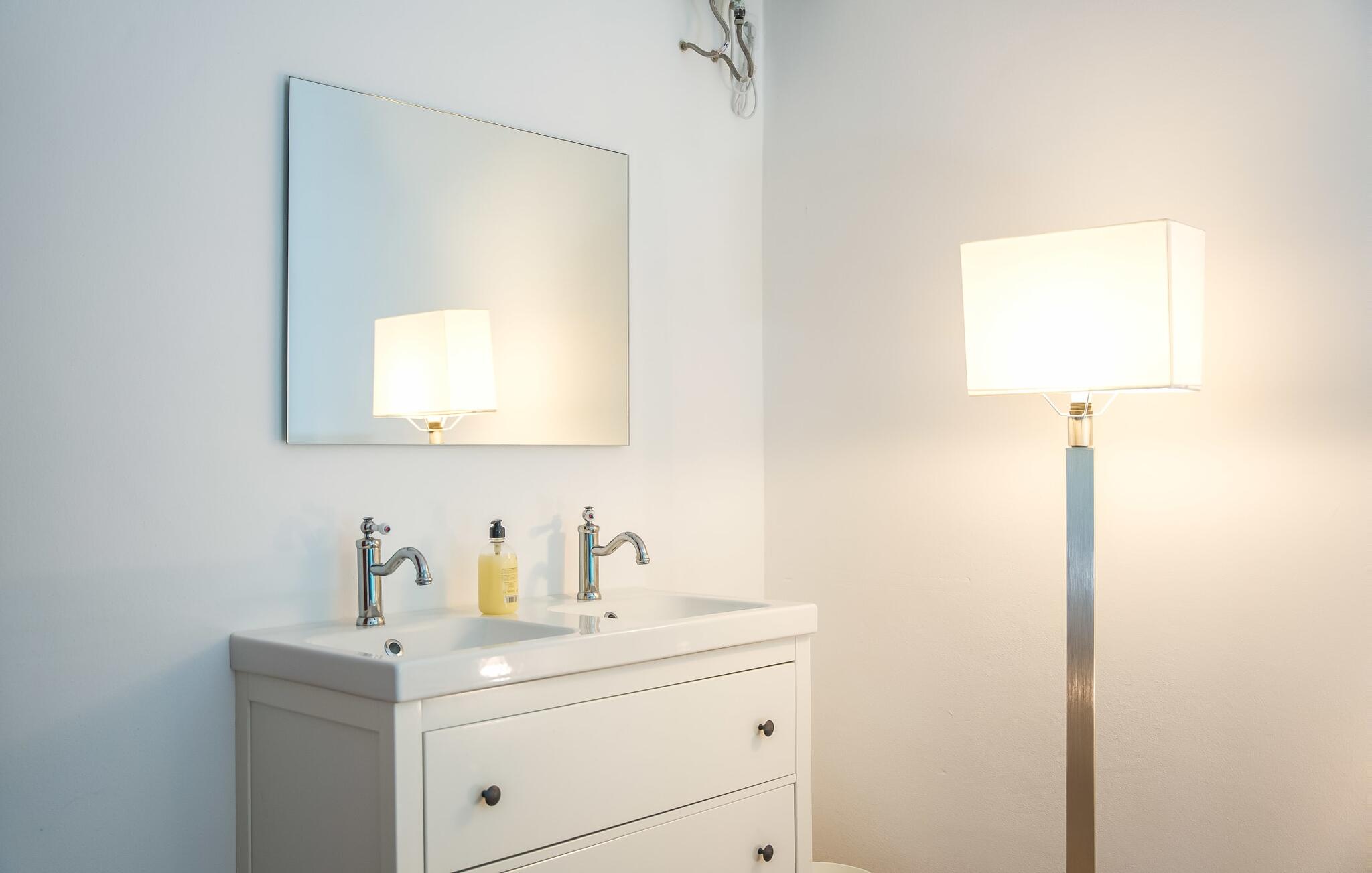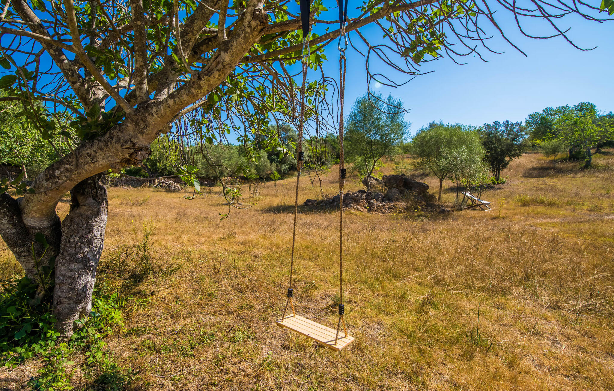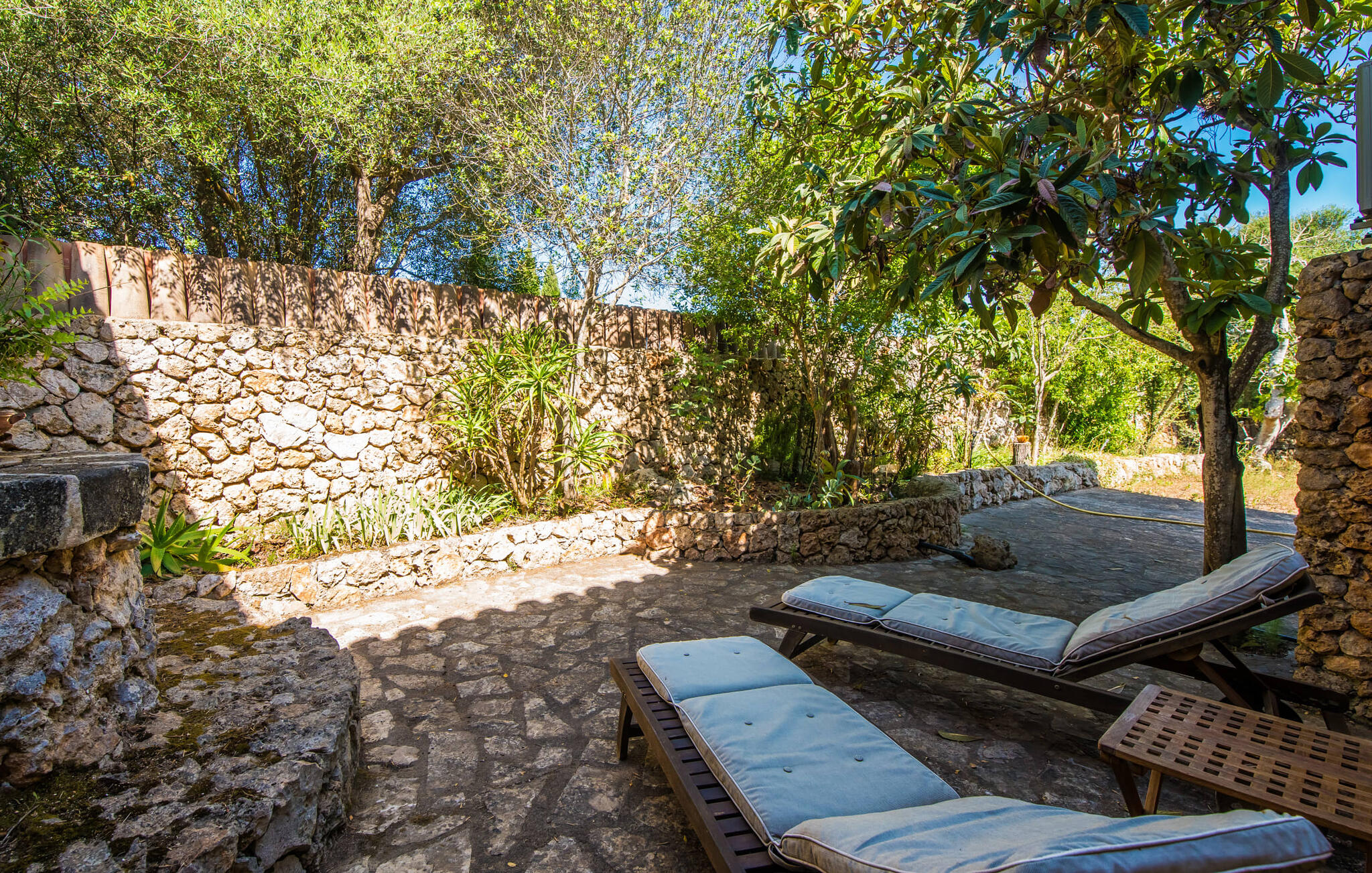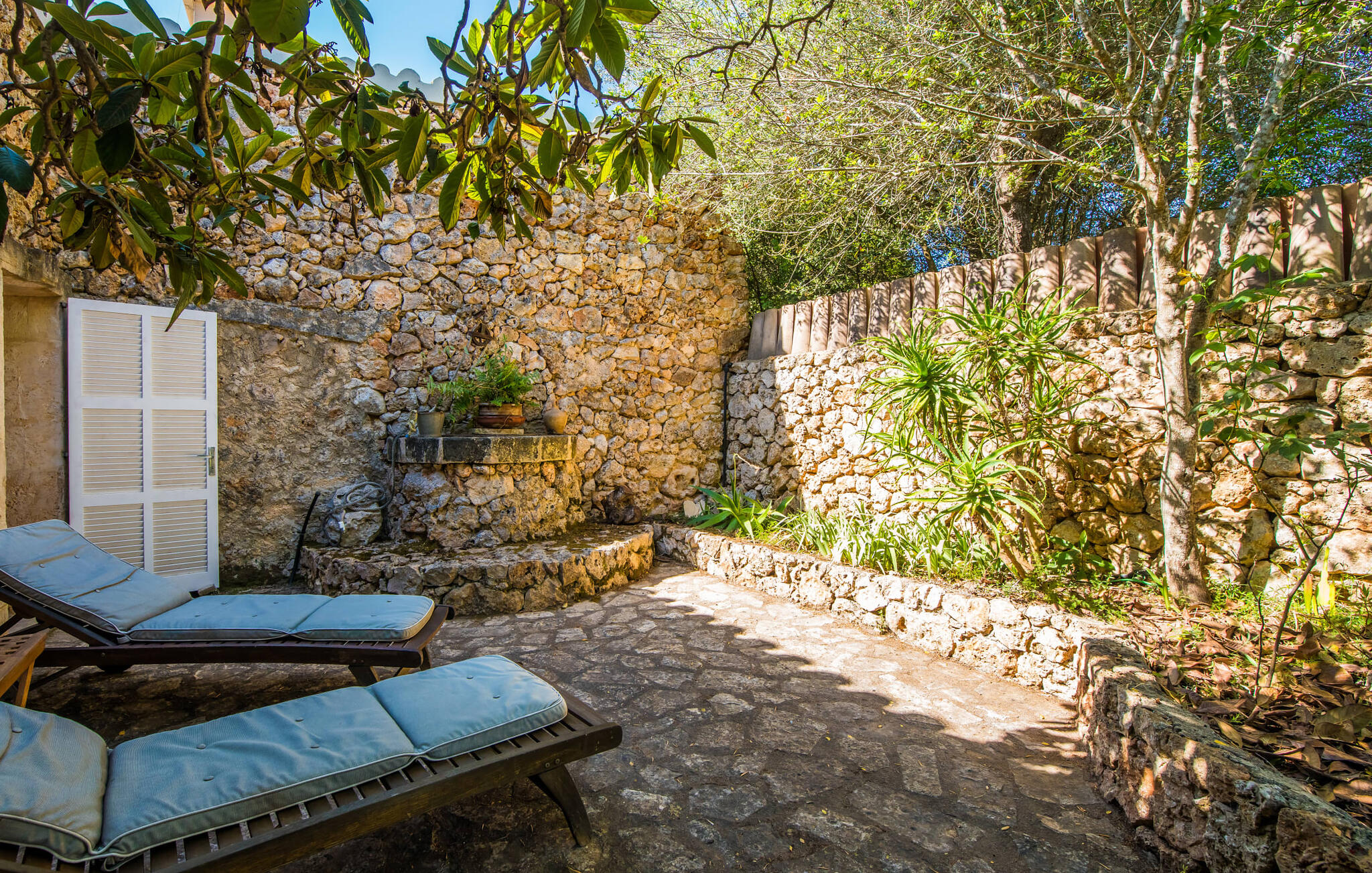 De belangrijkste woonruimte heeft een lichte, open indeling met een gezellige woonkamer met open haard en directe toegang tot het terras bij het zwembad. Een uitnodigende eethoek grenst aan een van de natuurstenen terrassen, terwijl de lichte keuken een eigen eethoek heeft en toegang tot het zwembad. Er zijn drie tweepersoonsslaapkamers op dit niveau, waarvan twee met en-suite badkamer, evenals een aparte badkamer. Een vierde tweepersoonsslaapkamer met wastafel is toegankelijk vanuit de tuin. Het huis is uitgerust met airconditioning en verwarming, waardoor Can Baldo ideaal is voor twee gezinnen of vrienden die samen een ontspannen vakantie willen doorbrengen.