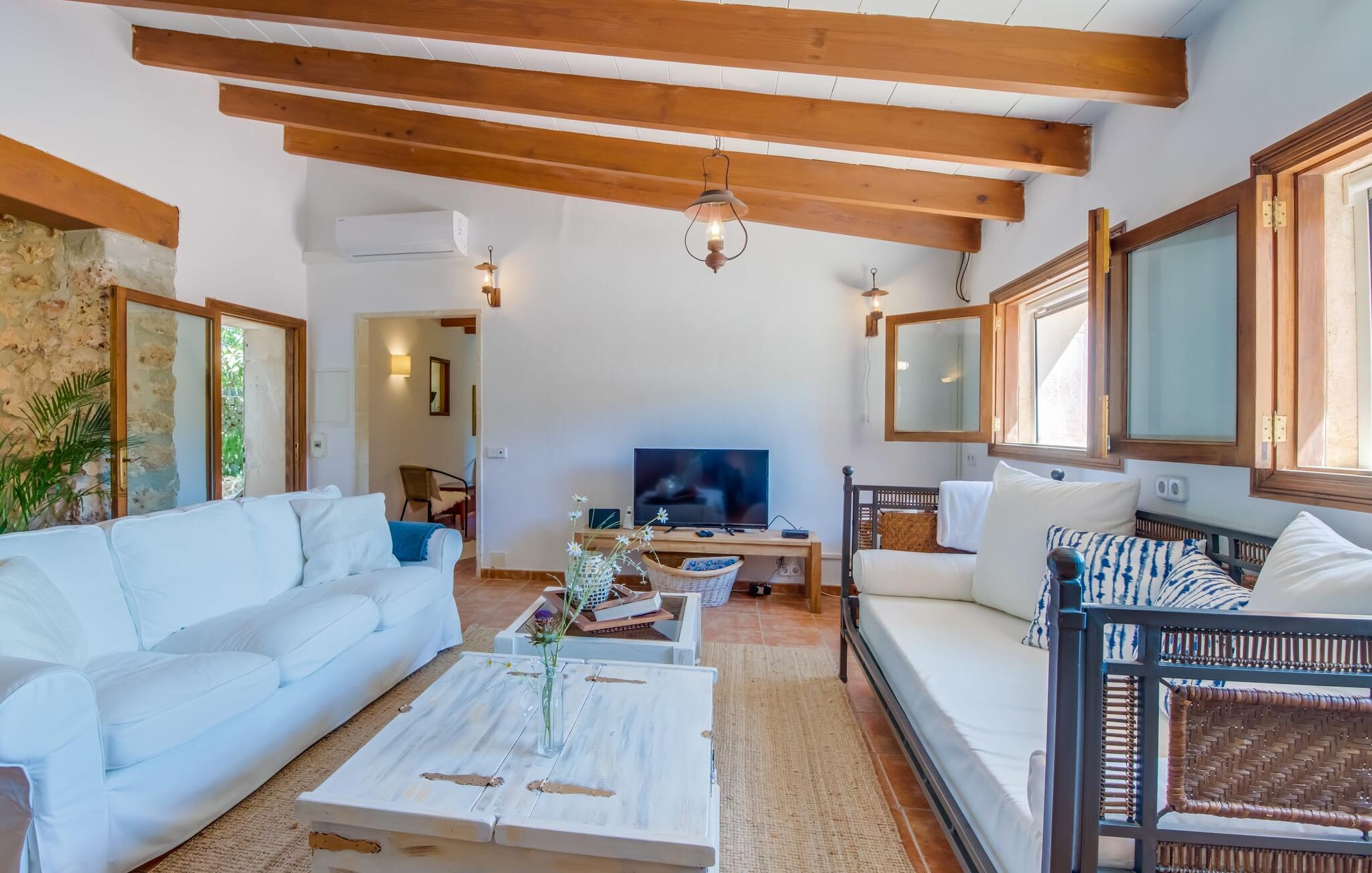 Deze zeer gezellige boerderij ligt op slechts 6 km ten zuidoosten van het rustige dorpje Sencelles. Op een heerlijk rustige locatie is het een ideale uitvalsbasis om de vele facetten van Mallorca te verkennen. Sencelles is ideaal voor de dagelijkse boodschappen en de wekelijkse markt op Placa Nova met zijn verse producten is zeker een bezoek waard. De fijne zandstranden van het zuiden van het eiland, zoals Cala Estancia, Platja de Palma en Cuidad Jardin, liggen op ongeveer 30 minuten rijden met de auto.