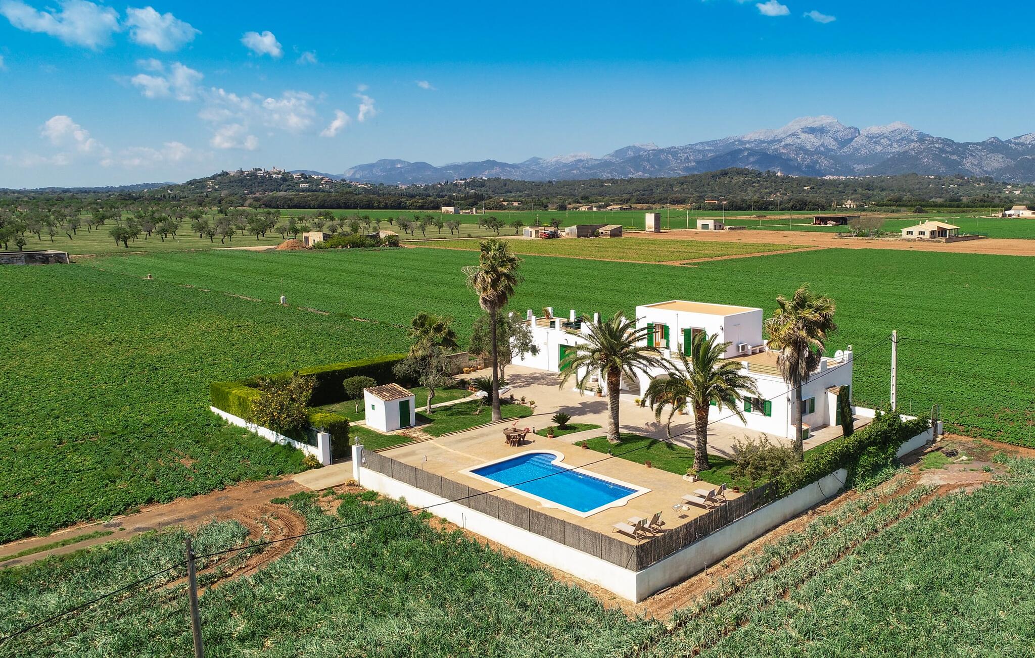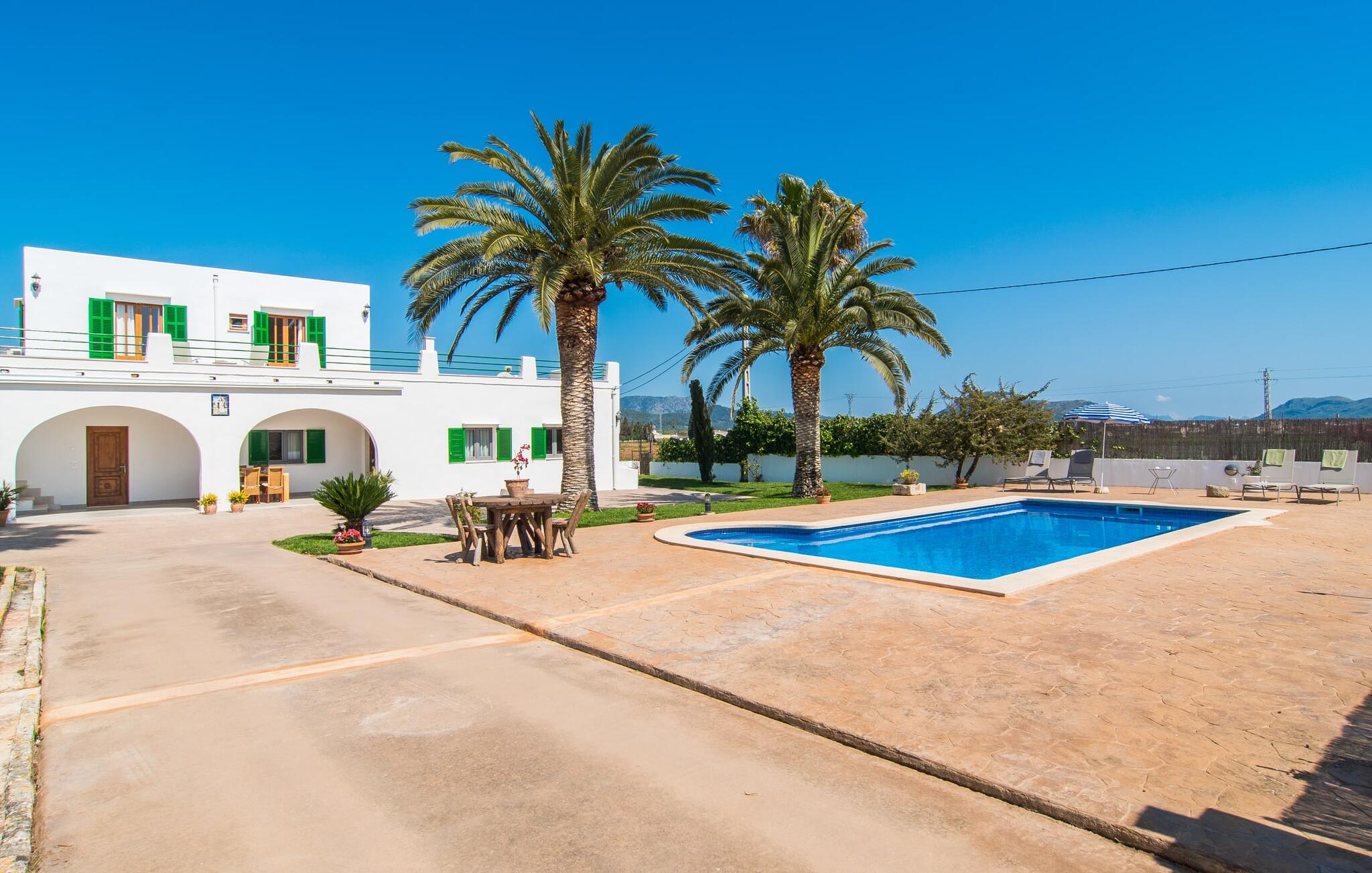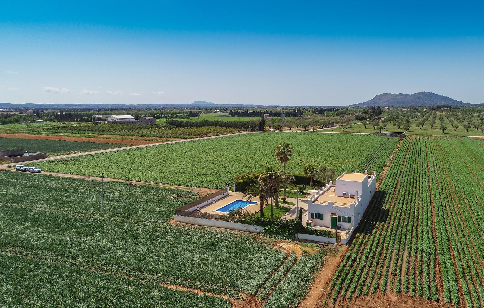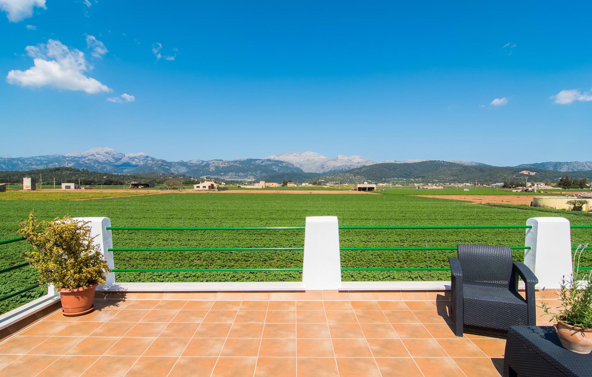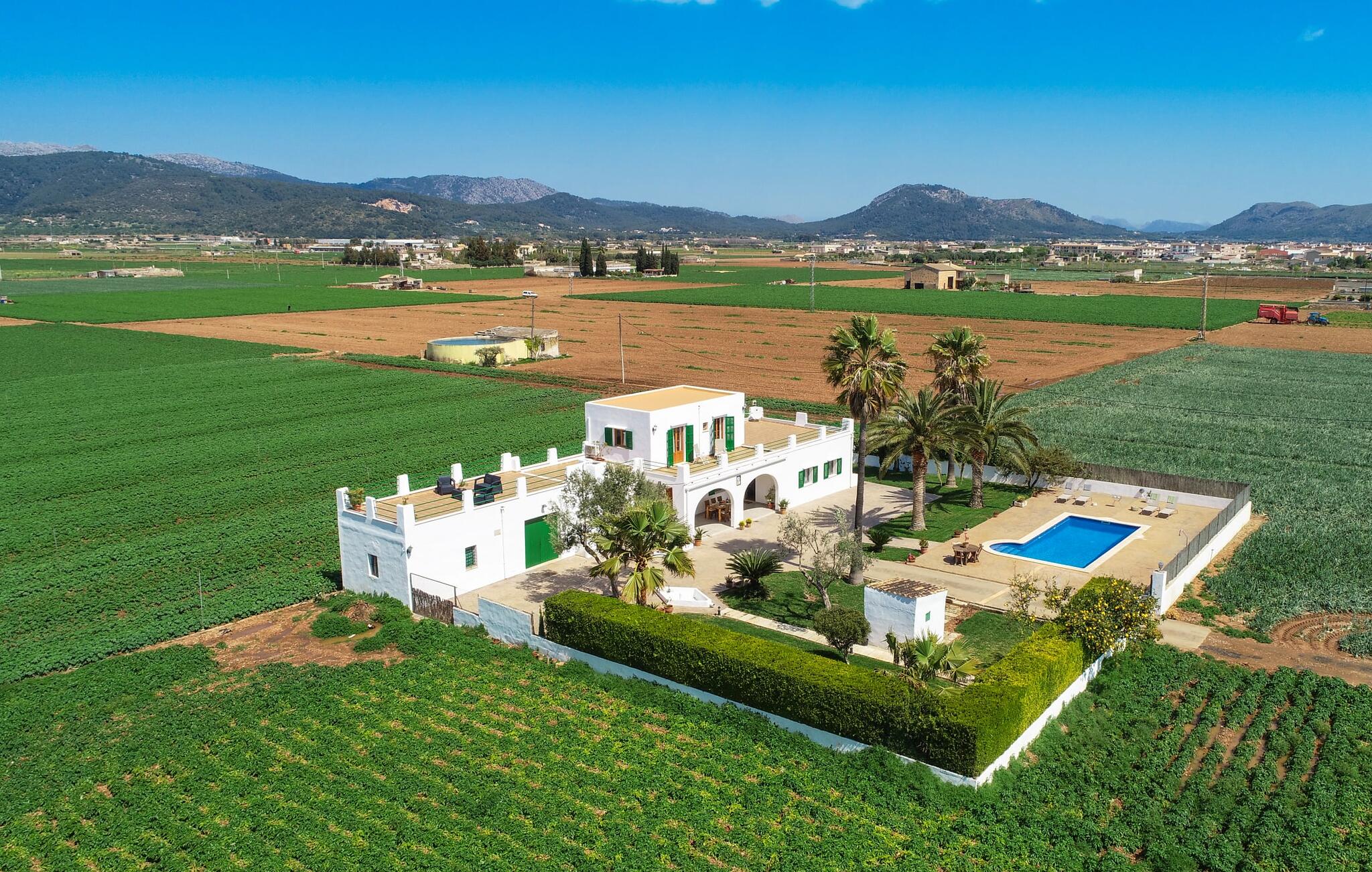 Dit comfortabele landhuis ligt op ongeveer 1,5 km van de agrarische stad Sa Pobla, vaak de groentemand van Mallorca genoemd vanwege een eeuwenoude traditie van intensieve teelt van het land, die vandaag de dag rijke oogsten oplevert. Bovendien betoveren de omliggende gebieden op loopafstand je met hun typische Mallorcaanse charme en nodigen je uit om ontspannende uren door te brengen. Dankzij de nabijheid van de hoofdweg die de steden Sa Pobla en Búger met elkaar verbindt, kun je overal snel en gemakkelijk komen. Afhankelijk van de windrichting kan er soms verkeerslawaai zijn. Een bezoek aan de heuvel van het pittoreske stadje Búger is echter een absolute must. Vanaf hier kun je niet alleen genieten van de indrukwekkende uitstraling, maar ook van een prachtig uitzicht op het vredige dorp, de baai van Alcúdia, de bergen van Llevant in het noordoosten en tot ver in de gemeente Artà, het Tramuntana-gebergte in het westen en het natuurreservaat S` Albuferia, dat natuurliefhebbers geweldige wandelpaden biedt. Voor de afwisseling kun je een heerlijke dag aan het strand doorbrengen, het dichtstbij is de baai van Alcúdia. De stralend witte Villa Can Goet ligt in een landelijke omgeving tussen het bergdorp Búger en de iets grotere stad Sa Pobla. Beide steden zijn ideaal voor de dagelijkse boodschappen en kunnen met de auto worden bereikt. Op zondag is er een wekelijkse markt op het levendige dorpsplein in Sa Pobla, waar de lokale bevolking samenkomt om te kletsen en te winkelen. De baai van Alcúdia heeft een indrukwekkend 16 km lang strand en is met de auto in 20 minuten te bereiken.